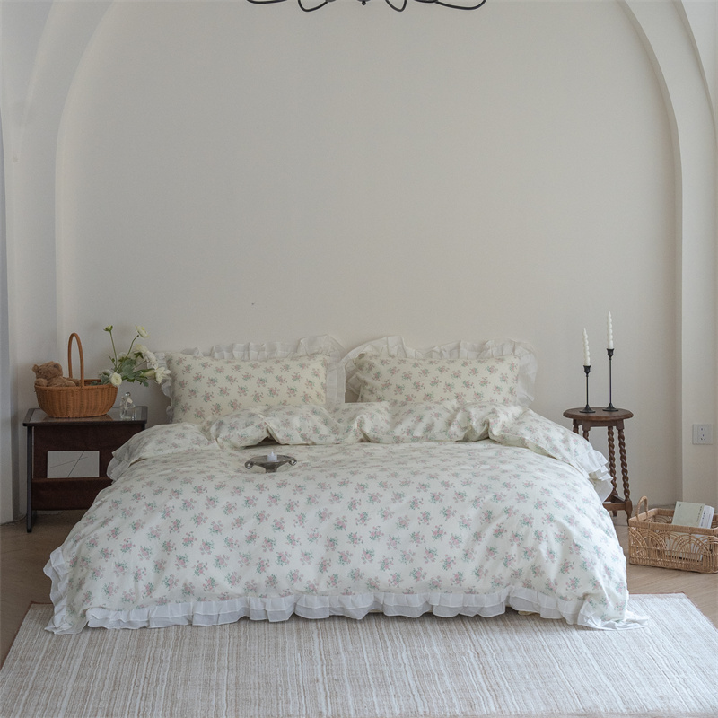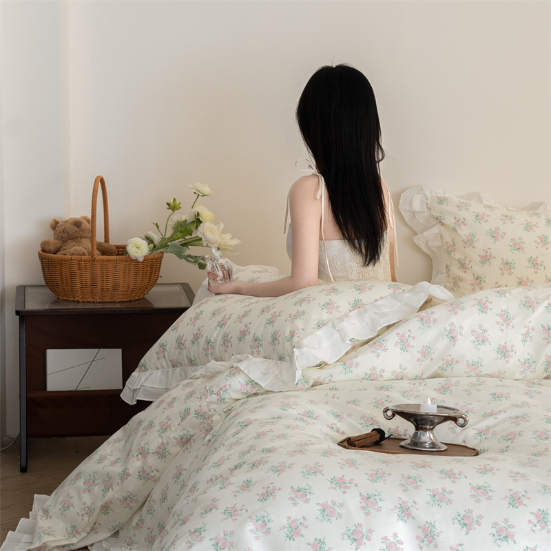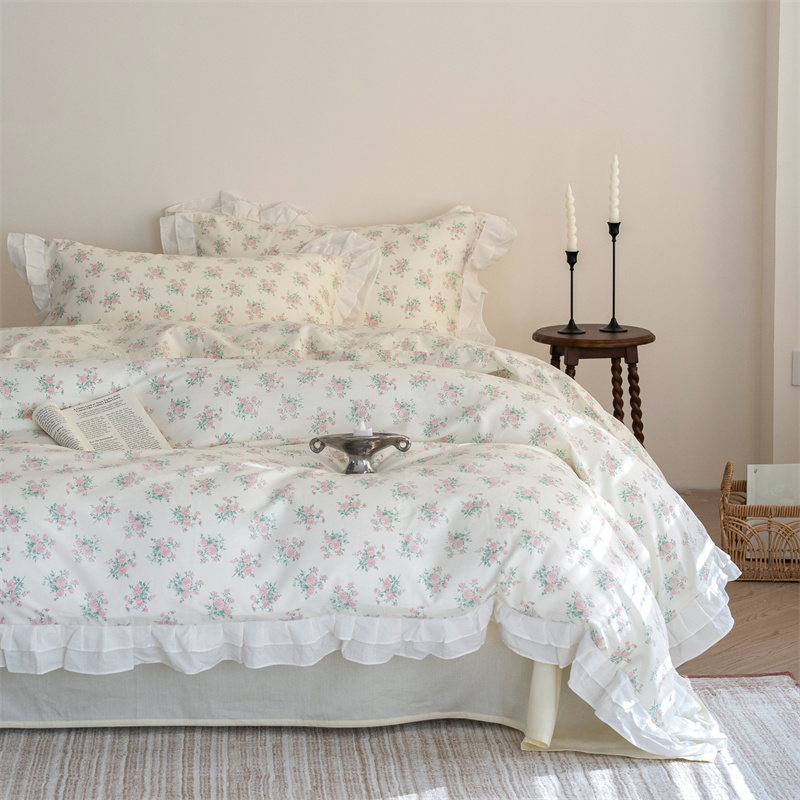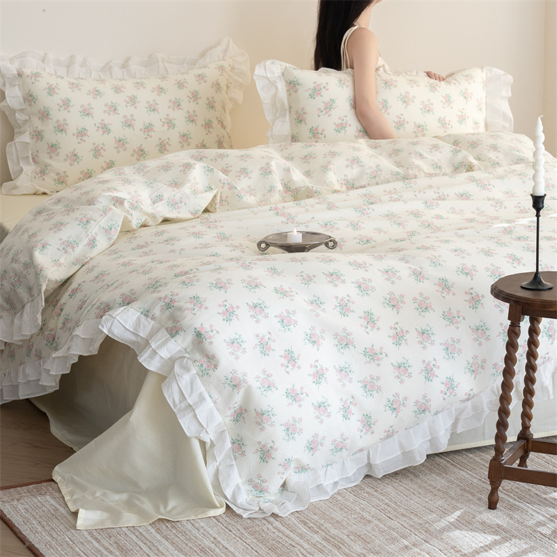 当前位置: 91家纺网 > 商品网购 > 床品套件 > 四件套 > 全棉普通四件套 > 尺素 2025年小碎花纯棉花边四件套全棉田园风荷叶边被套纯棉床单棉法式套件1.8纯色床笠套件 山茶芝士奶黄(花边款)