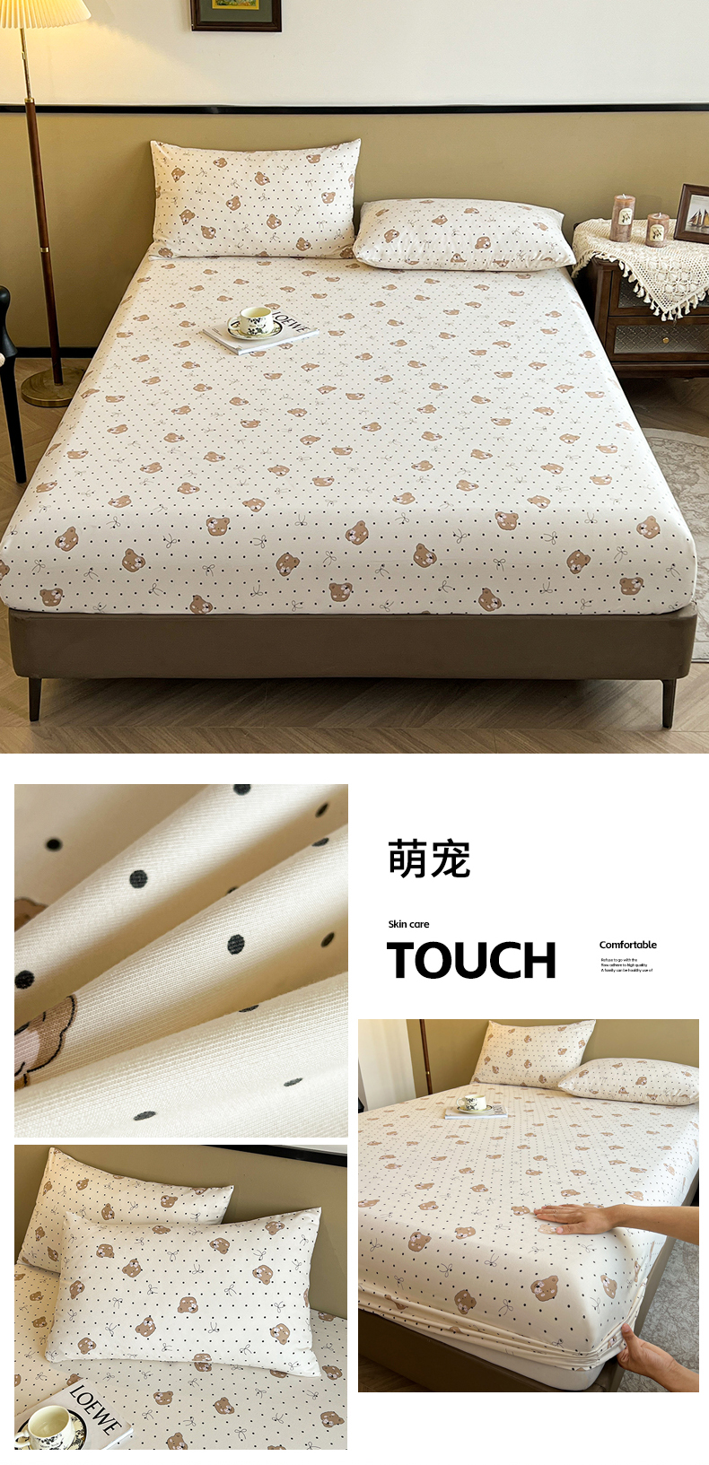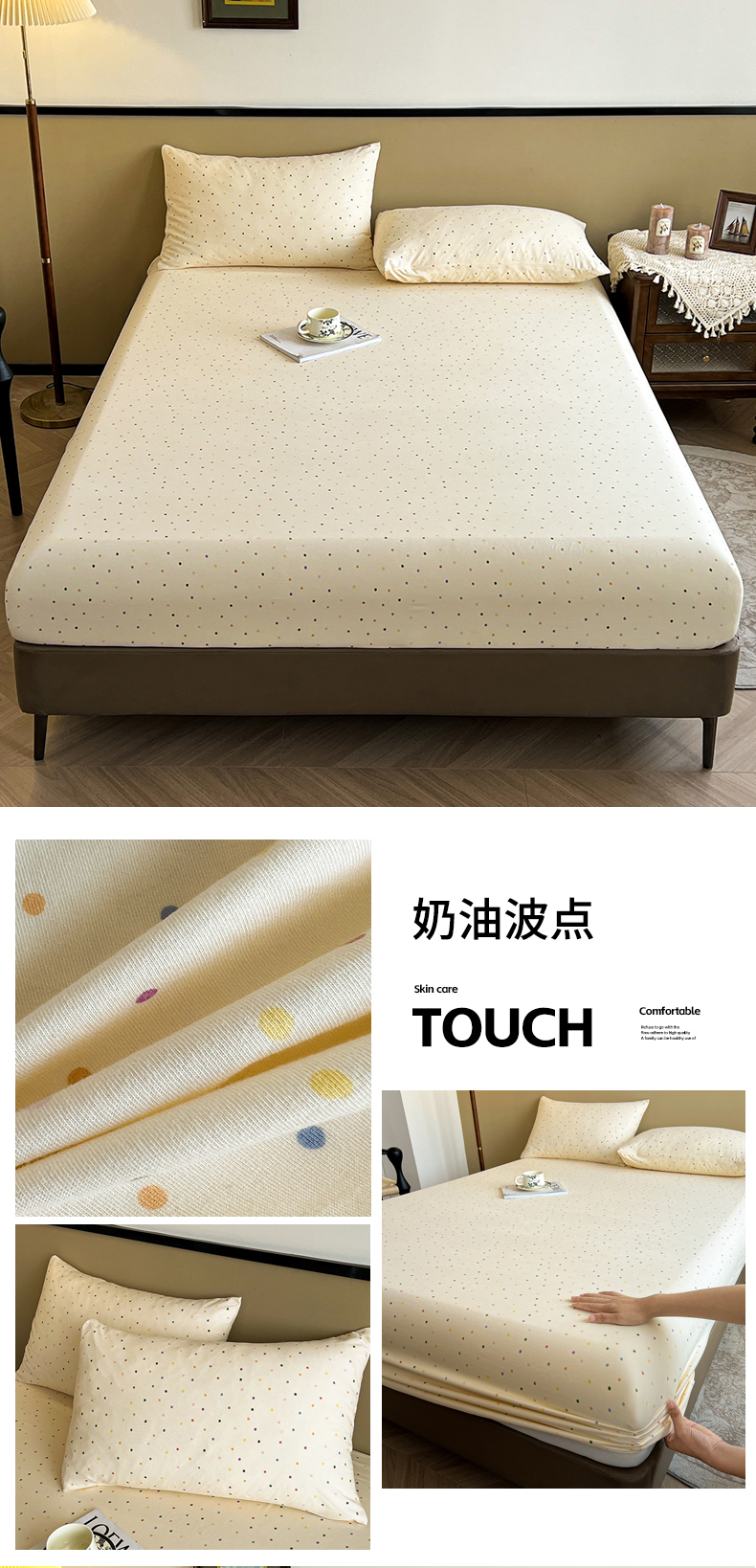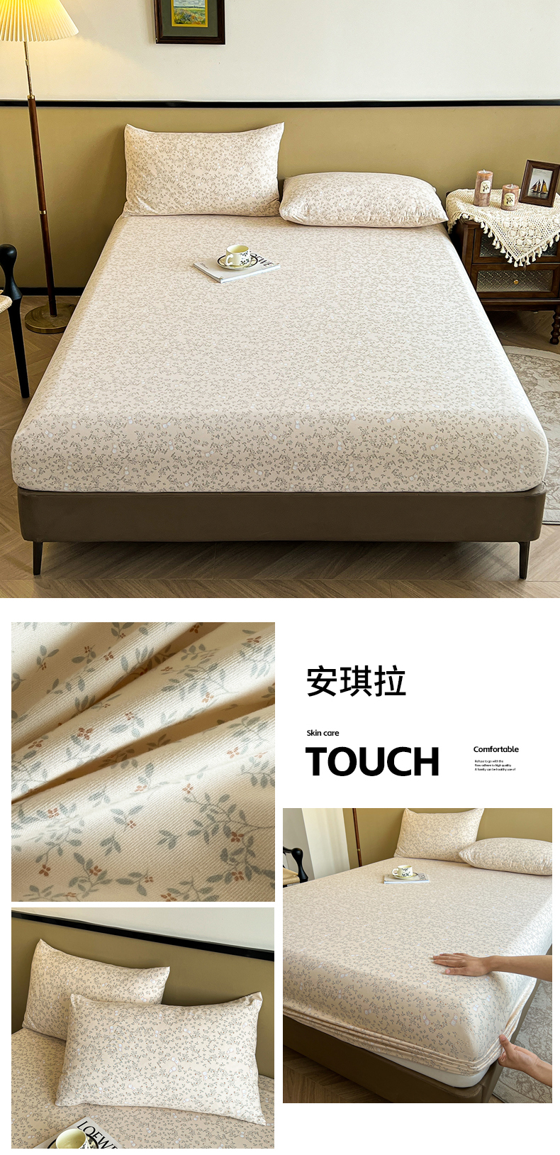 笠客家纺 2024新款高颜值A类原棉大豆抗菌夹棉防水床笠床垫保护罩 (买家秀联系我) 爱格-米白,爱格-米白