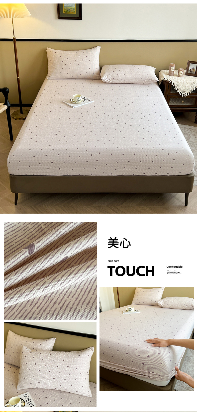 (总)笠客家纺 2024新款床笠A类原棉床罩夹棉抗菌床床罩床垫保护套- 需要买家秀联系我,宝石蓝爱心款,豆沙爱心款,米白爱心款,浅粉爱心款,浅灰爱心款