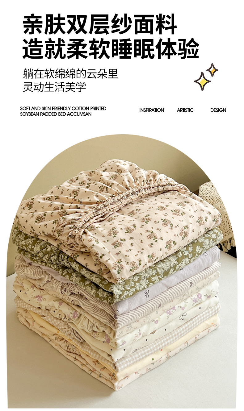 商品名称:(总)笠客家纺 2025加厚A类针织棉双层纱床笠小碎花床罩