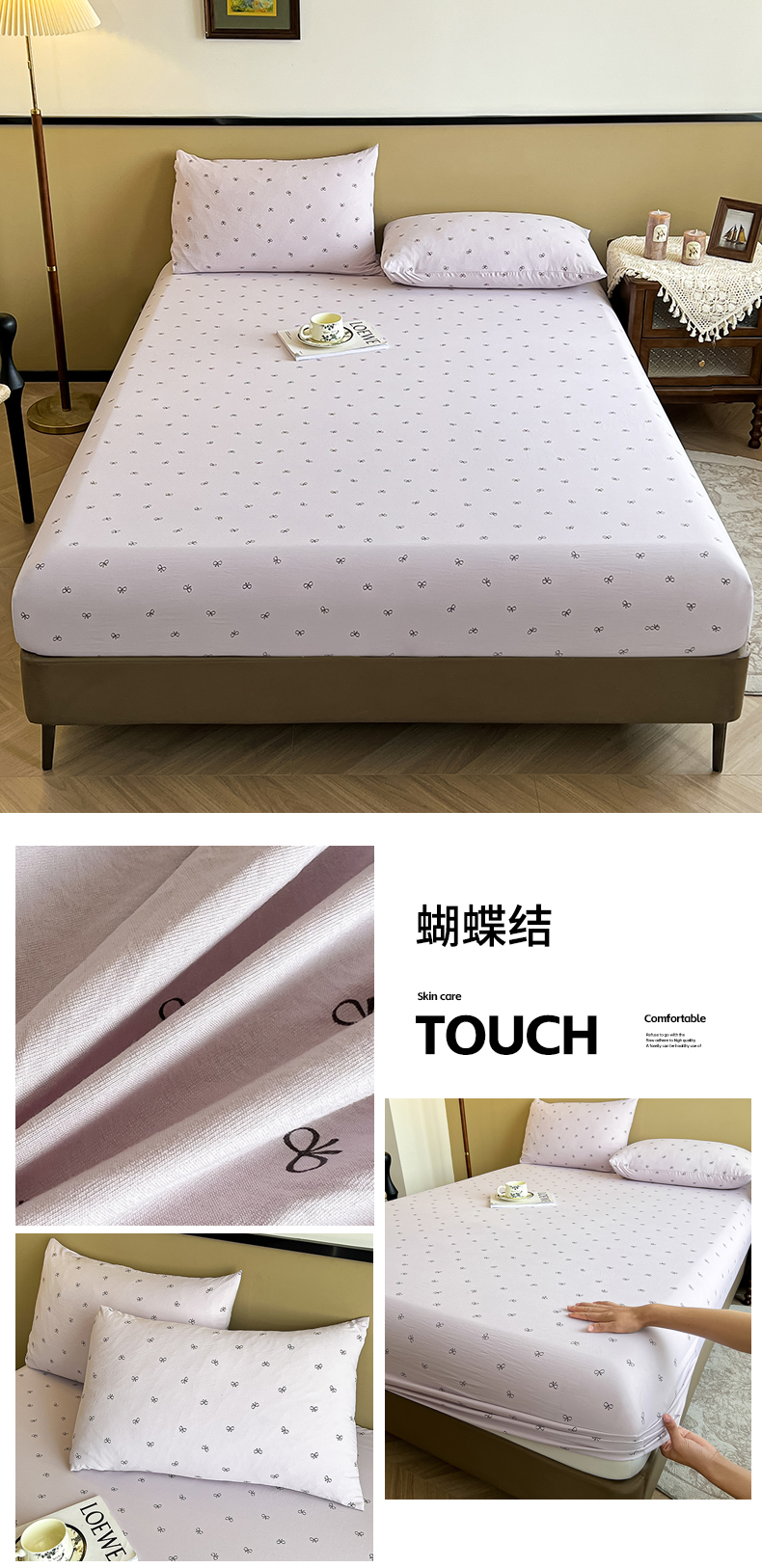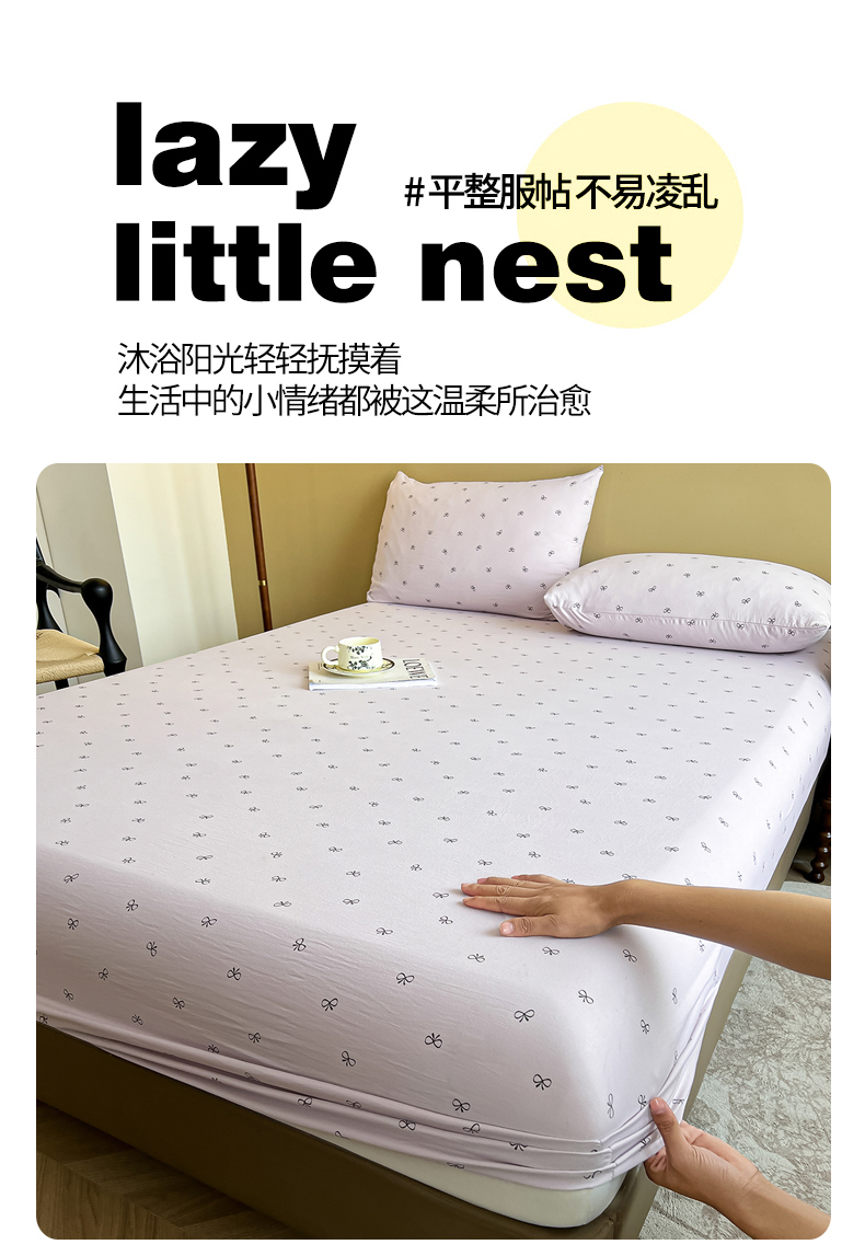 (总)笠客家纺 2024新款A类母婴级夹棉床笠单件席梦思床垫保护套防滑固定蝴蝶结床罩(买家秀联系我),花圆米白,花圆豆沙,花圆玫瑰粉,花圆玫瑰紫,花圆浅灰,花圆浅咖,花圆天蓝