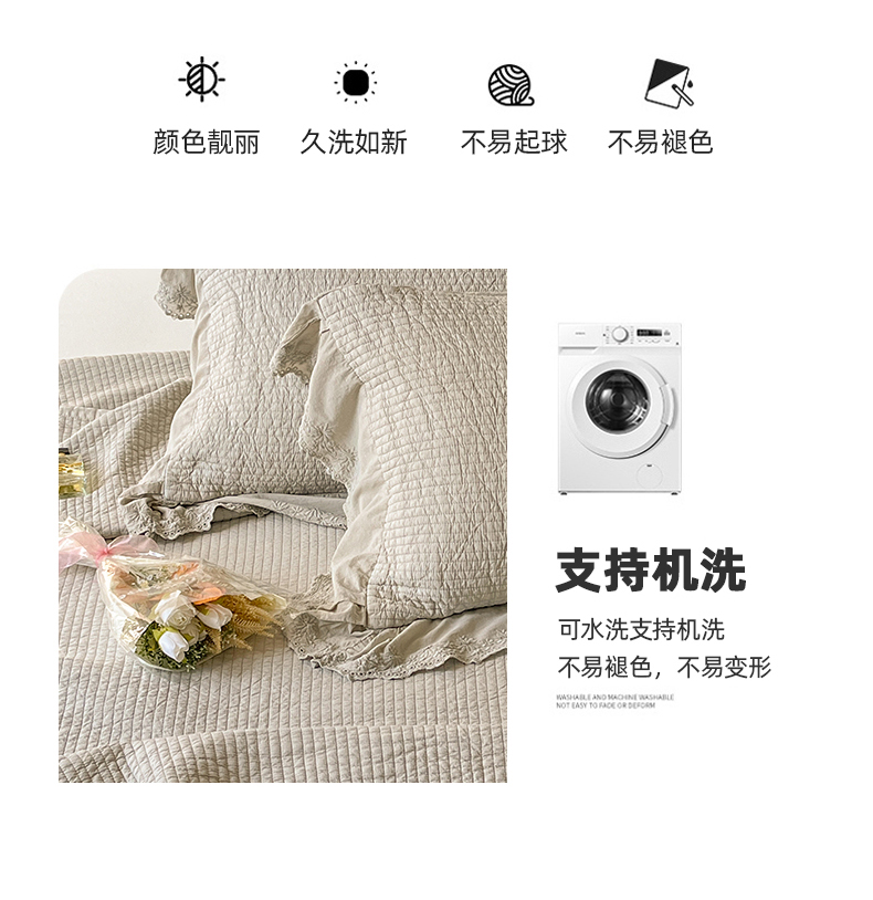 (总)上喜 2025新款全棉砂洗床盖新升级第五代,白色,湖蓝,奶油米,深灰,深咖