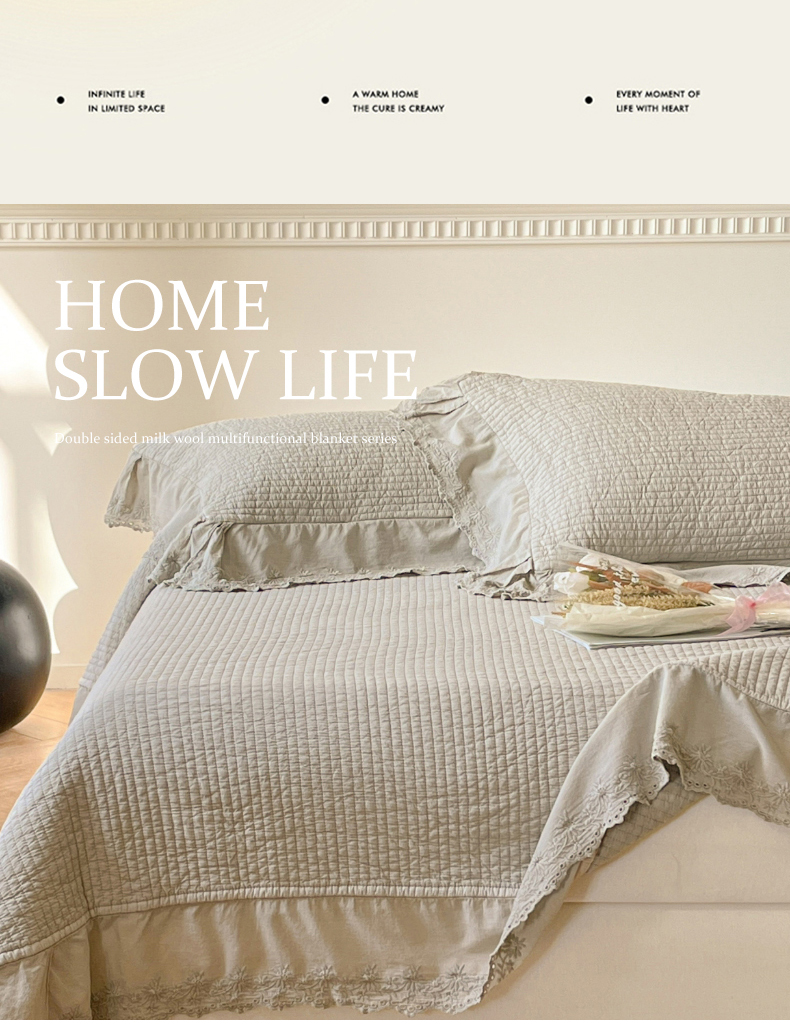 (总)上喜 2026新款棉麻小花刺绣款床盖多功能被子系列,麻本色,麻粉色