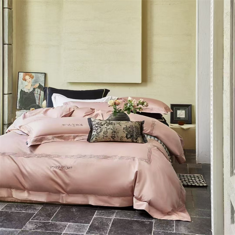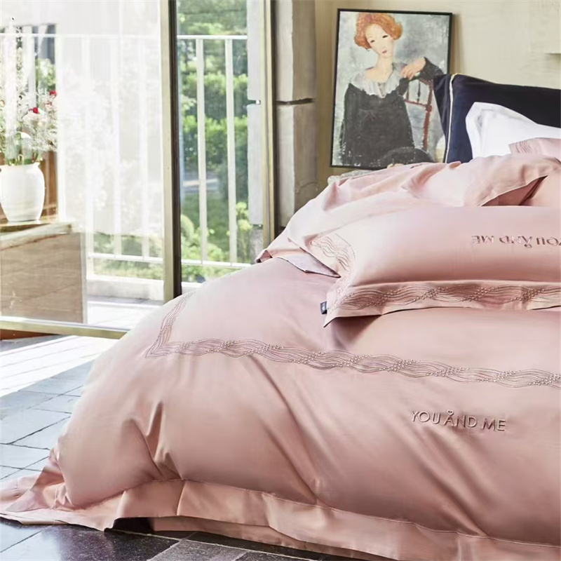 (总)玖玖爱家纺 2023新款120支贡缎长绒棉刺绣梦柔系列四件套,梦柔-香槟金,梦柔-香橙桔,梦柔-高级灰,梦柔-水蓝,梦柔-芙蓉玉