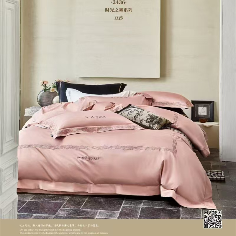 (总)玖玖爱家纺 2023新款100支贡缎长绒棉四件套,粉色,灰,金色,橘色,绿色,水蓝