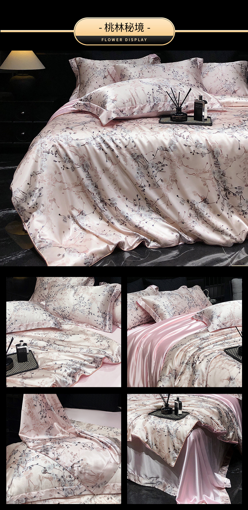 黄鹂鸟 2025新款高端轻奢丝滑裸睡丝绸数码印花水洗真丝天丝四件套系列 -风格三 桃林秘境