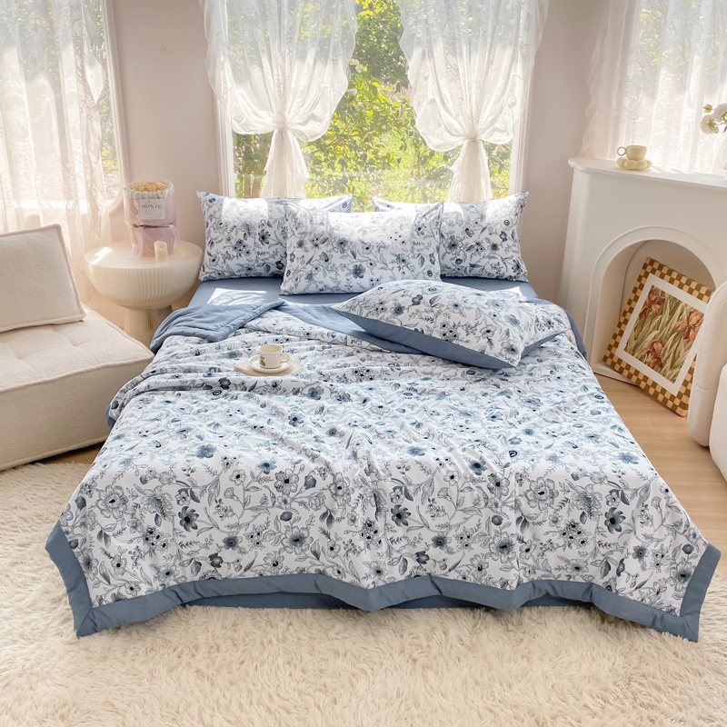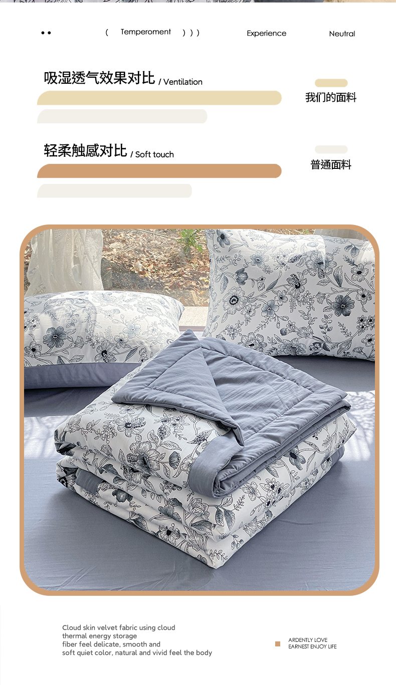 • 91家纺网 家纺一手货源 找家纺 悦织湾家纺 2025新款夏被四件套糯糯棉法式轻奢夏被夏凉被空调被床上用品四件套 糯糯棉法式夏被-水墨花园