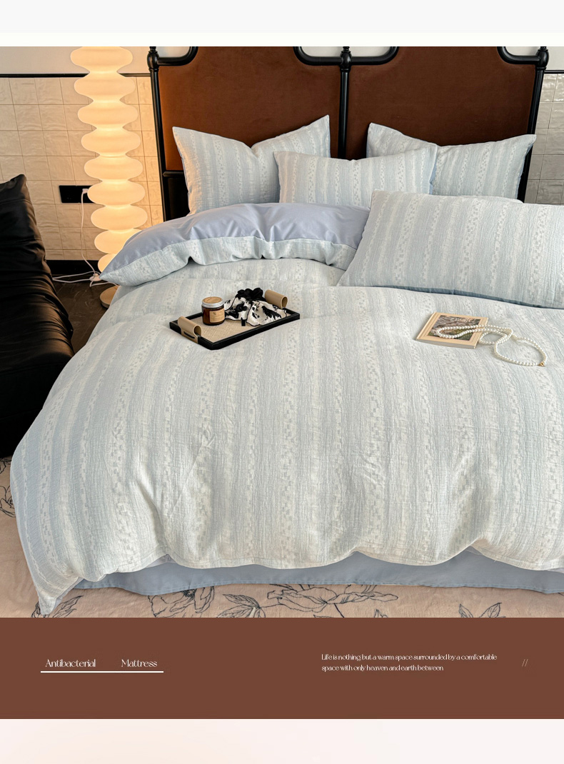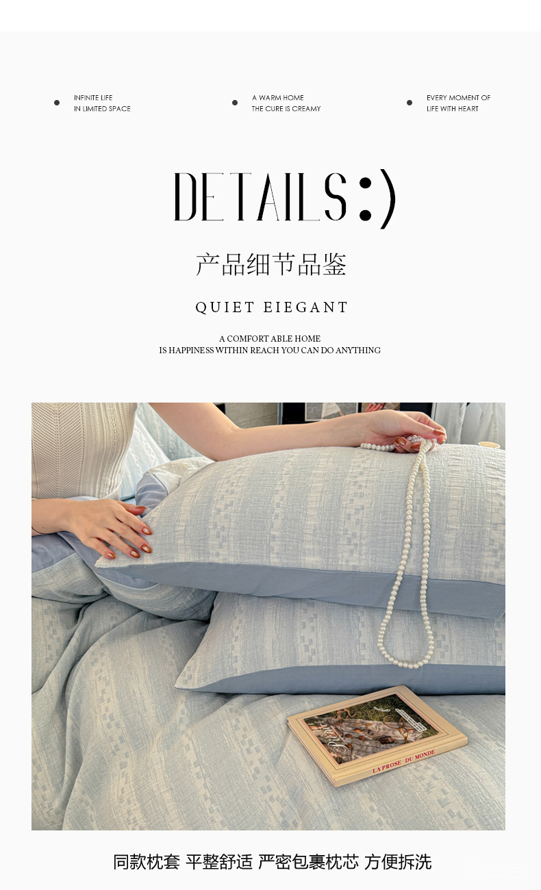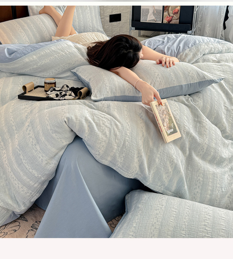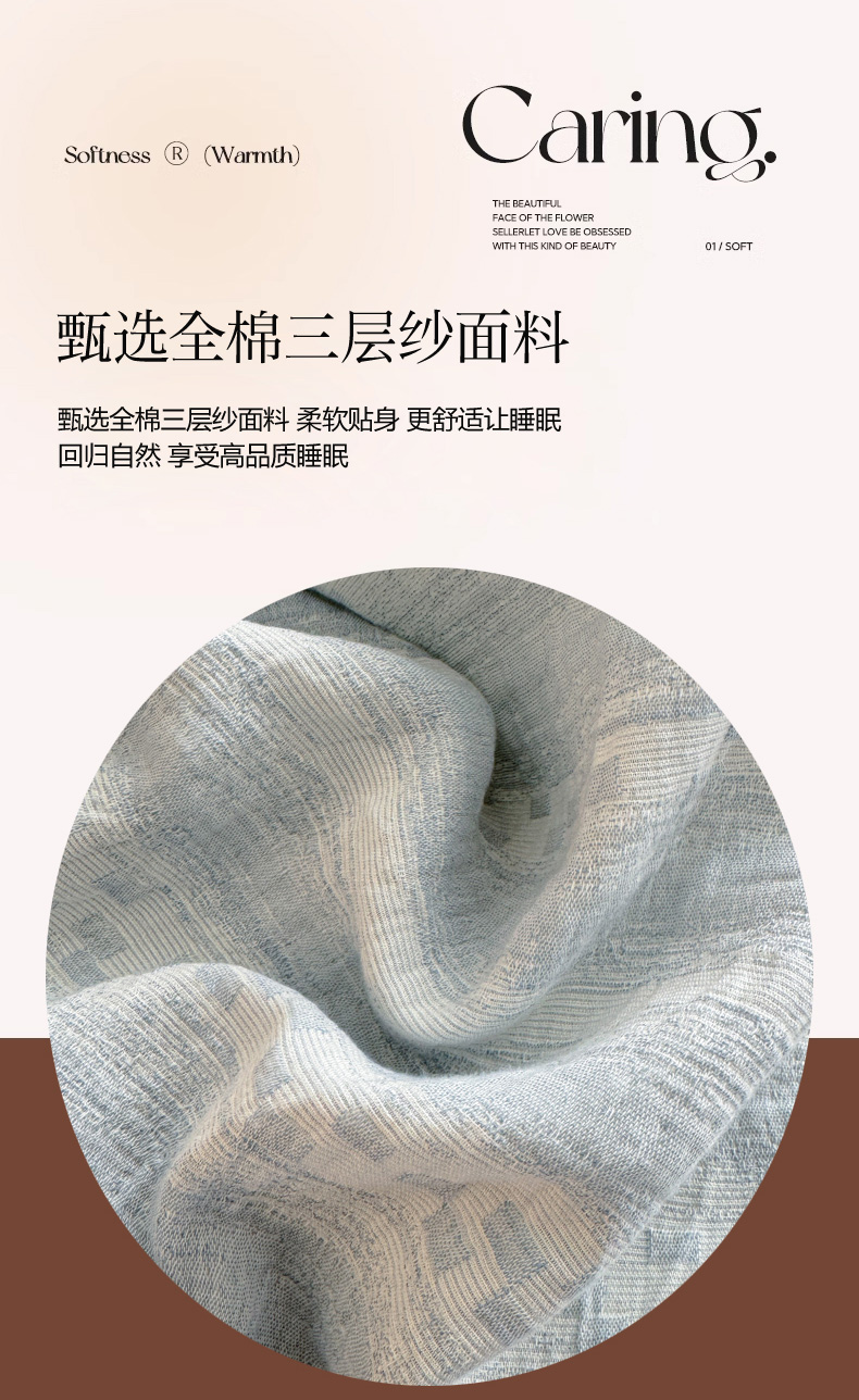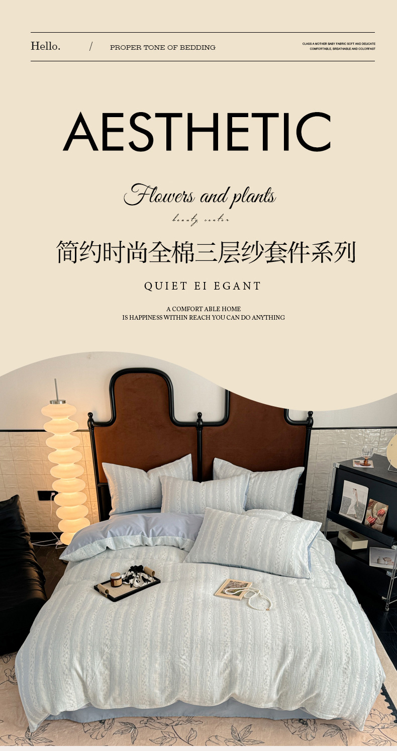 当前位置: 91家纺网 > 商品网购 > 床品套件 > 四件套 > 全棉普通四件套 > 眠博士 2025新款AB版简约时尚A类全棉三层纱系列四件套 三层纱-时光-蓝