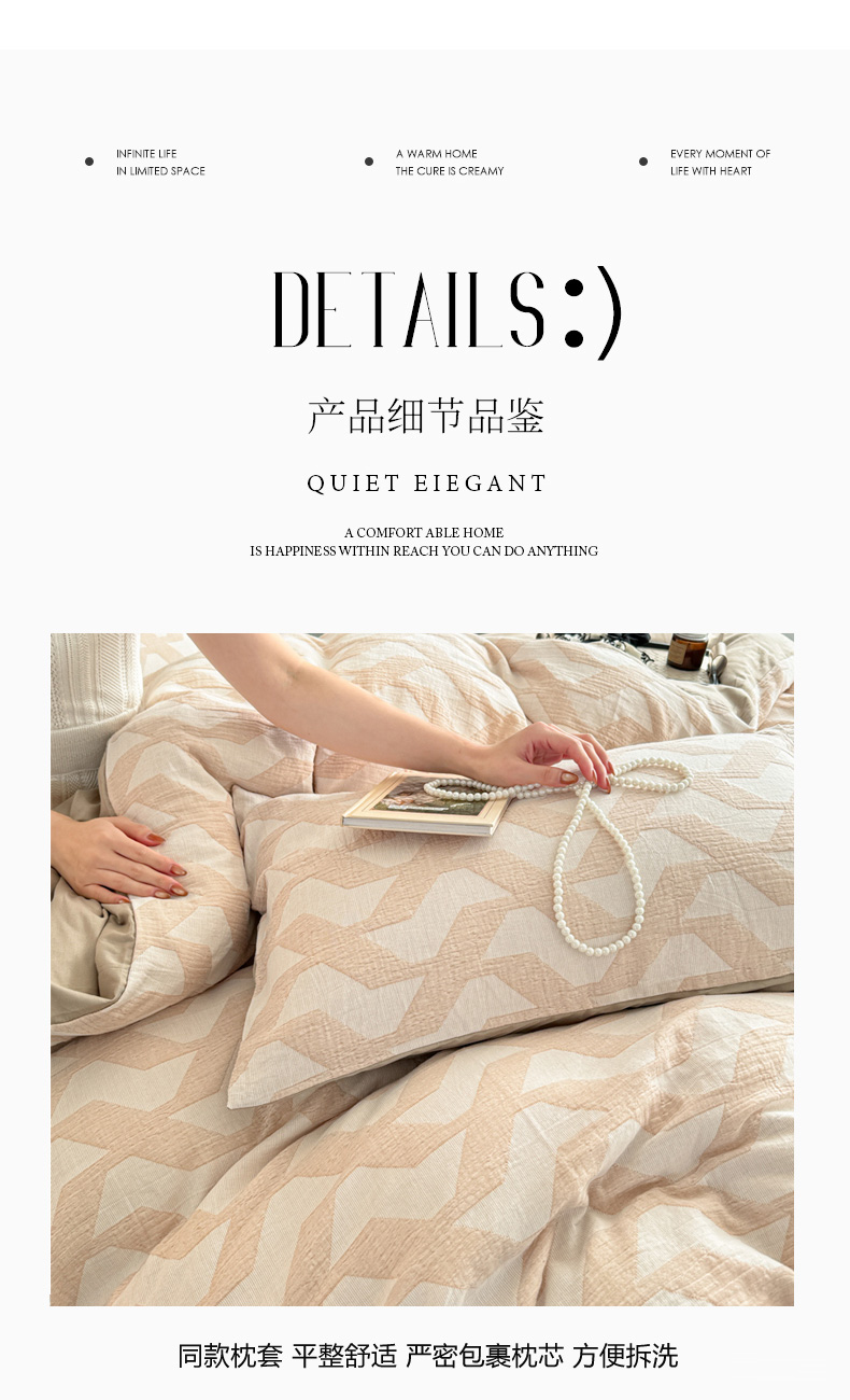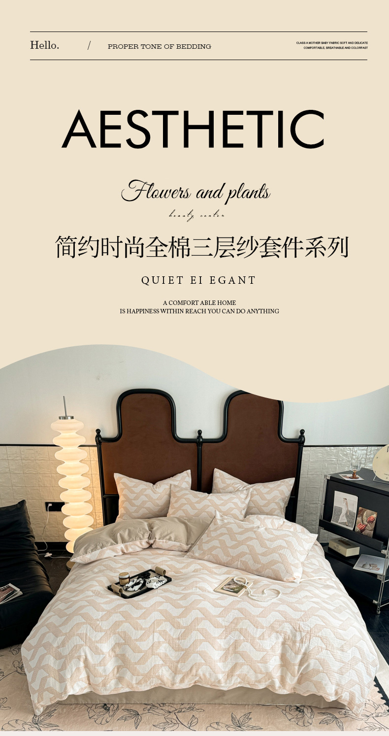 • 91家纺网 家纺一手货源 找家纺 眠博士2025新款AB版简约时尚A类全棉三层纱系列单被套 三层纱-慕斯-杏