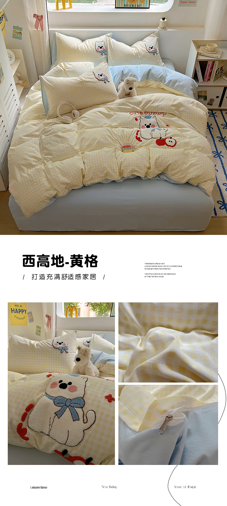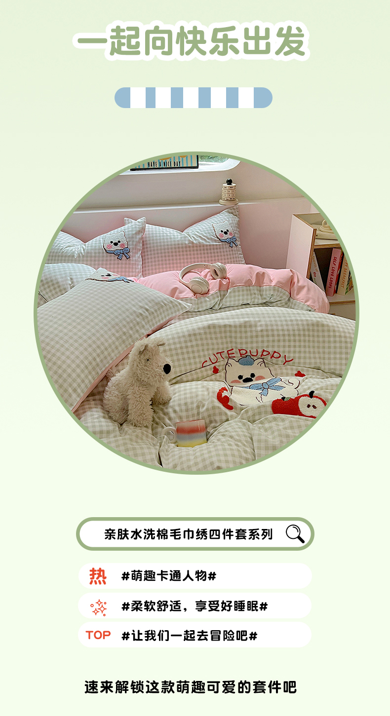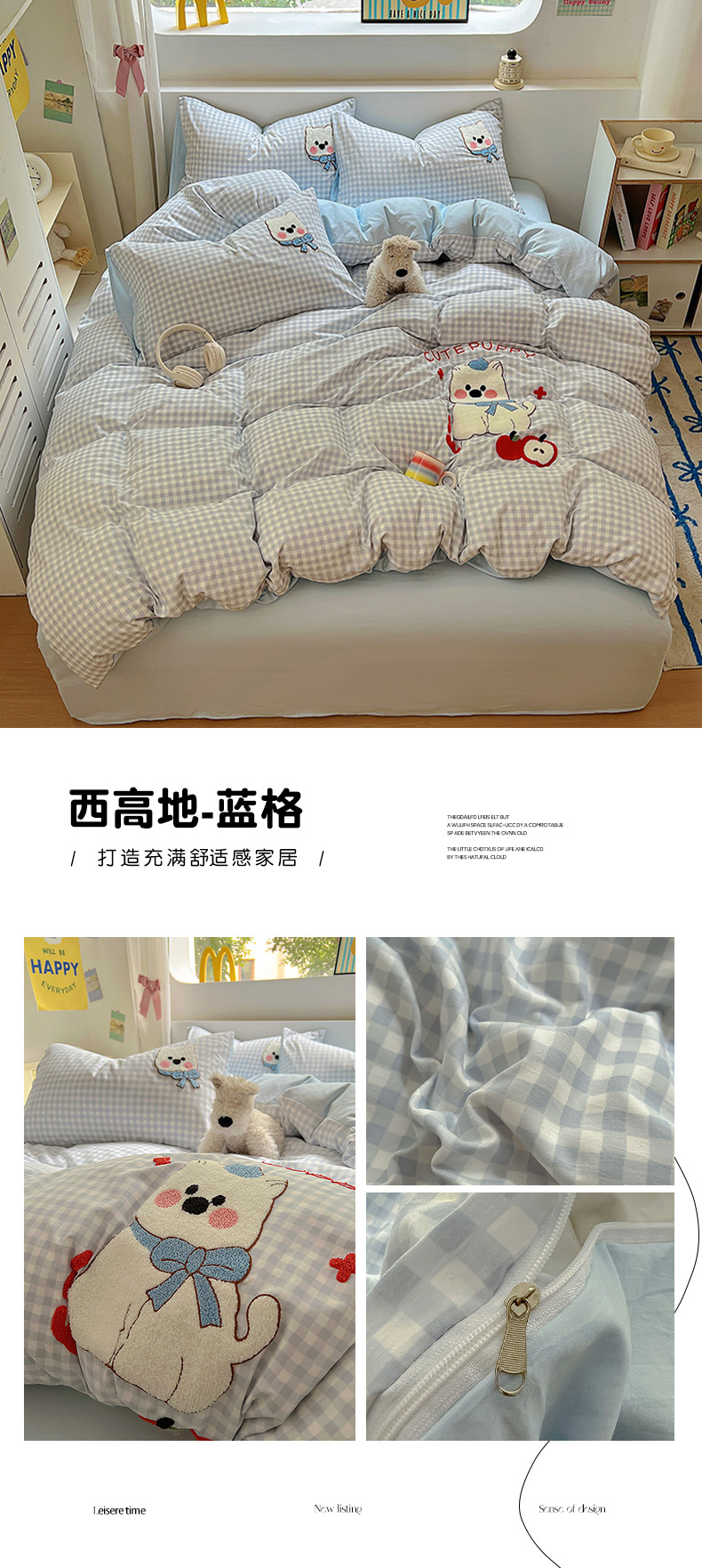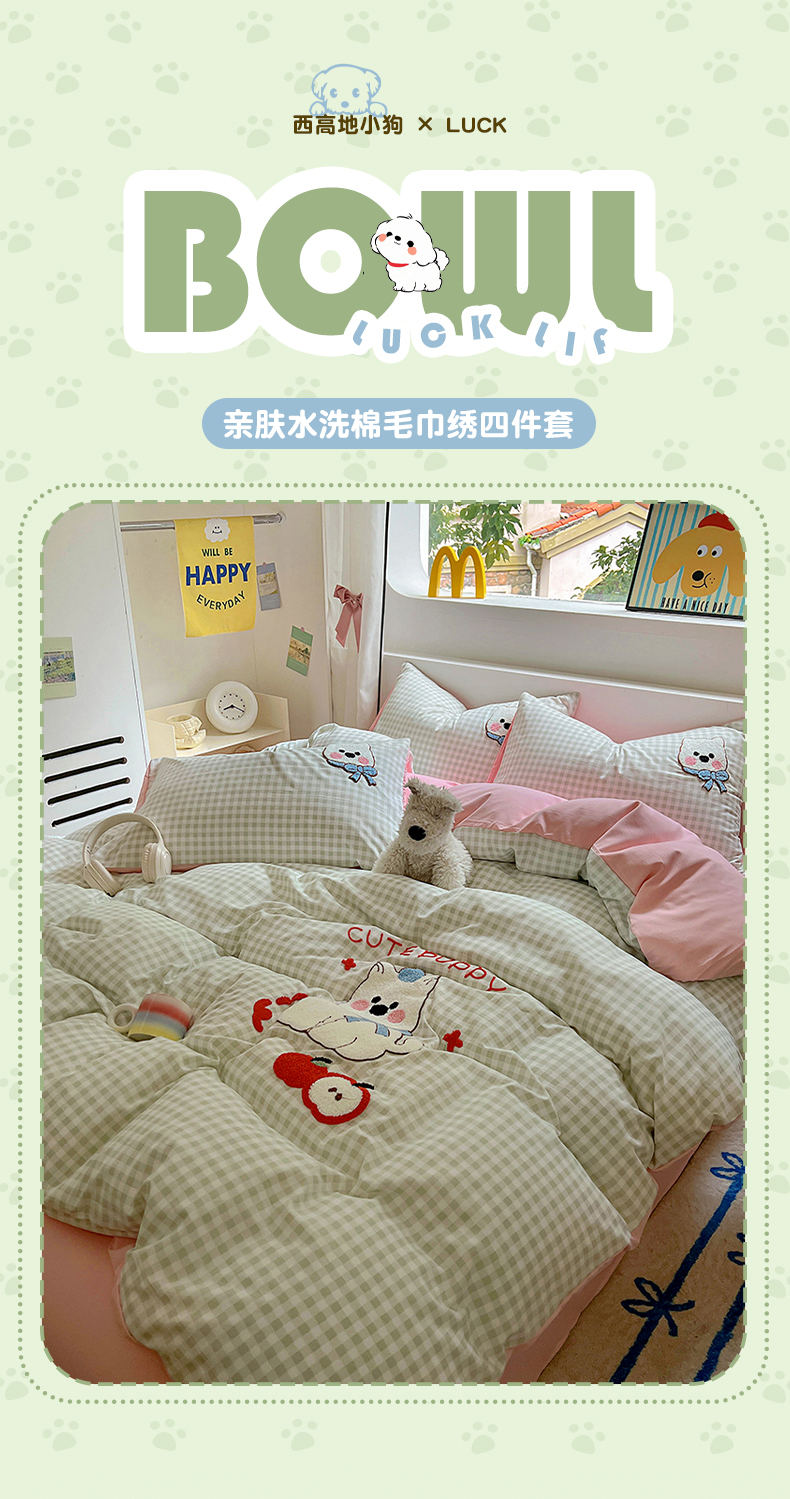 (总)韩都家居 2025新款春夏新款水洗棉卡通毛巾绣四件套-西高地(包含买家秀)