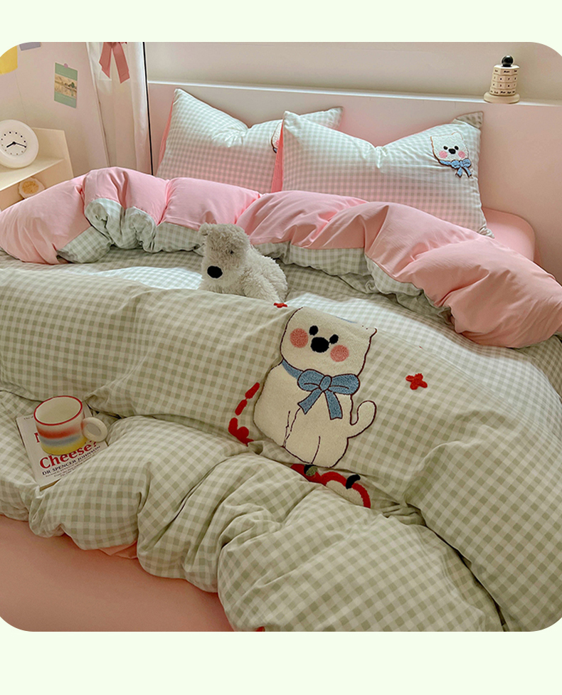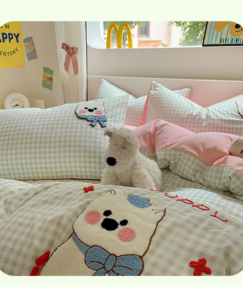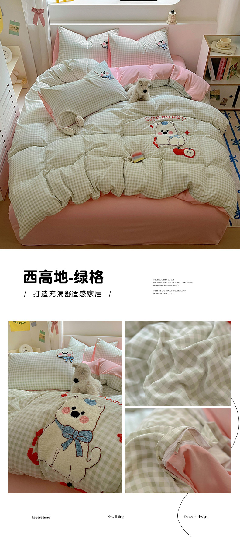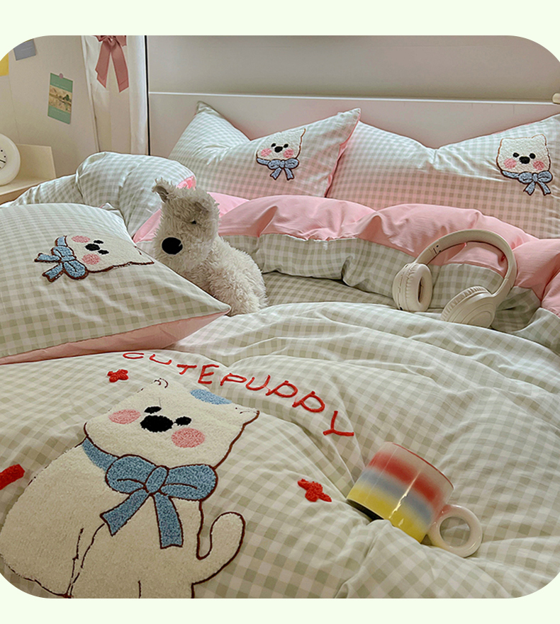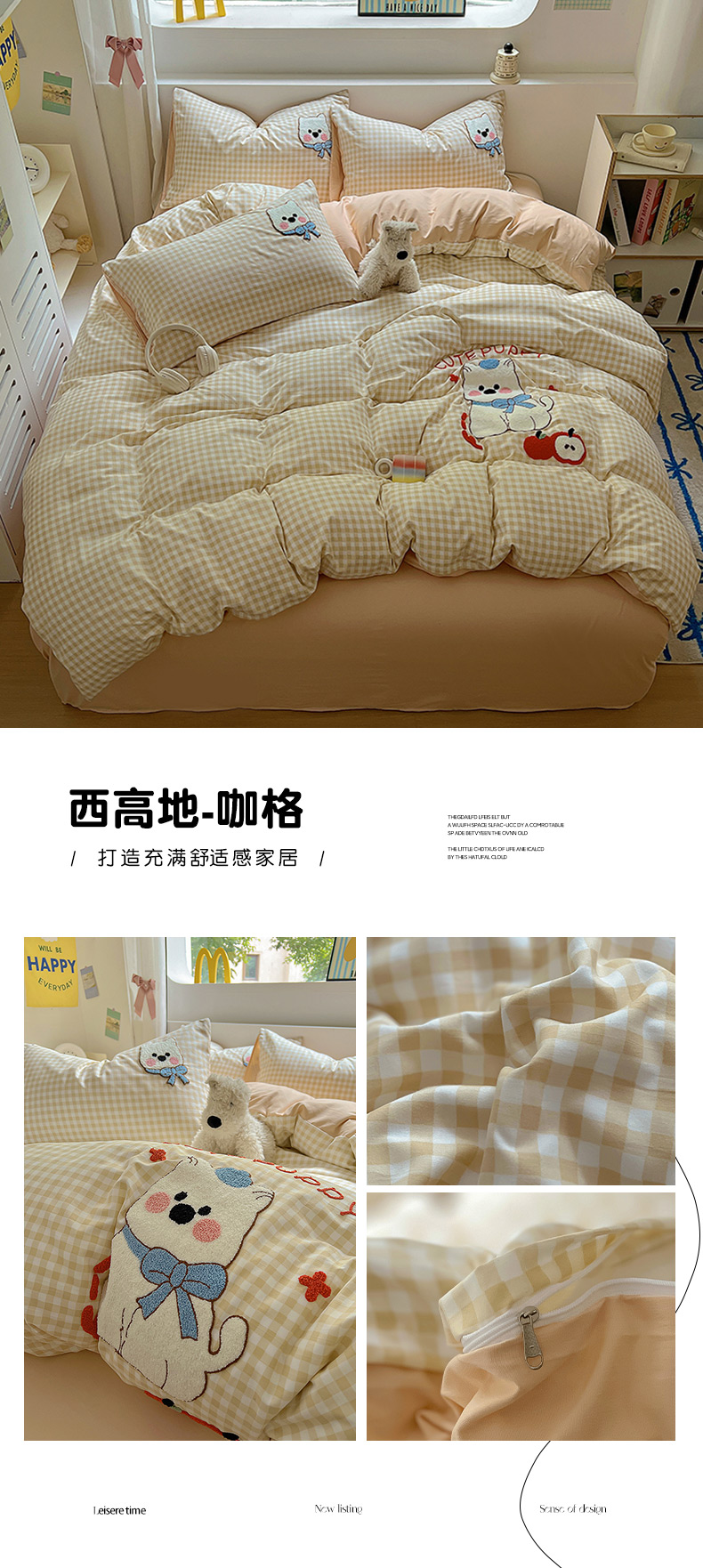 (总)韩都家居 2025新款春夏新款水洗棉卡通毛巾绣四件套-西高地(包含买家秀)