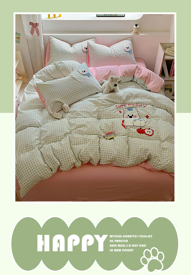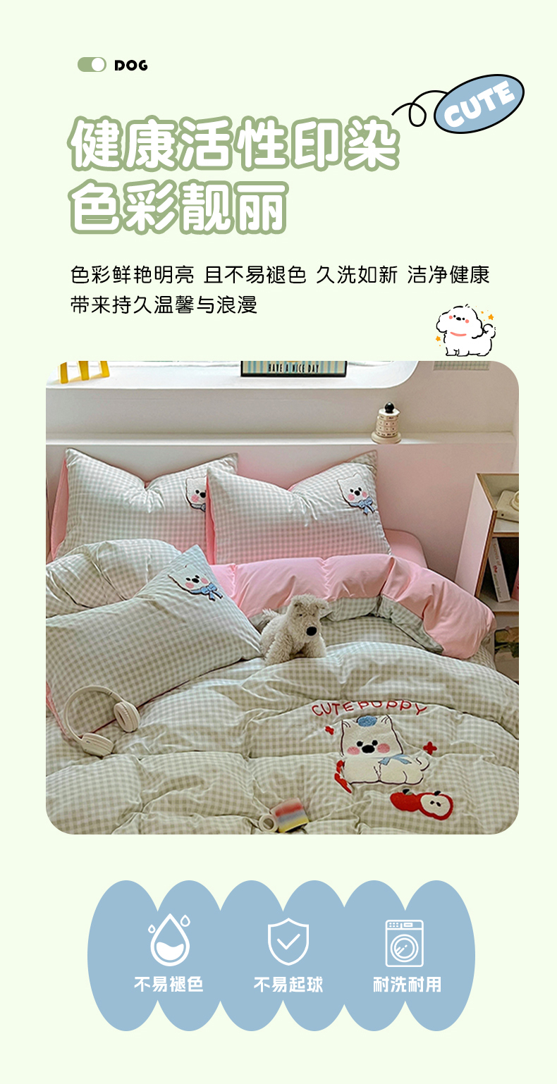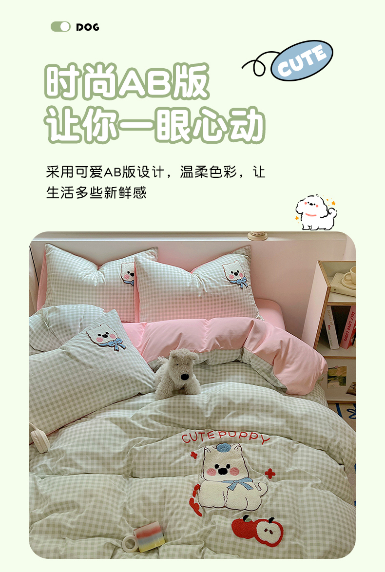 (总)韩都家居 2025新款卡通贴布绣系列加厚牛奶绒四件套,乖乖兔,冬日猫咪,苹果狗狗,绅士小狗,顽皮西高地,幸运小熊