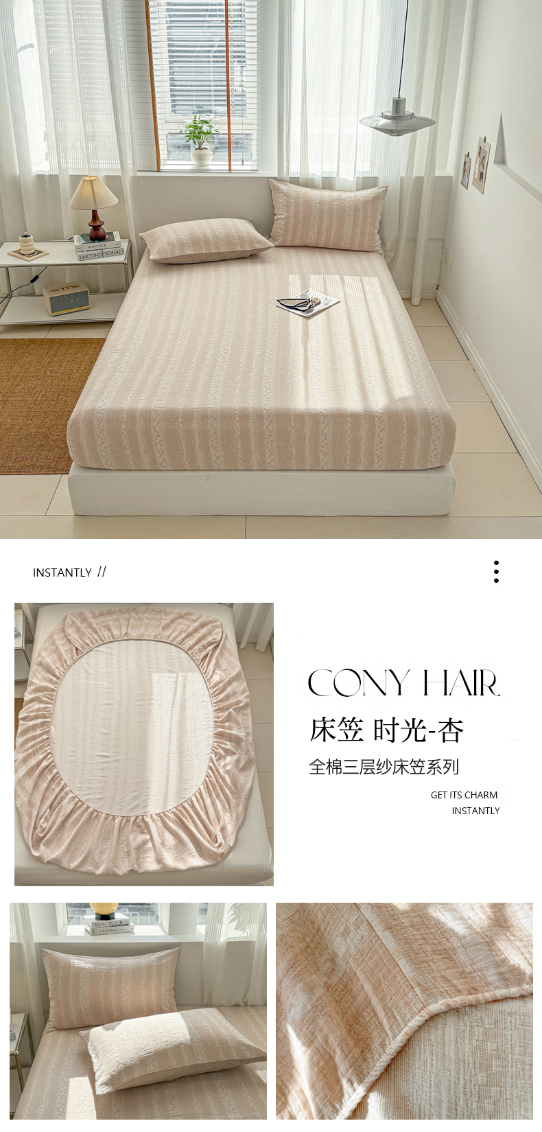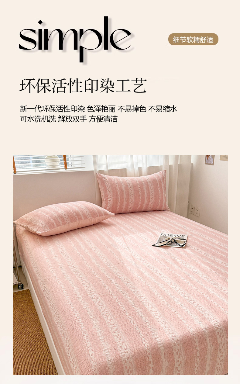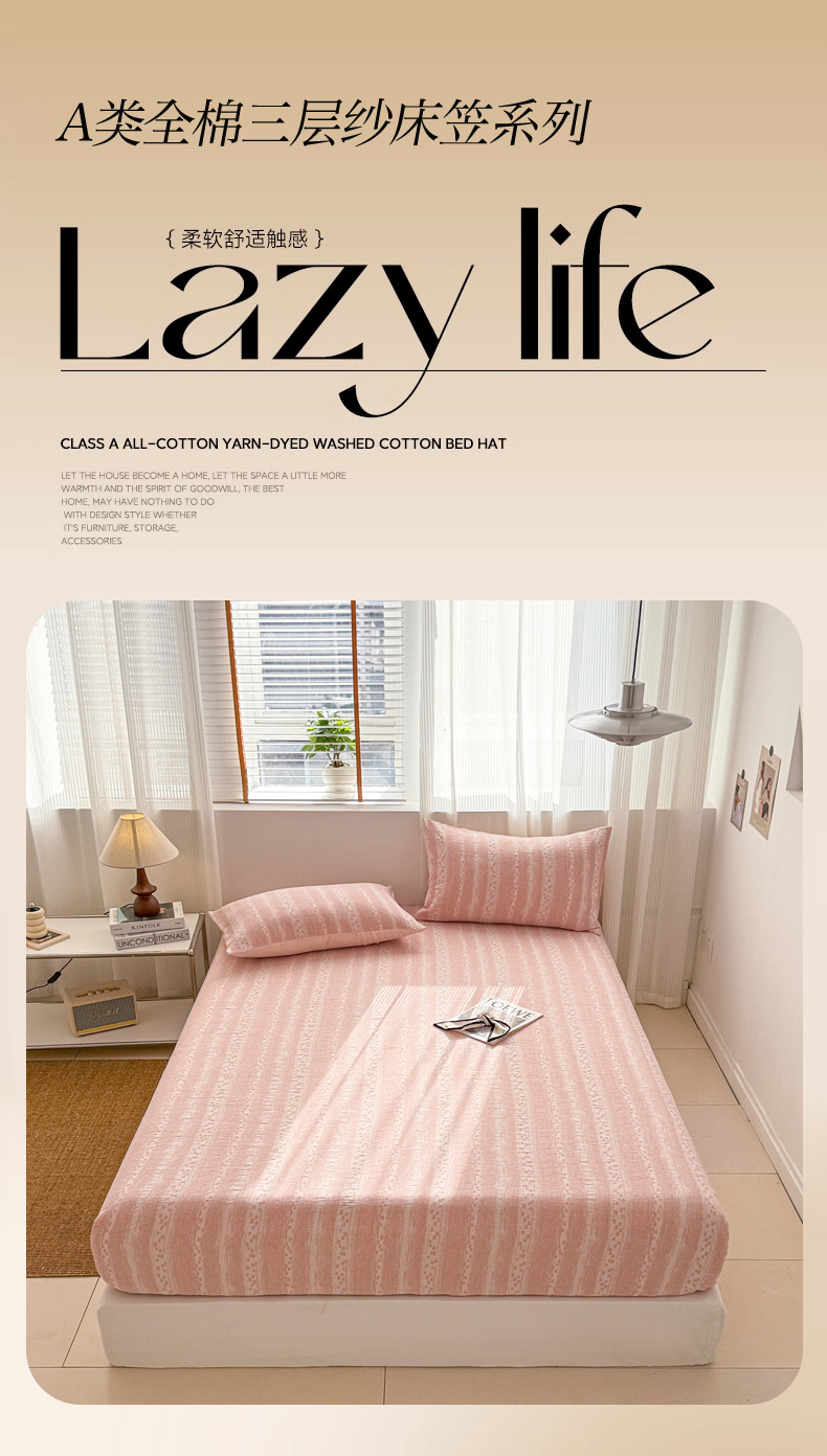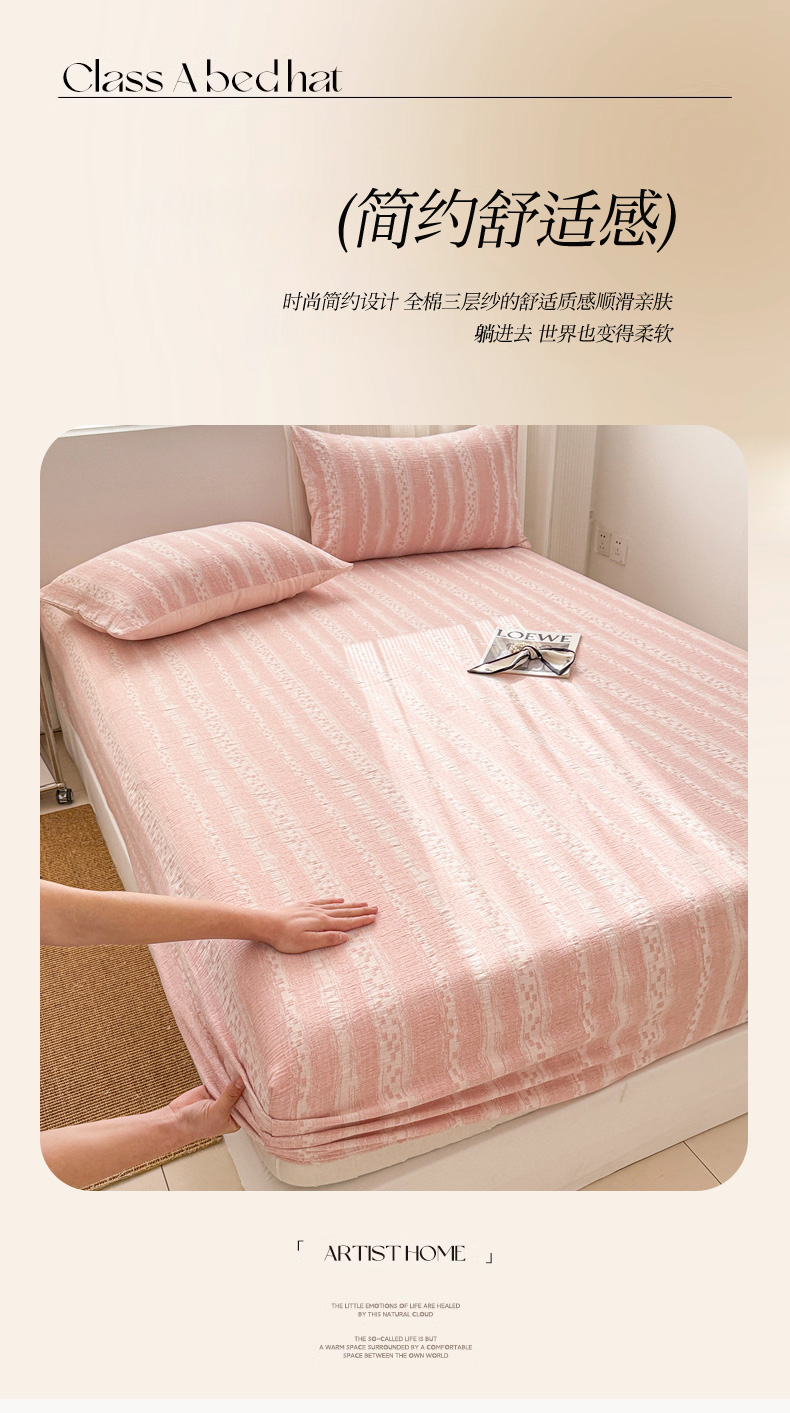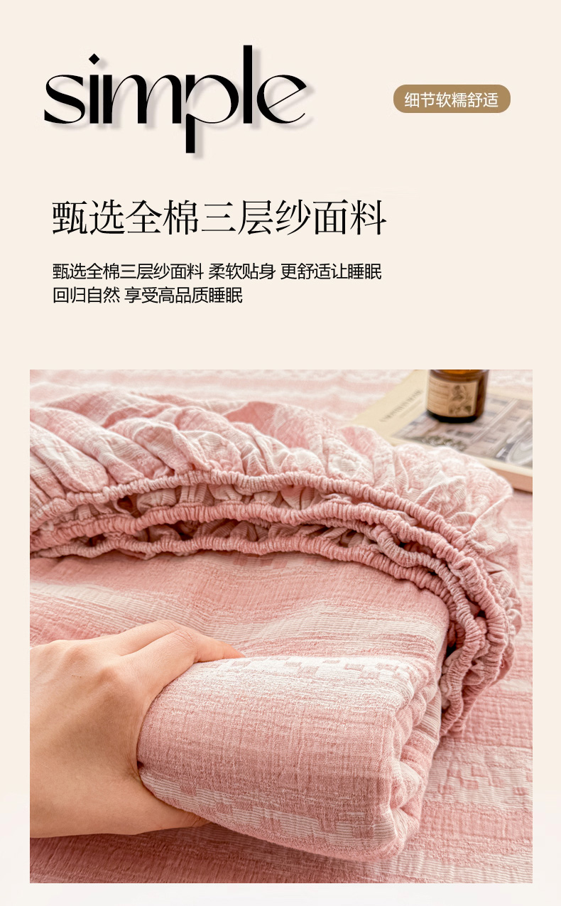 • 91家纺网 家纺一手货源 找家纺 眠博士 2025新款AB版简约时尚A类全棉三层纱系列单床笠 三层纱单床笠-时光 粉