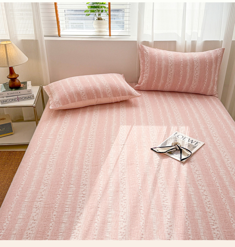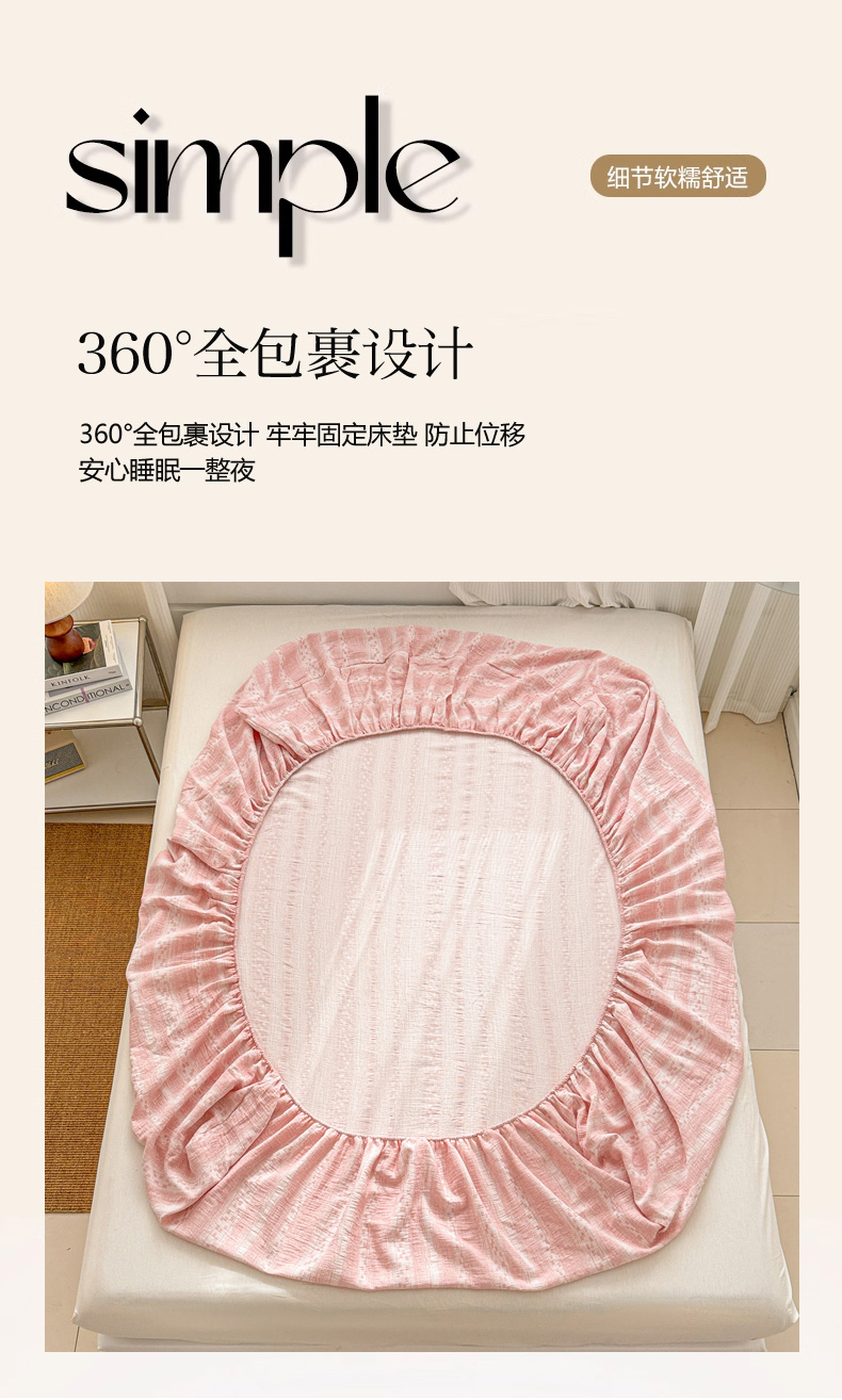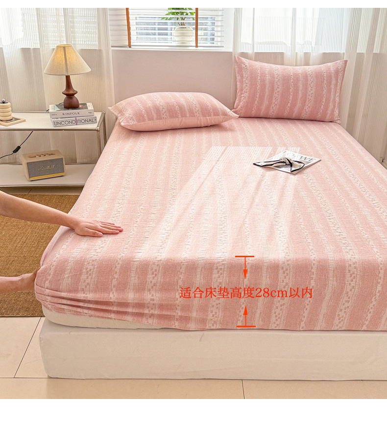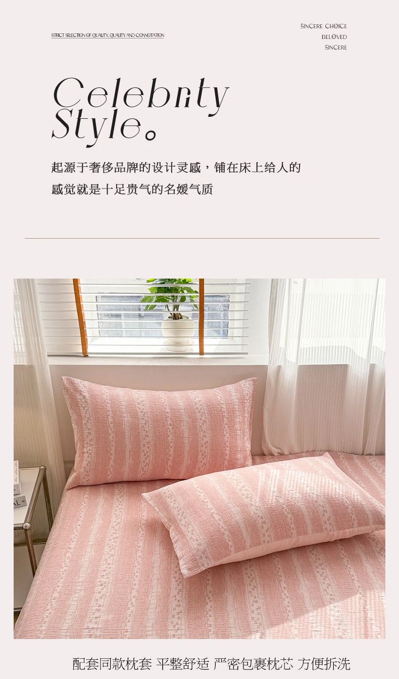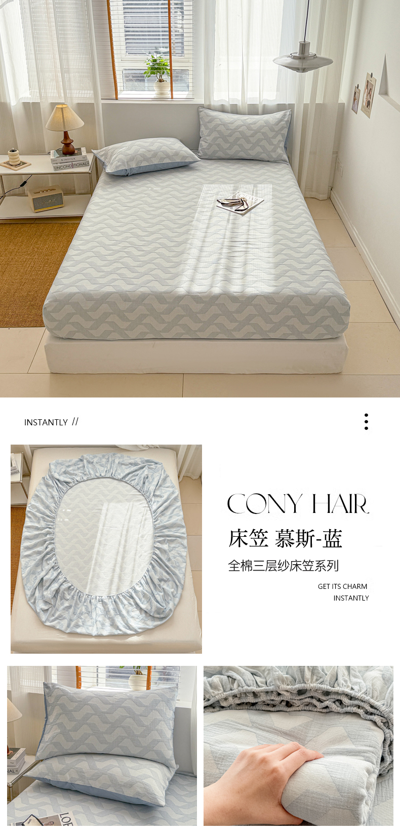 • 91家纺网 家纺一手货源 找家纺 眠博士 2025新款AB版简约时尚A类全棉三层纱系列单床笠 三层纱单床笠-时光 粉