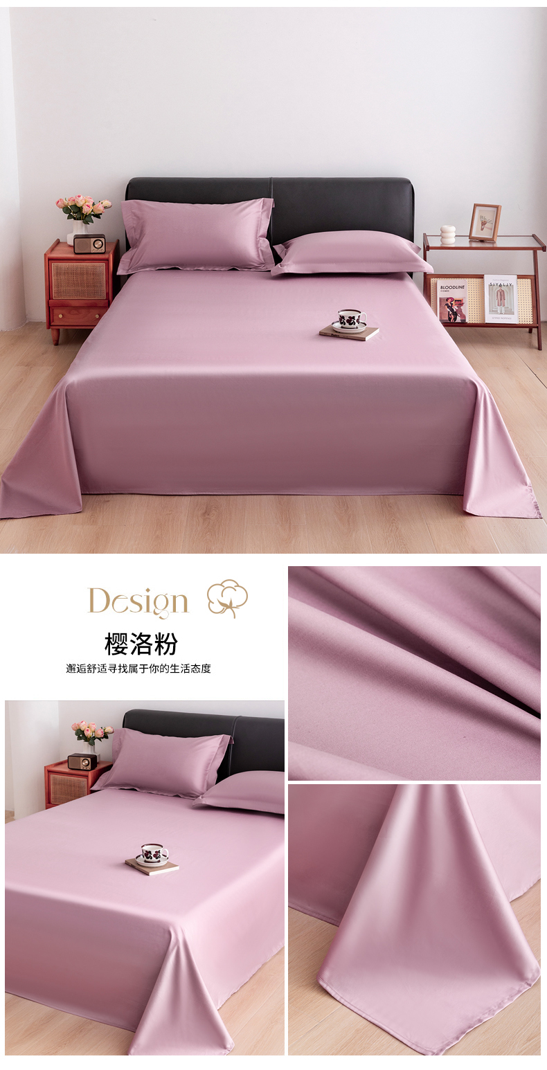 宝时兰 2025新款100支新疆长绒棉单品床单全棉枕套纯棉三件套 樱洛粉