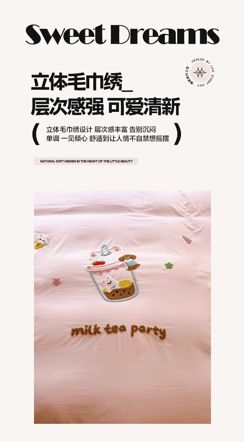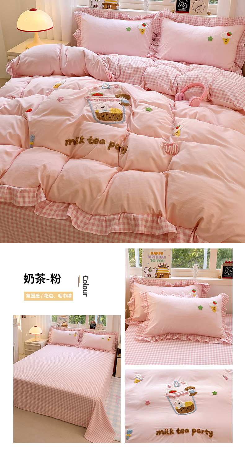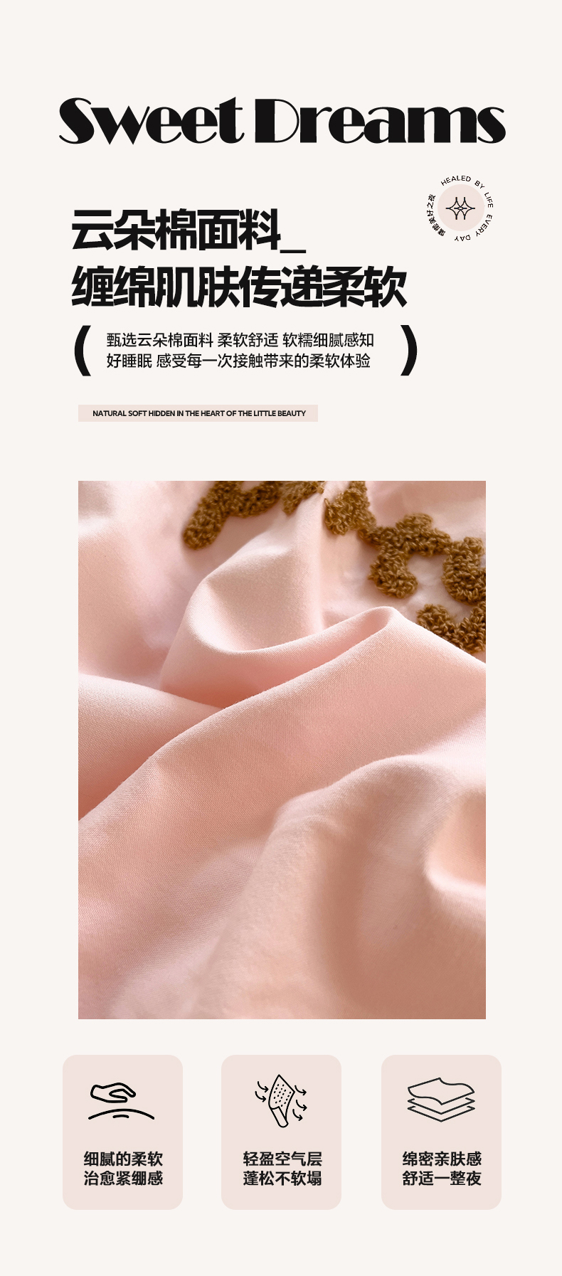 当前位置: 91家纺网 > 商品网购 > 床品套件 > 四件套 > 其它四件套 > 梦之岛 2025新款ins韩版奶茶风云朵棉可爱毛巾绣四件套 奶茶-粉