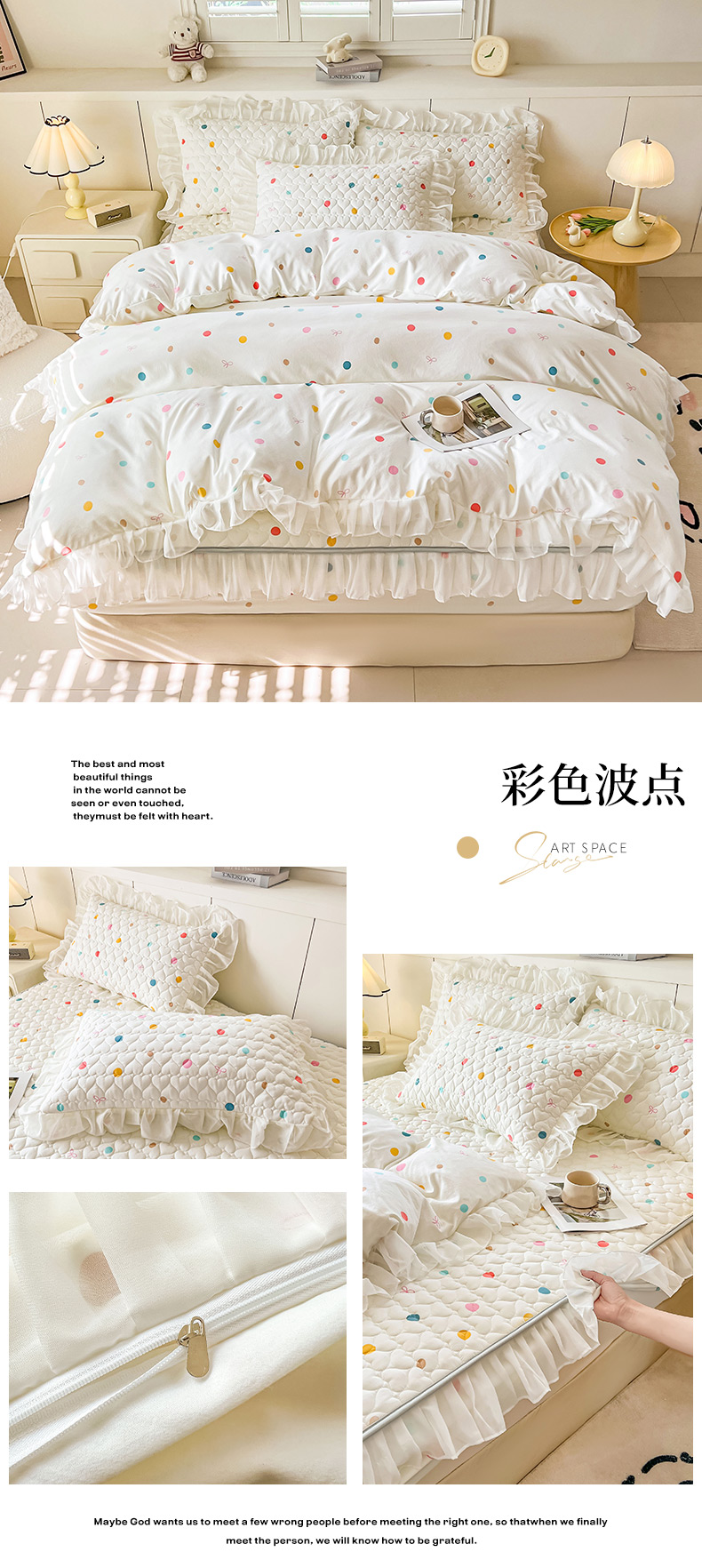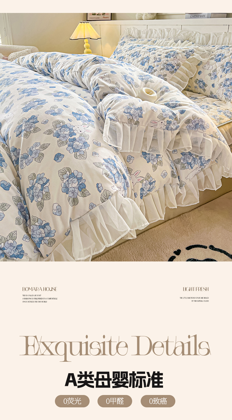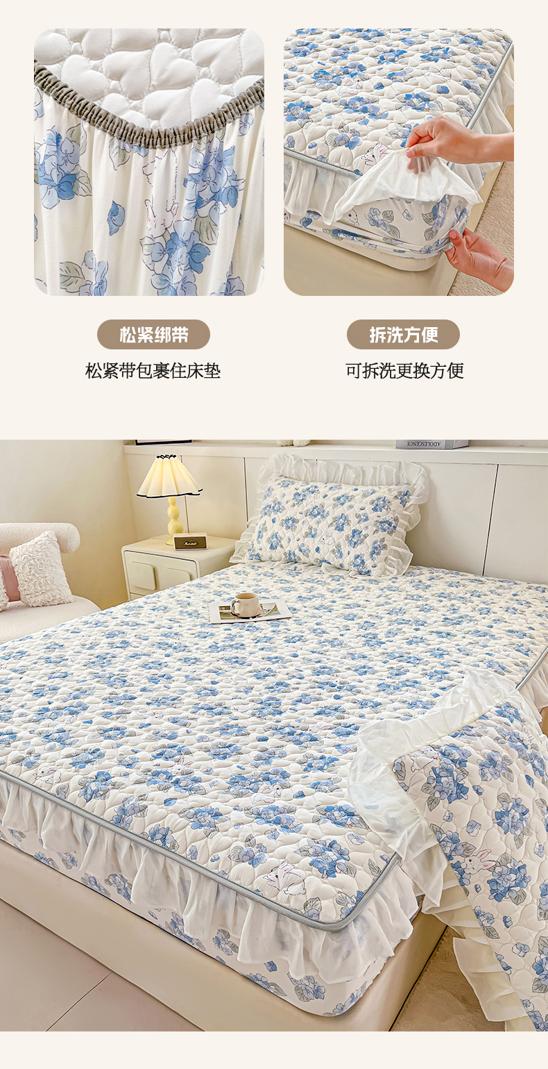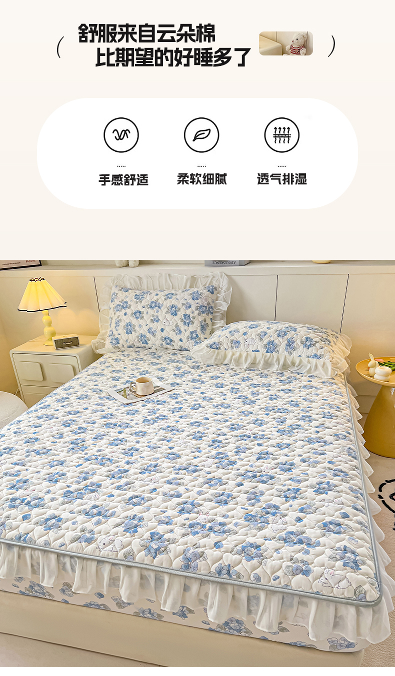 当前位置: 91家纺网 > 商品网购 > 床品套件 > 四件套 > 其它四件套 > 眠势力 2025新款韩版花边床笠款四件套雪纺公主风ins夹棉四季通用席梦思保护套 花语满园