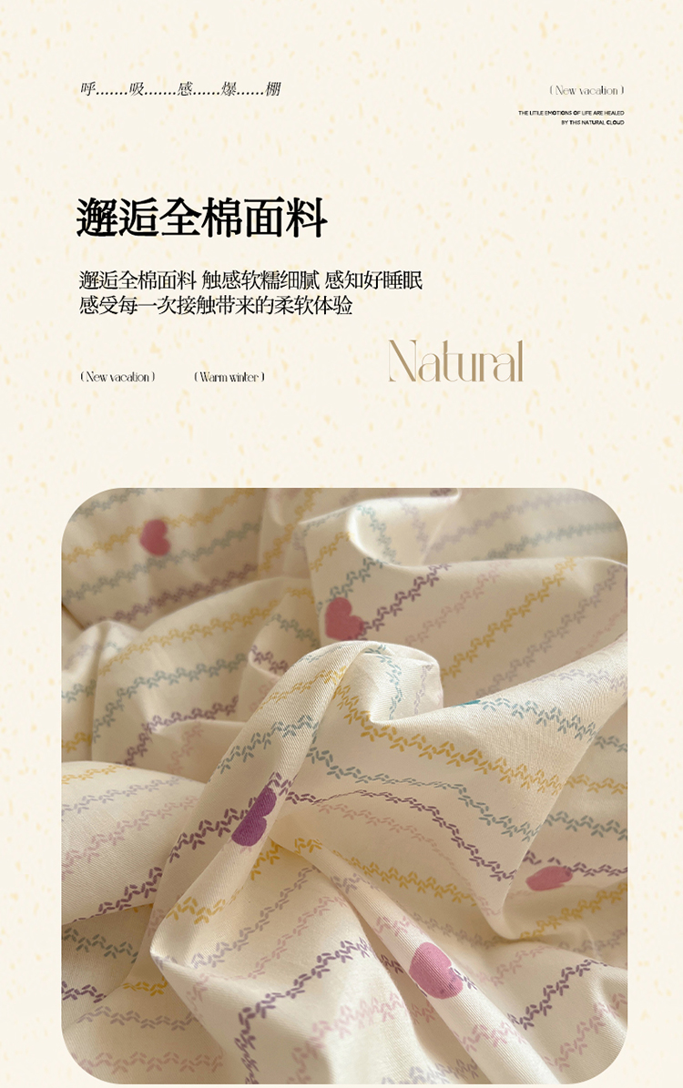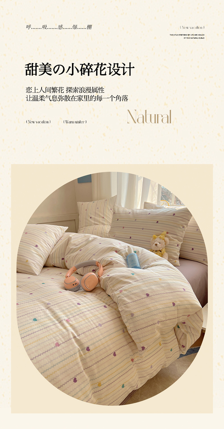 商品名称:2025春季新款13372全棉印花四件套-小清新系列 心意满满