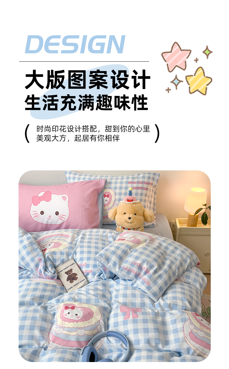 当前位置: 91家纺网 > 商品网购 > 床品套件 > 四件套 > 水洗棉四件套 > 好亿来家纺 2025新款水洗云朵棉大版枕套四件套单品系列-四件套 派对猫