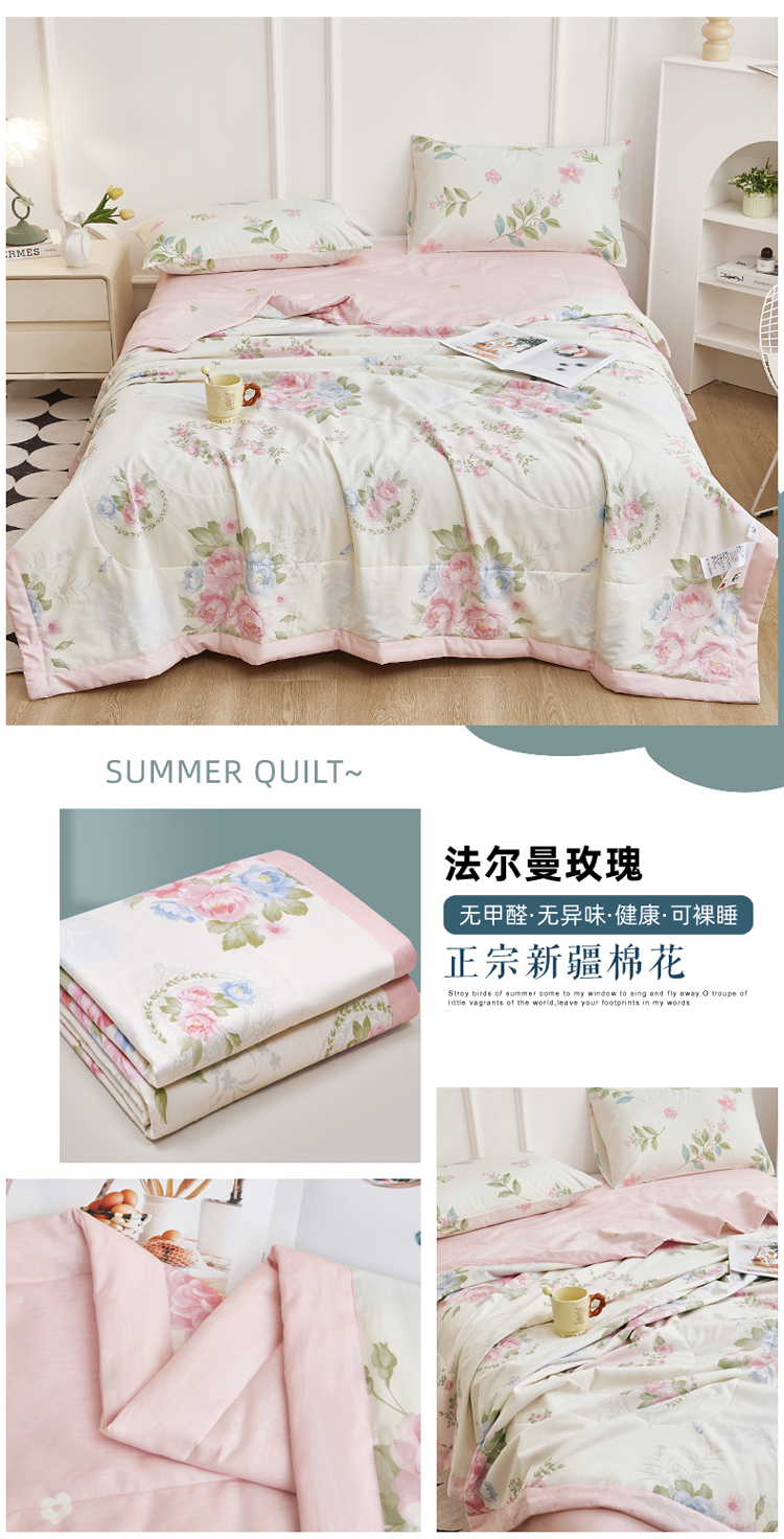 商品名称:尊妙被业 2025新款里外全棉印花棉花被纯棉夏被夏凉被全棉棉花夏凉被法尔曼玫瑰