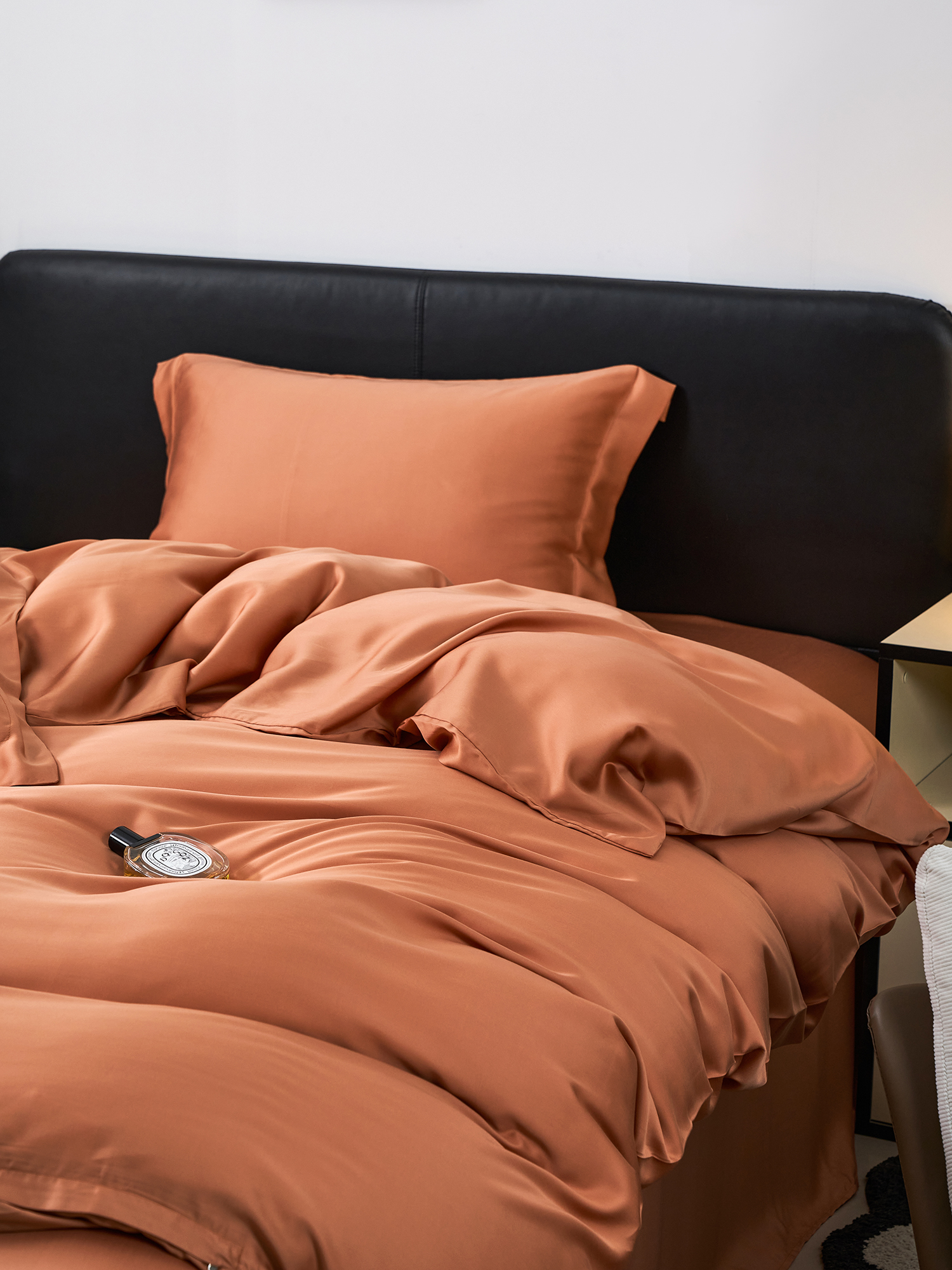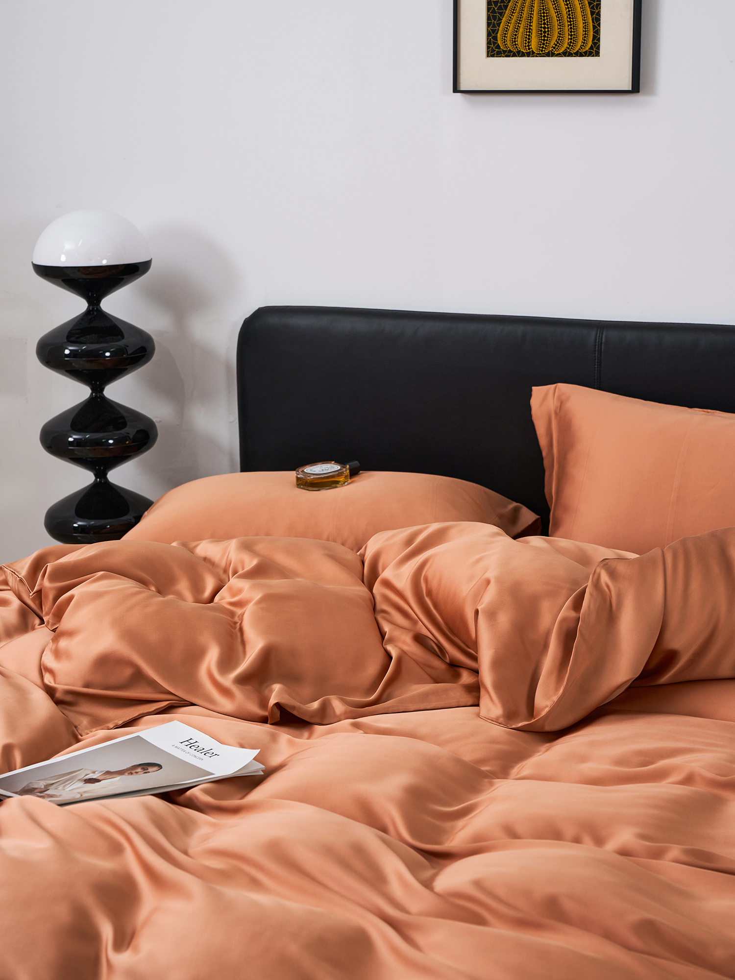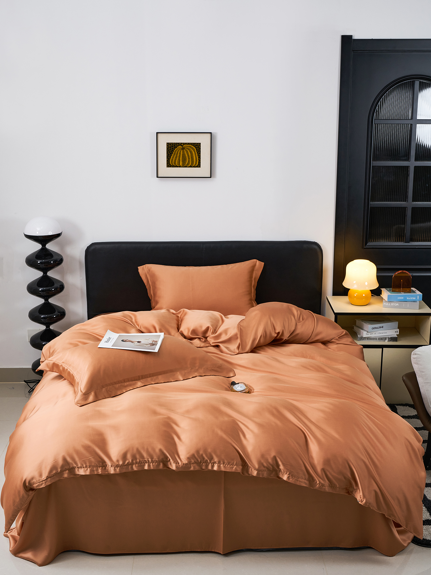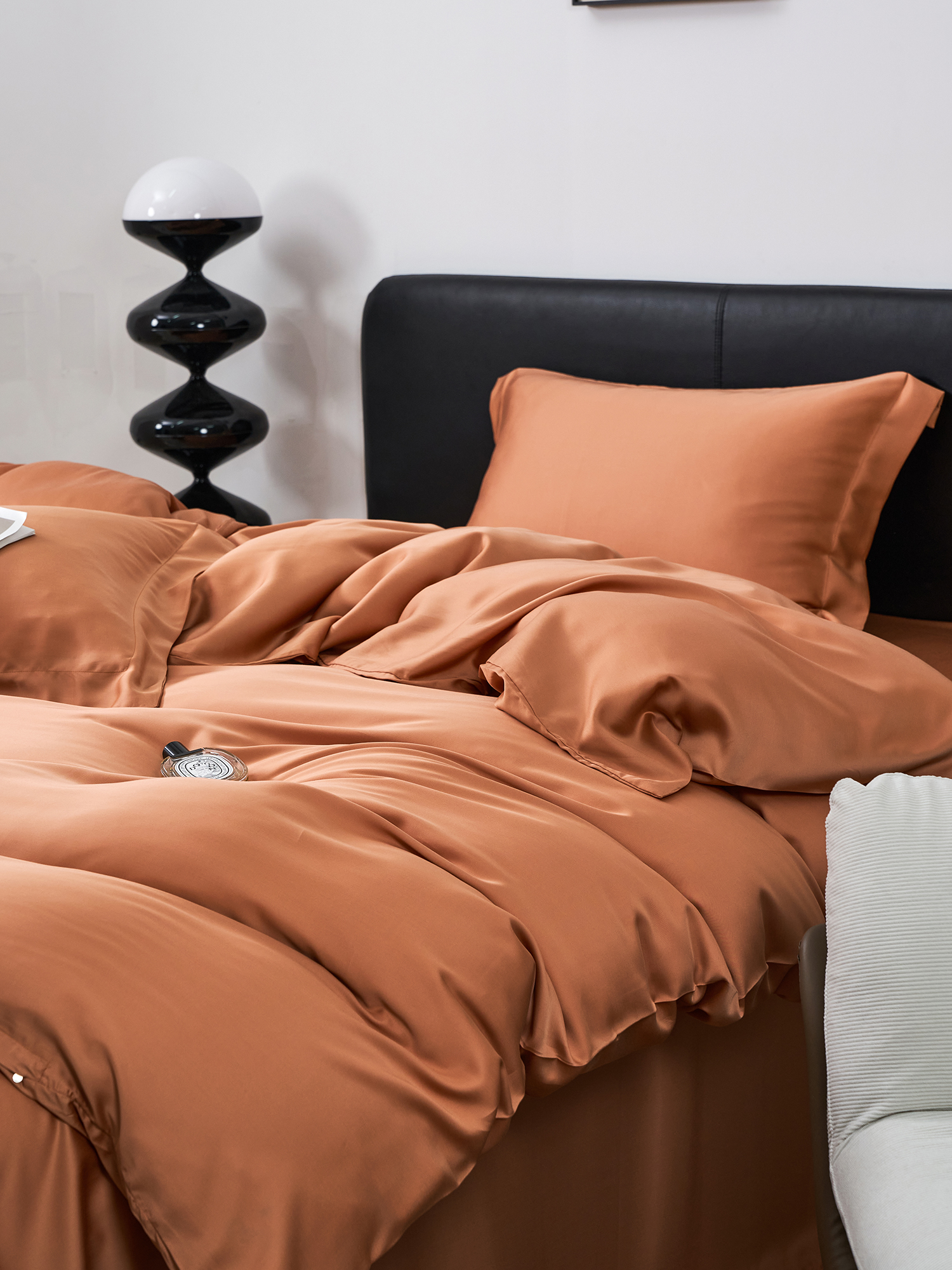 商品名称:顾家家居 2025新款纯色兰精天丝四件套 美人焦橙