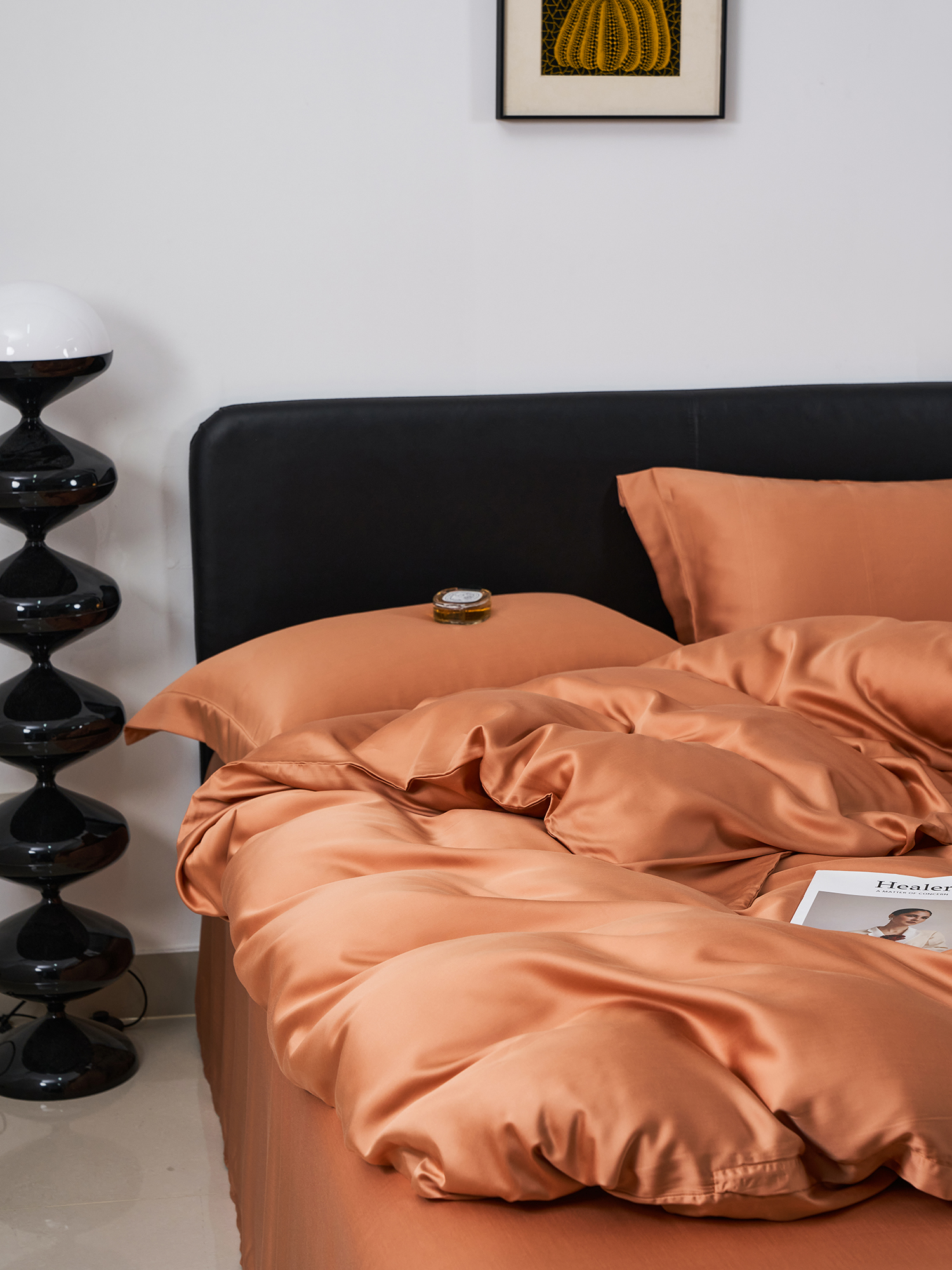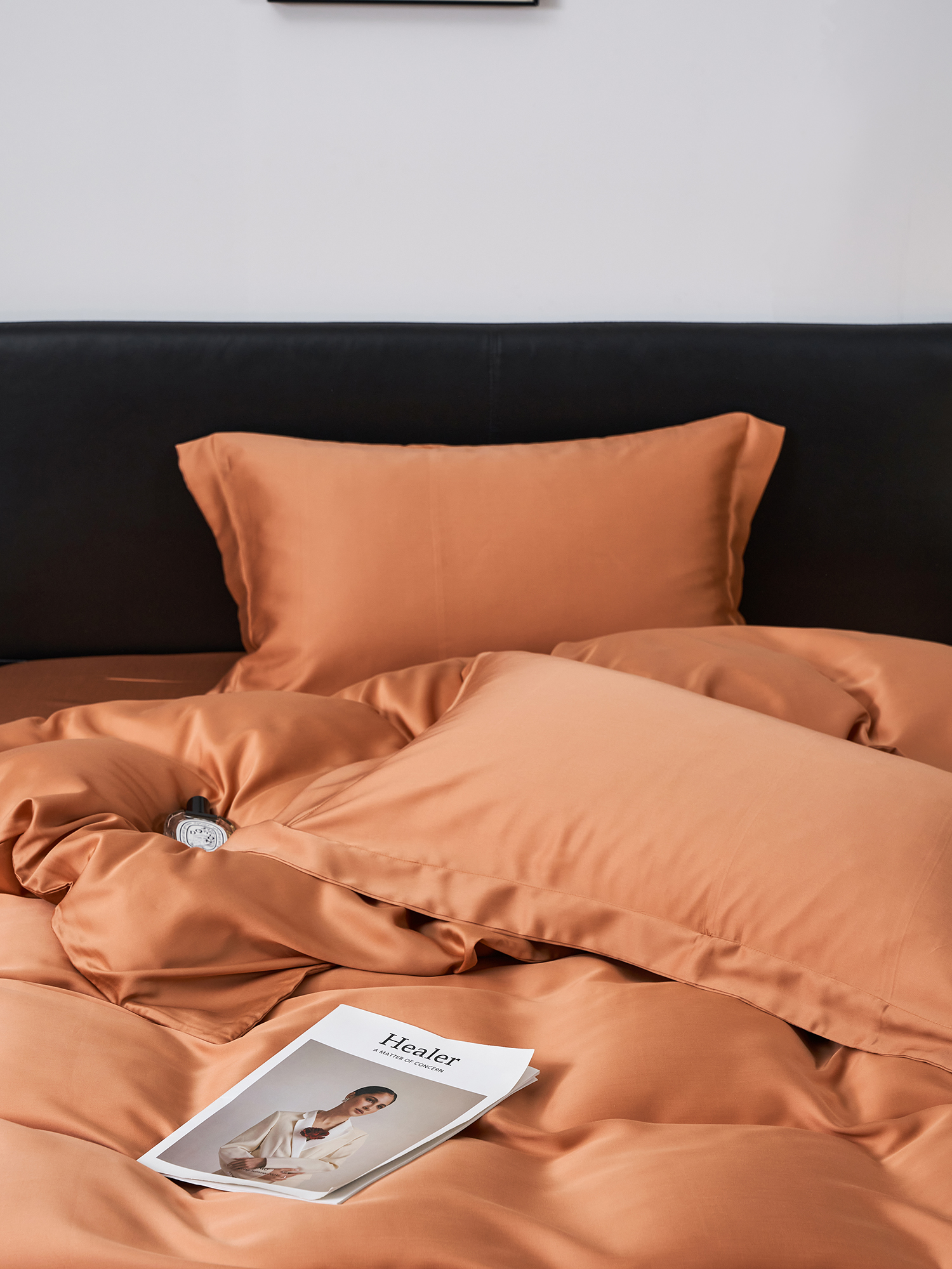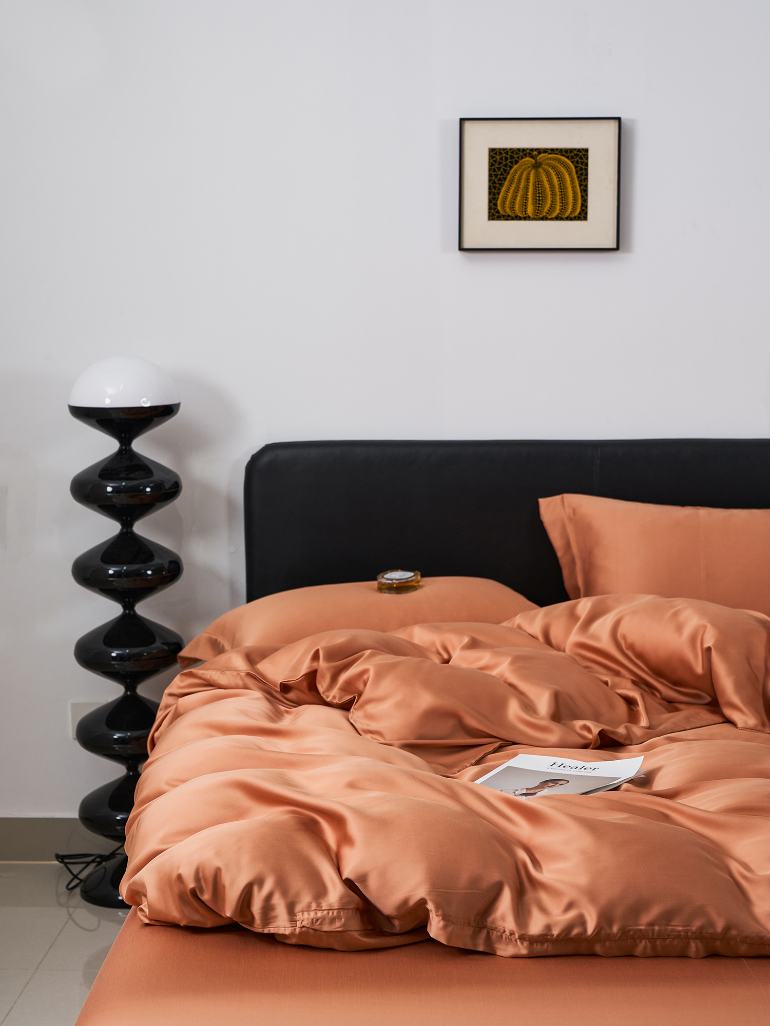 商品名称:顾家家居 2025新款纯色兰精天丝四件套 美人焦橙
