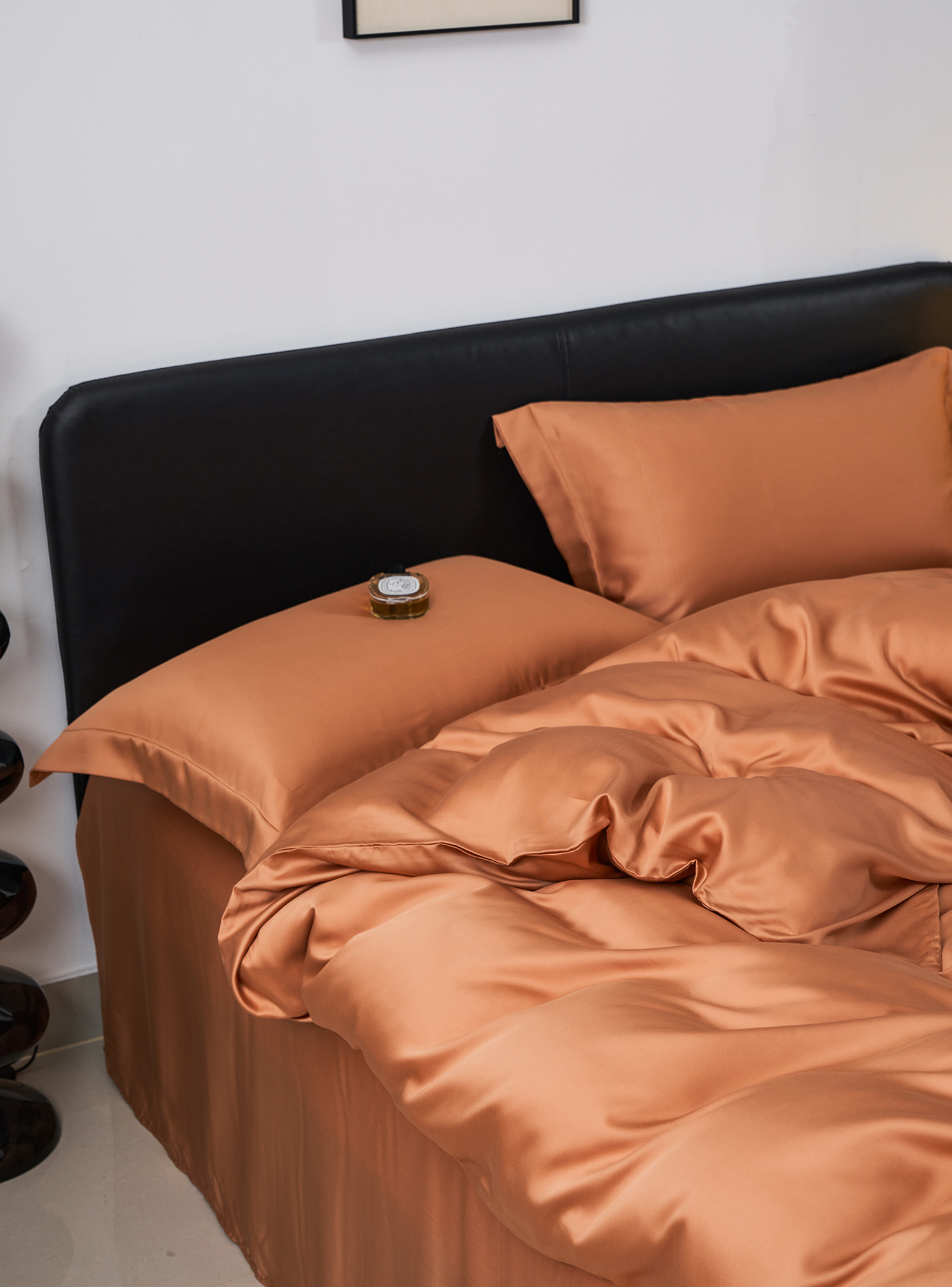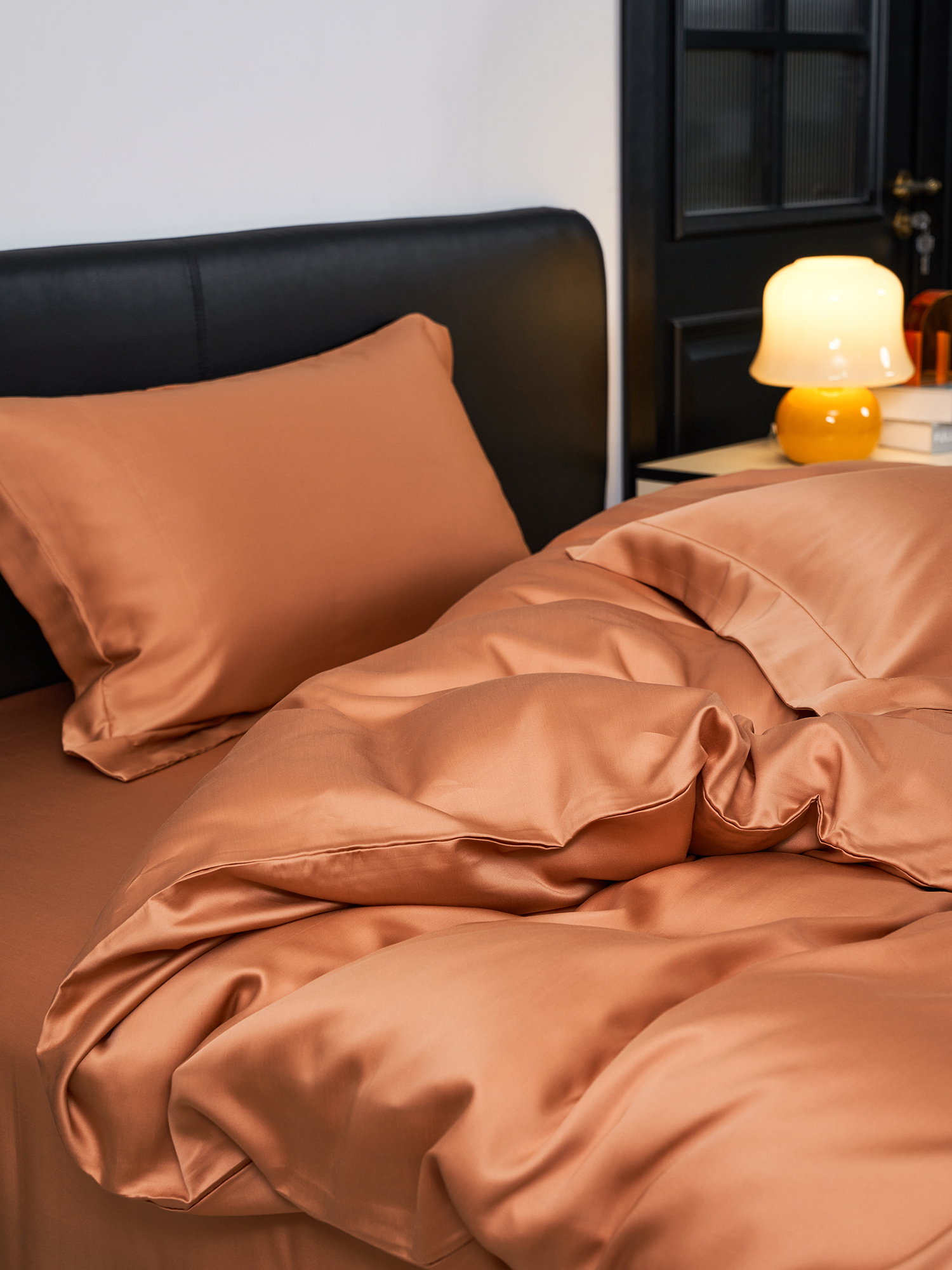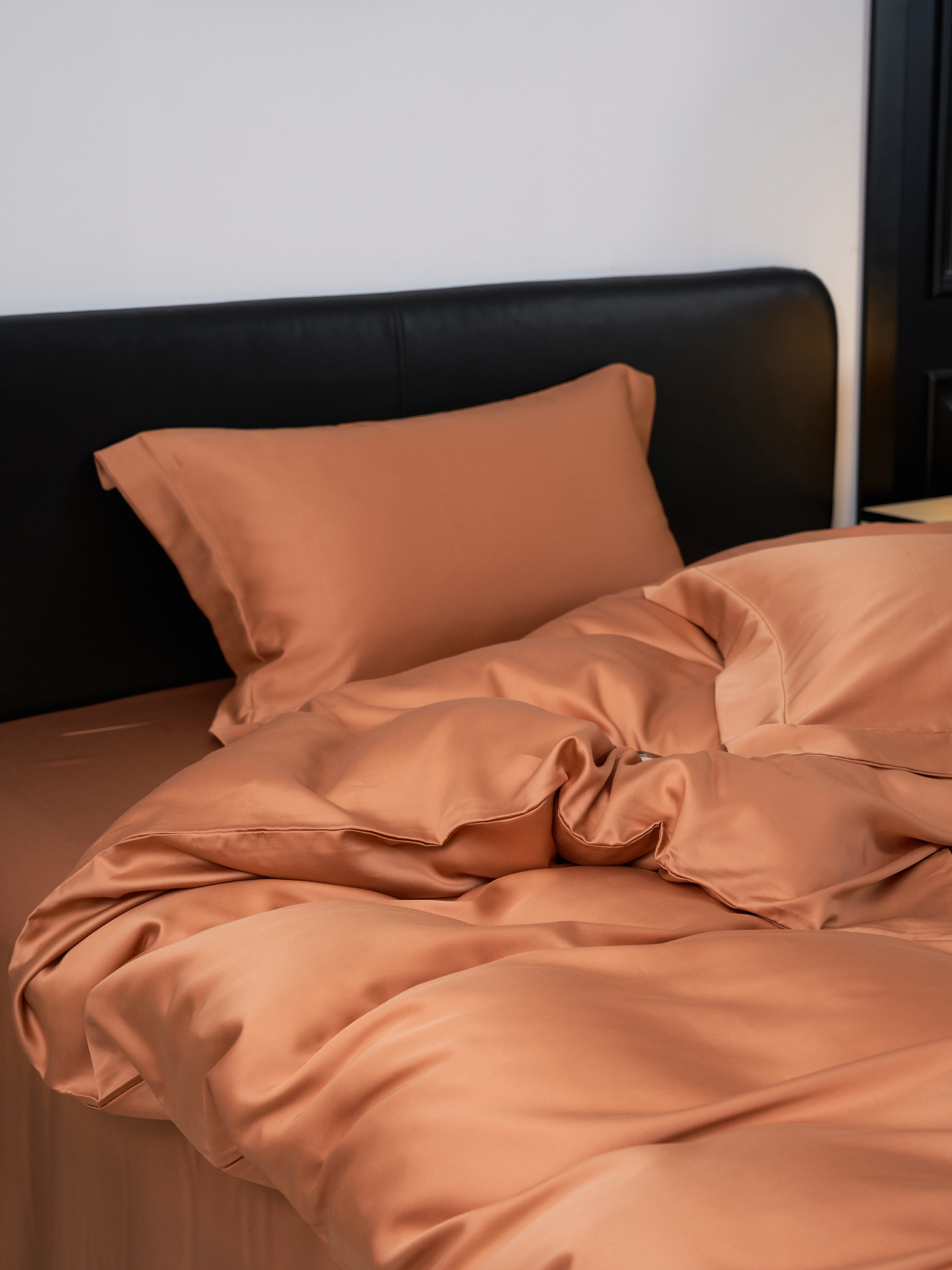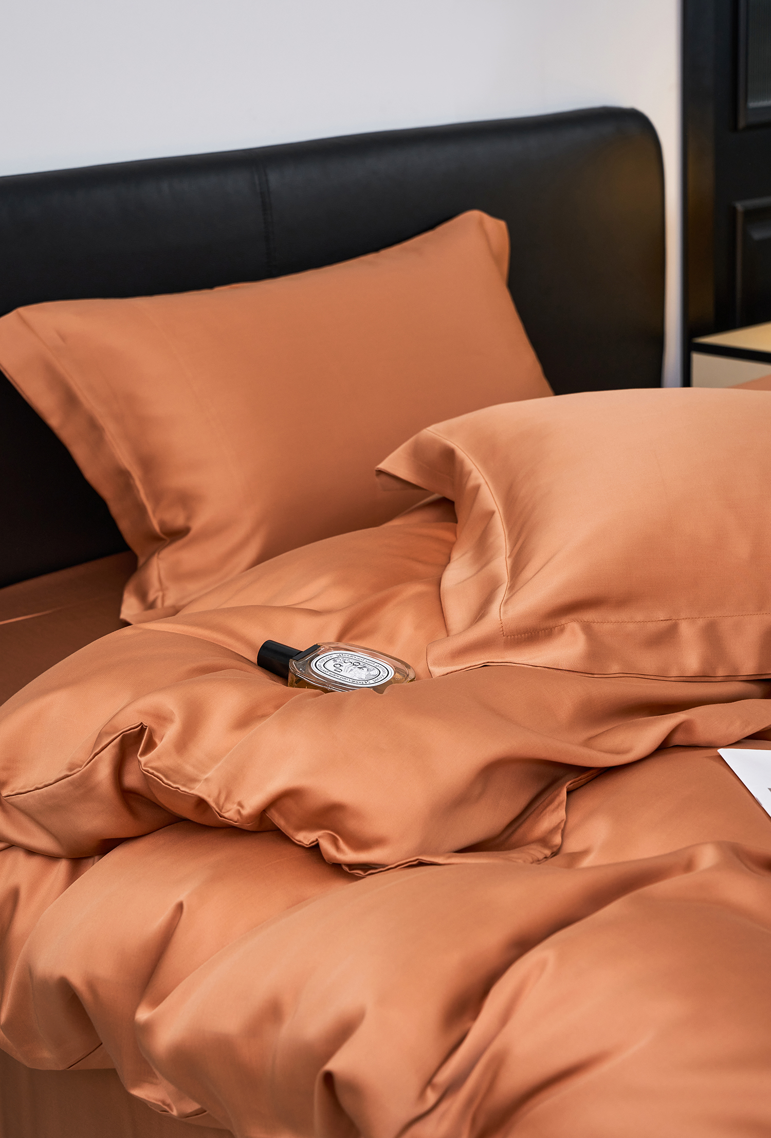 商品名称:顾家家居 2025新款纯色兰精天丝四件套 美人焦橙