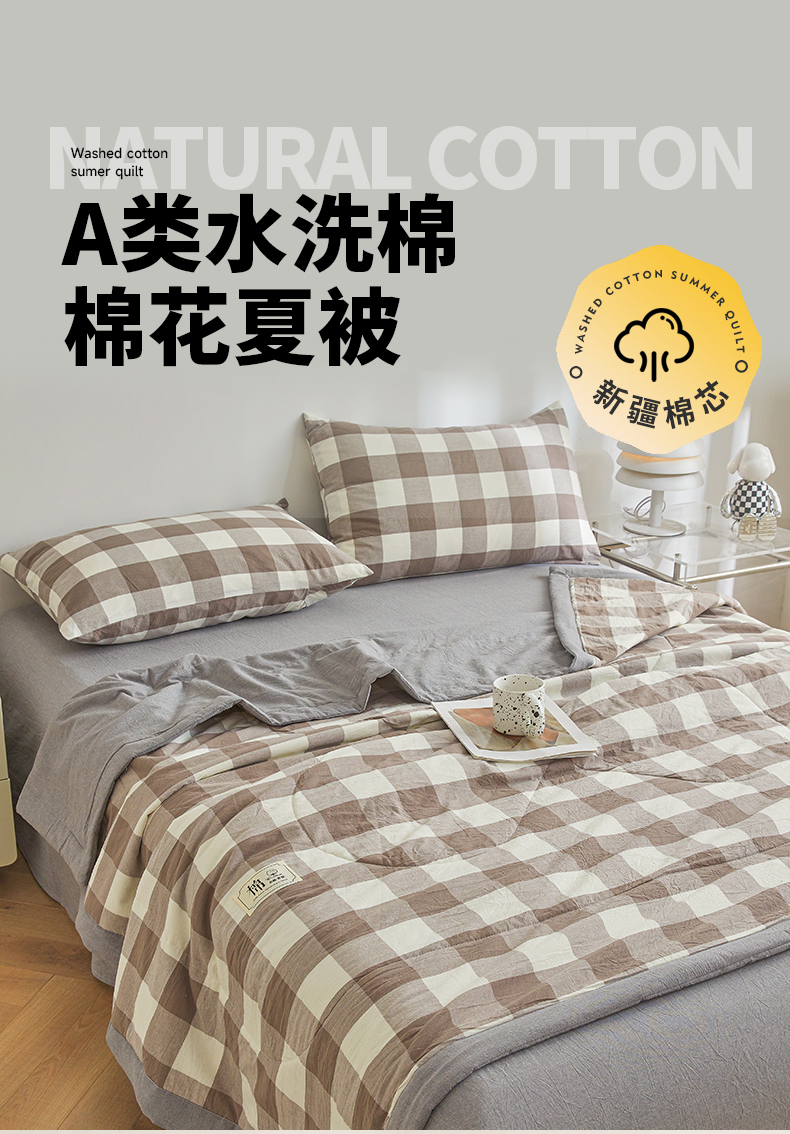 爱屋及屋 2025新款无印风被子被芯夏凉被空调被 灰中格