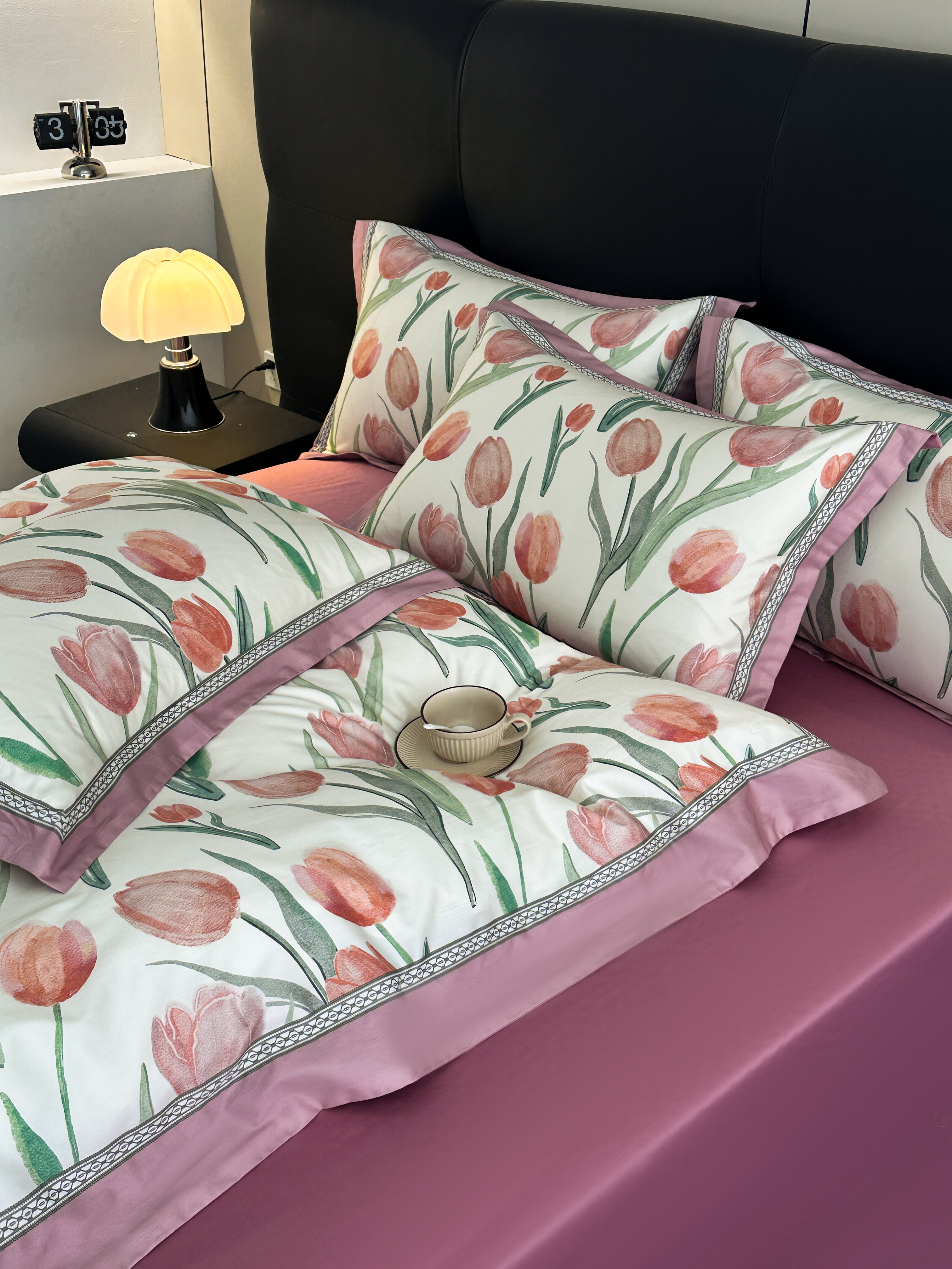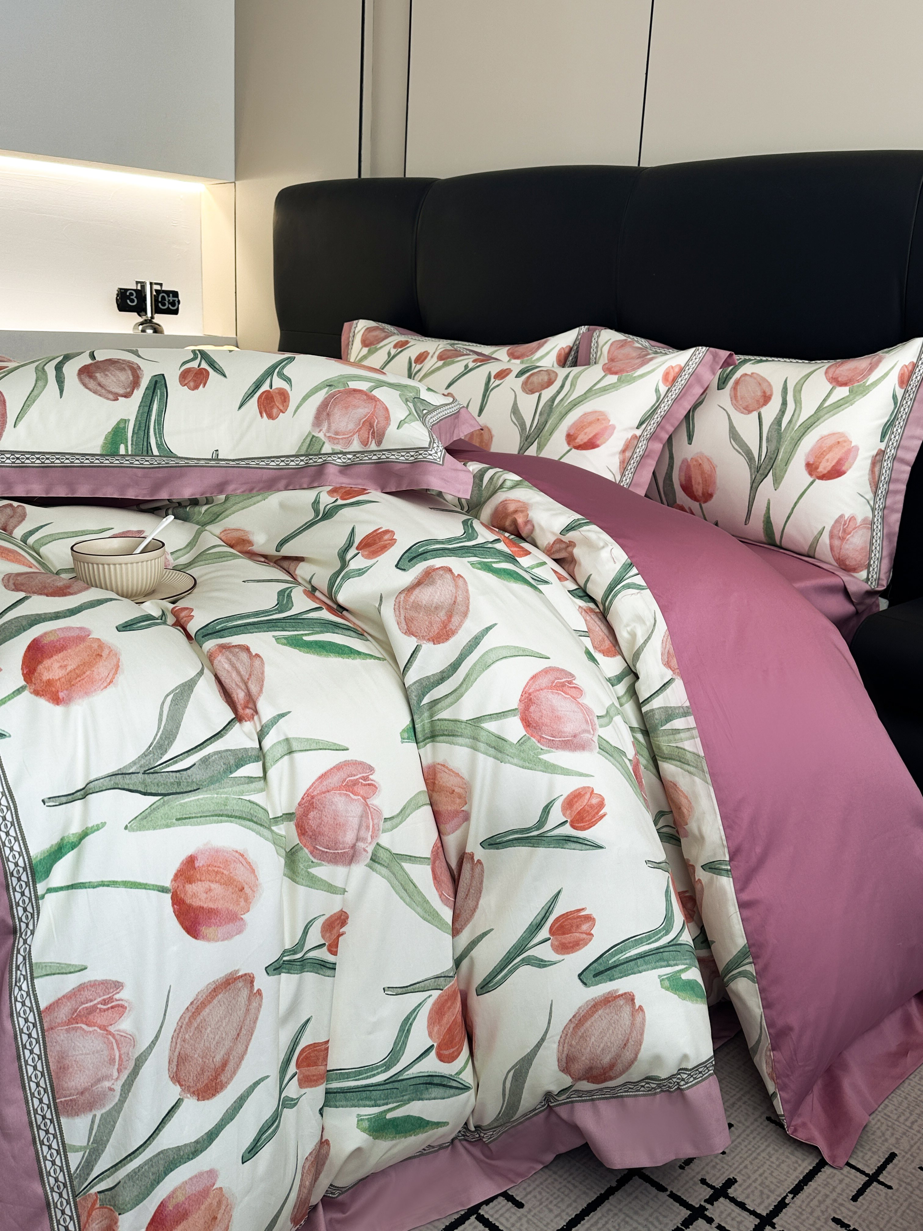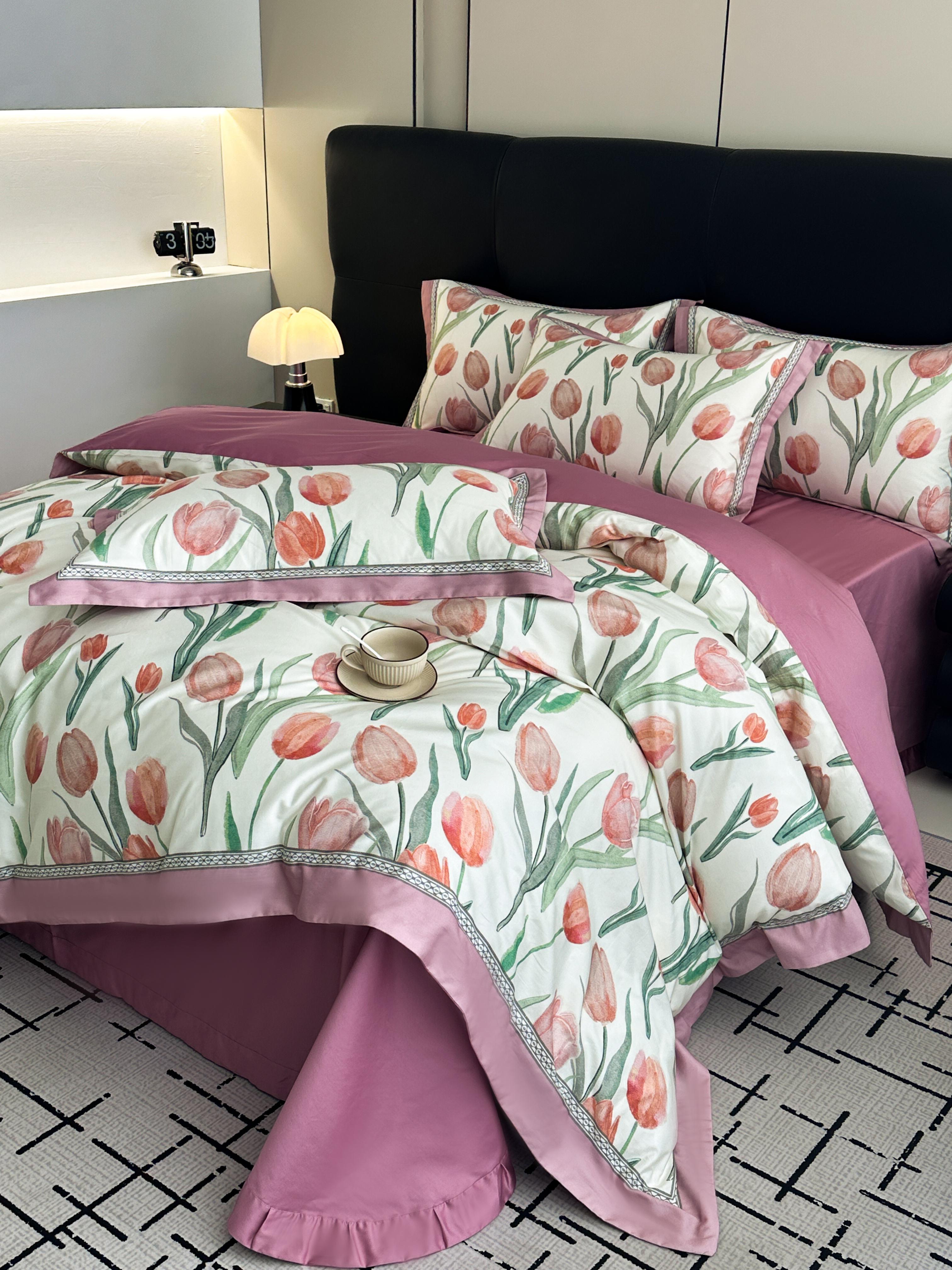 顾家家居 2025新款长绒棉数码印花隐形宽边四件套 郁金香