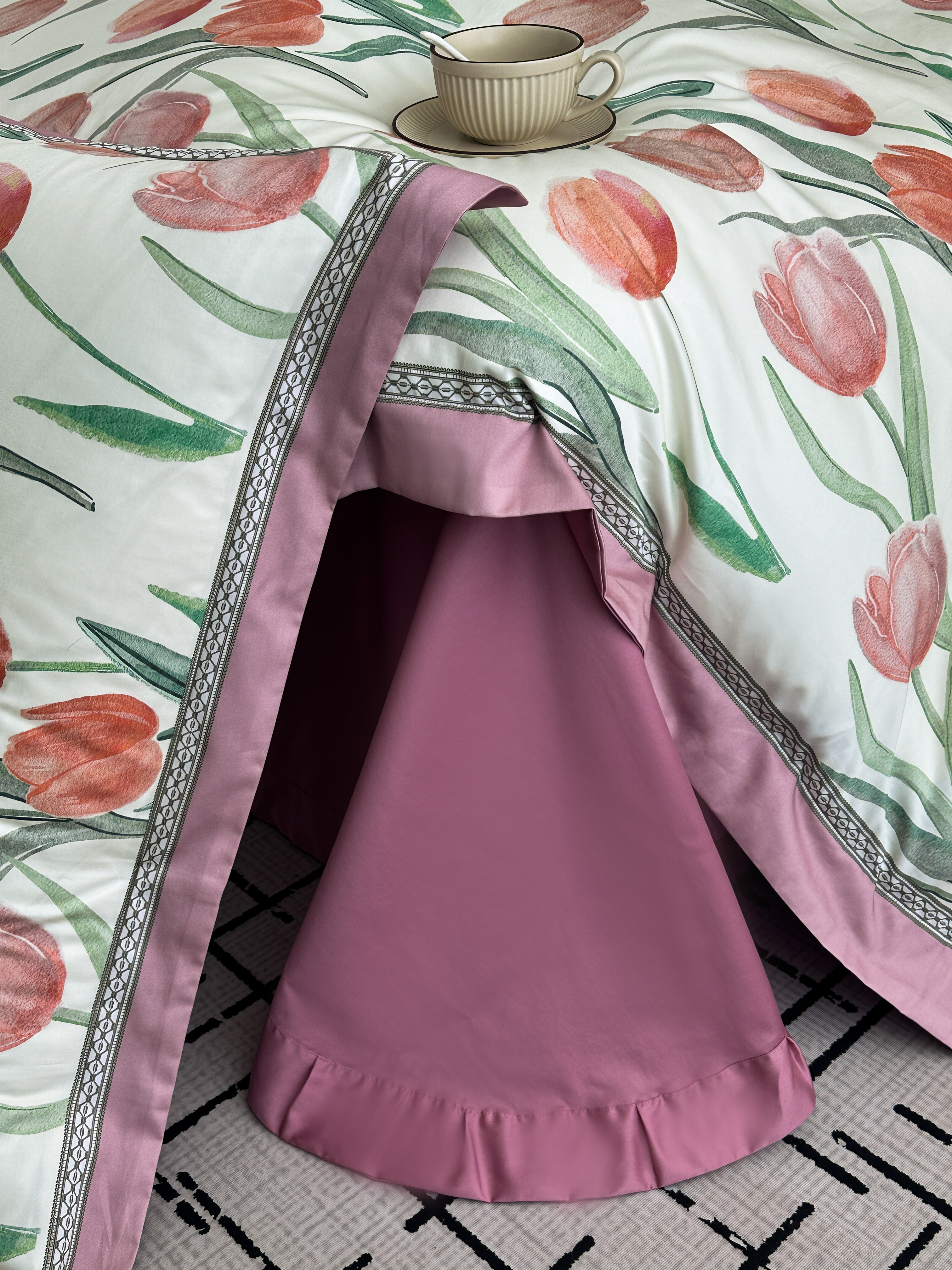 商品名称:顾家家居 2025新款长绒棉数码印花隐形宽边四件套 郁金香