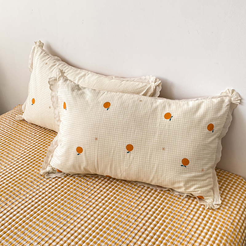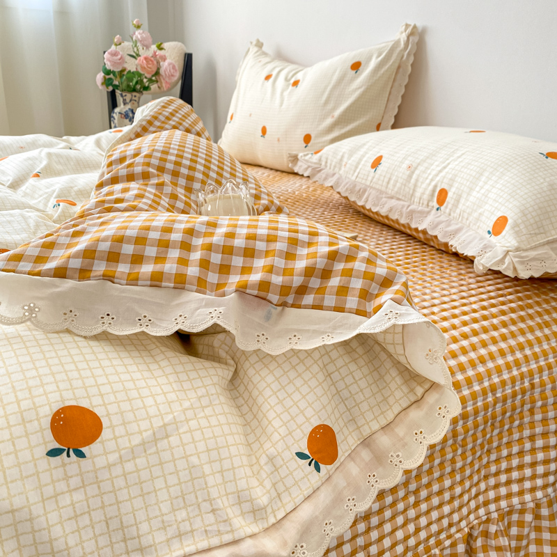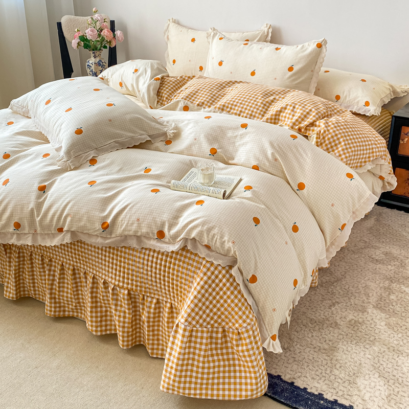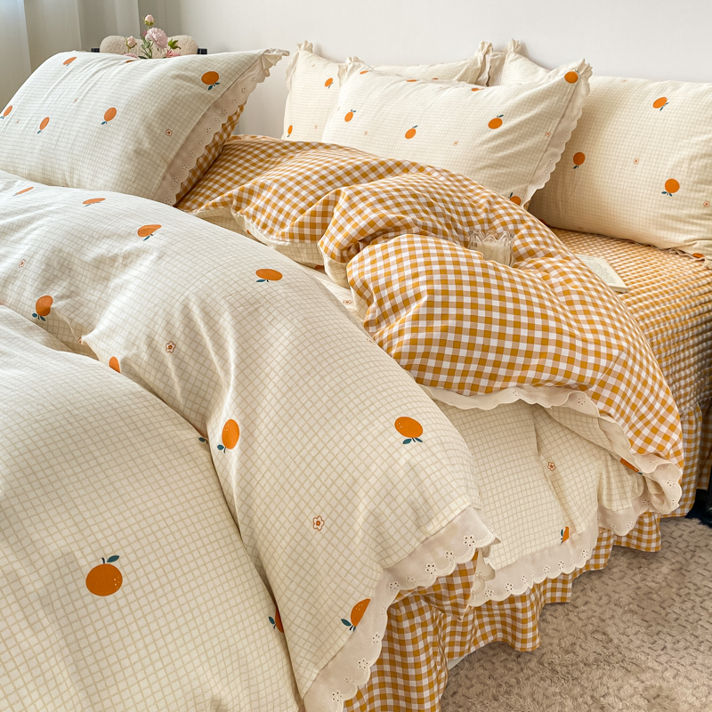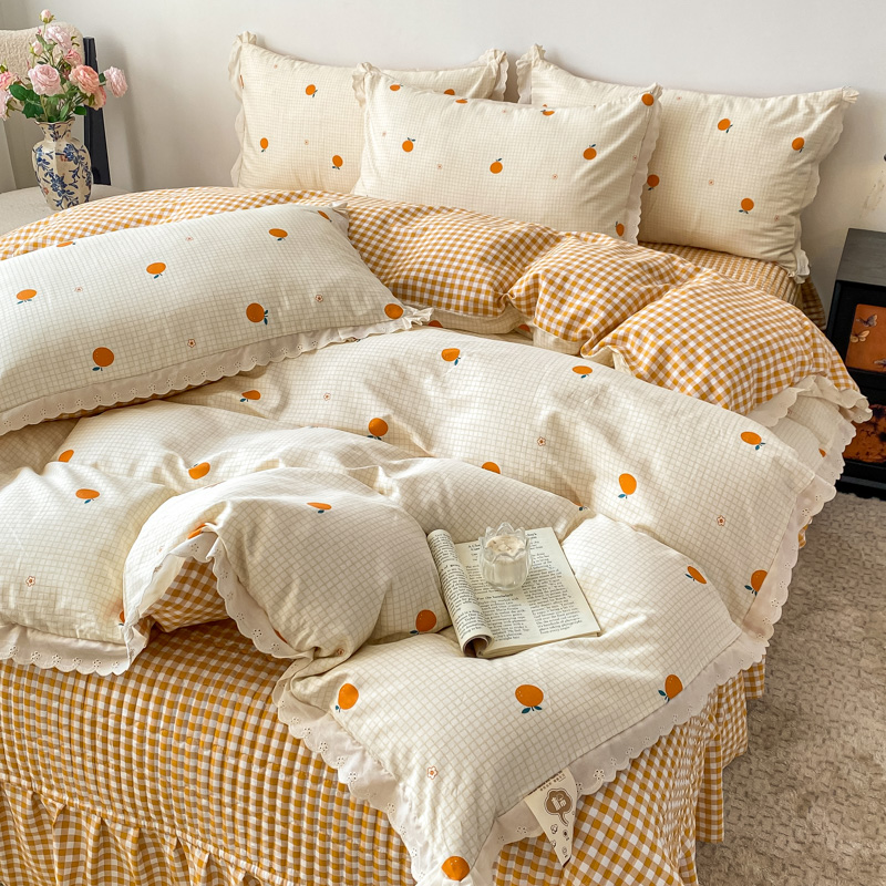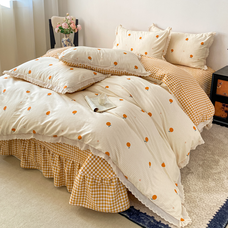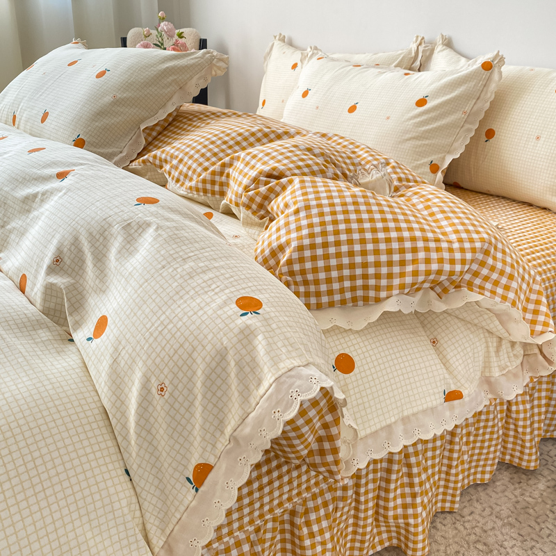 梦可莱家居 2025新款全棉韩版蕾丝边床盖四件套 甜橙