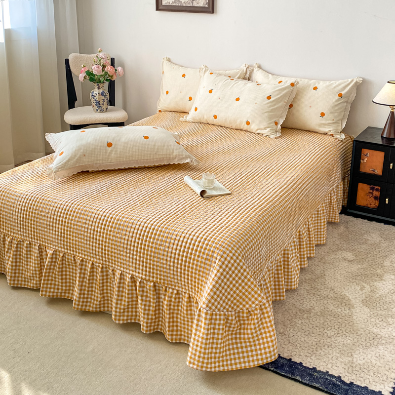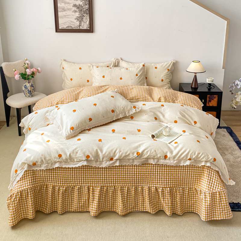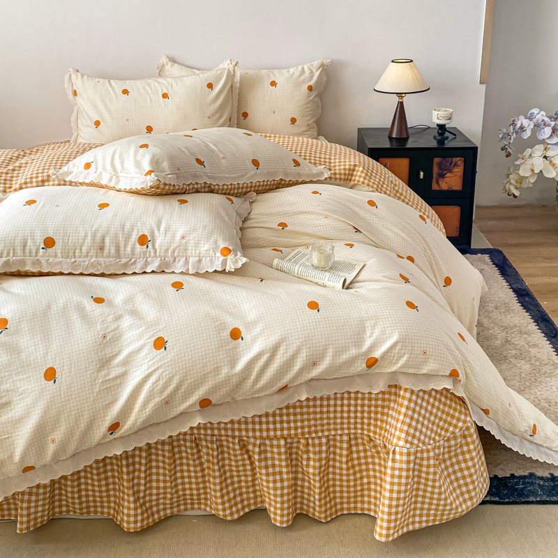 商品名称:梦可莱家居 2025新款全棉韩版蕾丝边床盖四件套 甜橙