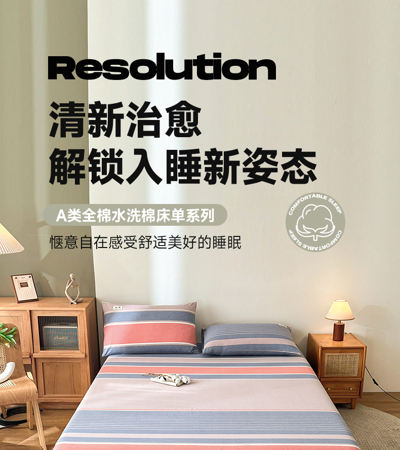 • 91家纺网 家纺一手货源 找家纺 21度C 2025新款A类全棉母婴级四件套单品系列-单床单 莱卡条