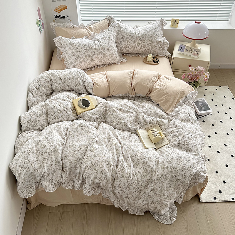 (总)希丞家居 2025新款小清新水洗棉花边四件套,贝拉,茶白,独角星,枫糖,花渡,米雅,摩夏,莫奈,暮歌,楠意,晴空,星绘,夜曲