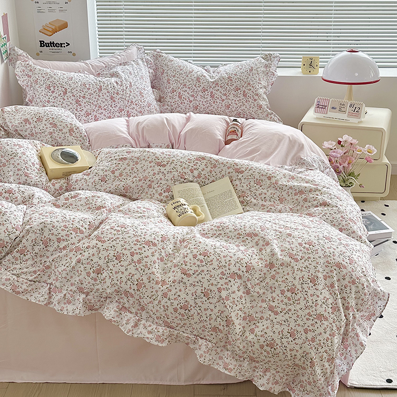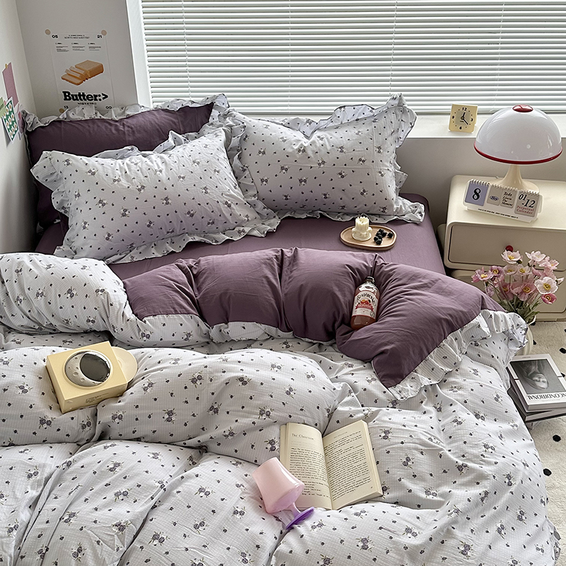 (总)希丞家居 2024新款超柔泡泡棉水洗棉花边四件套,春野,繁花,花青,梦语,绵枝,蔷薇,夏瑾,紫韵