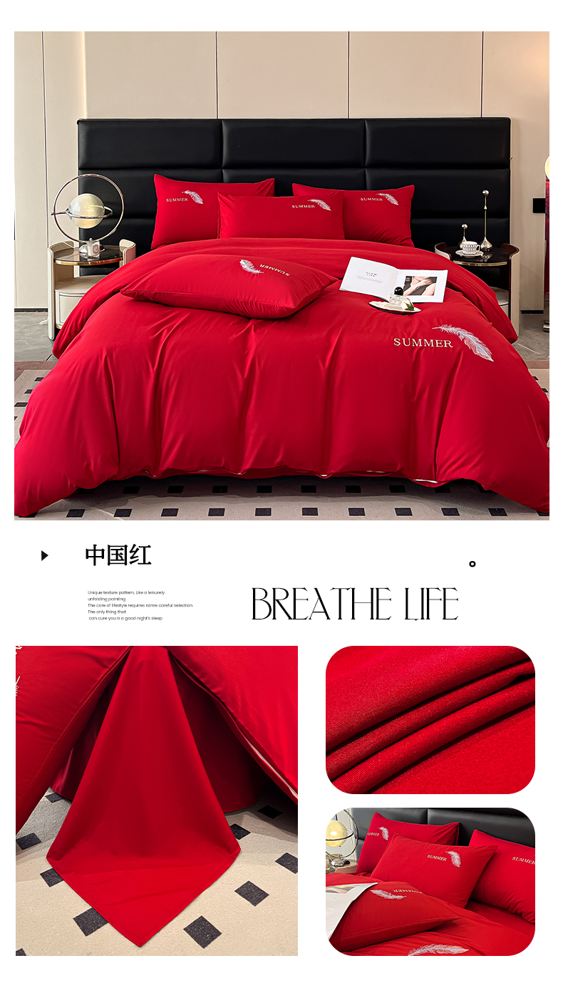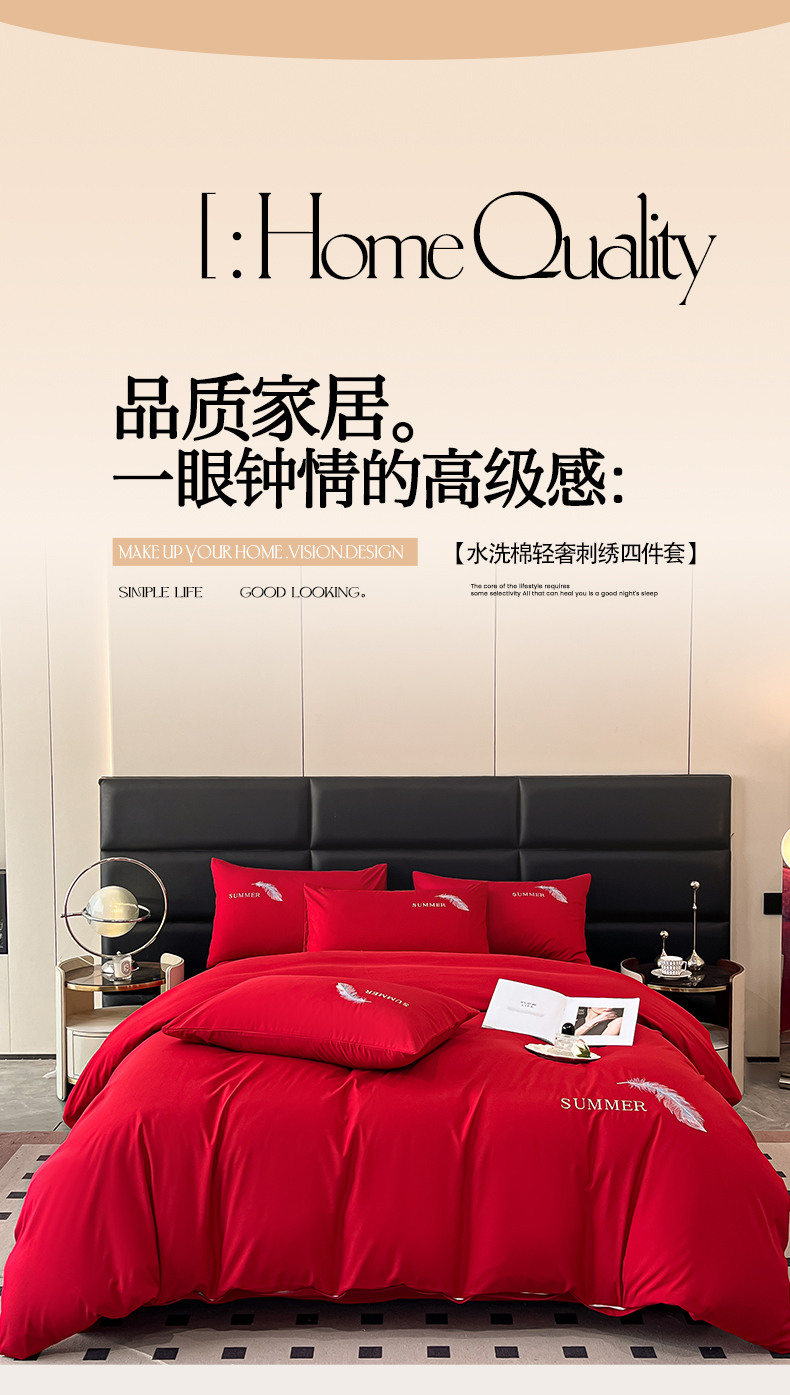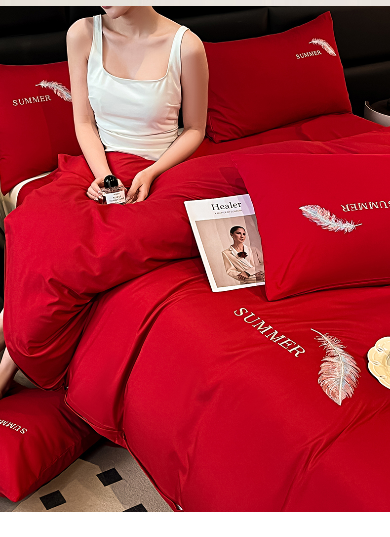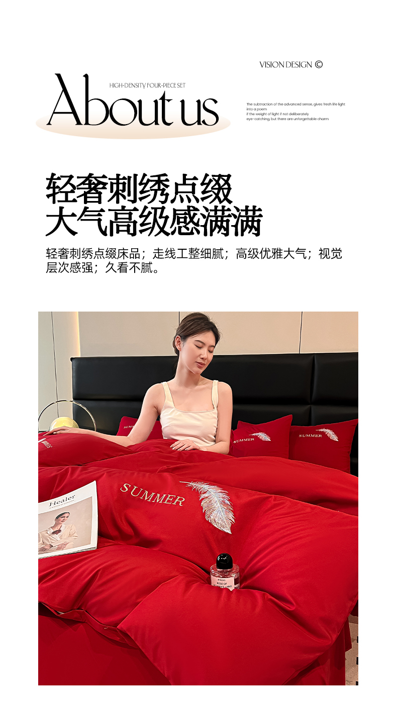 当前位置: 91家纺网 > 商品网购 > 床品套件 > 四件套 > 水洗棉四件套 > 火麒麟 2025新款亲肤水洗棉轻奢刺绣四件套-彩羽系列 彩羽-中国红