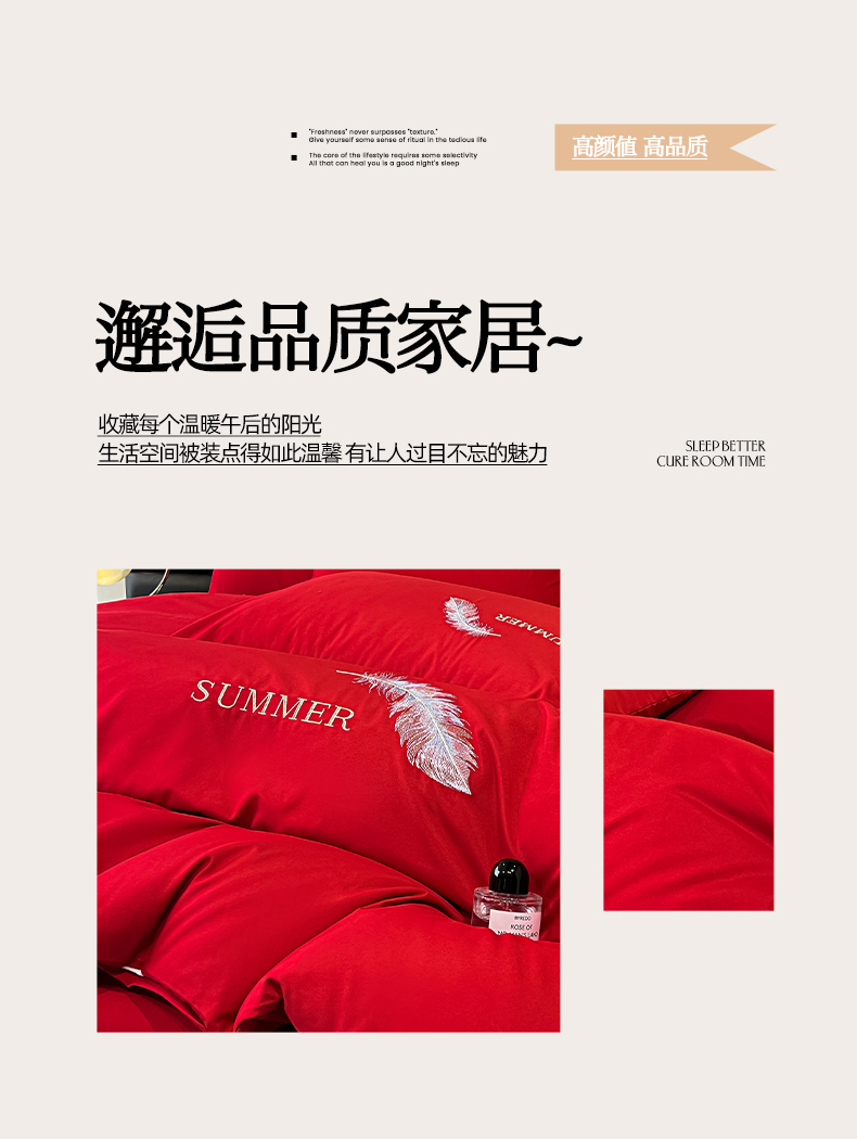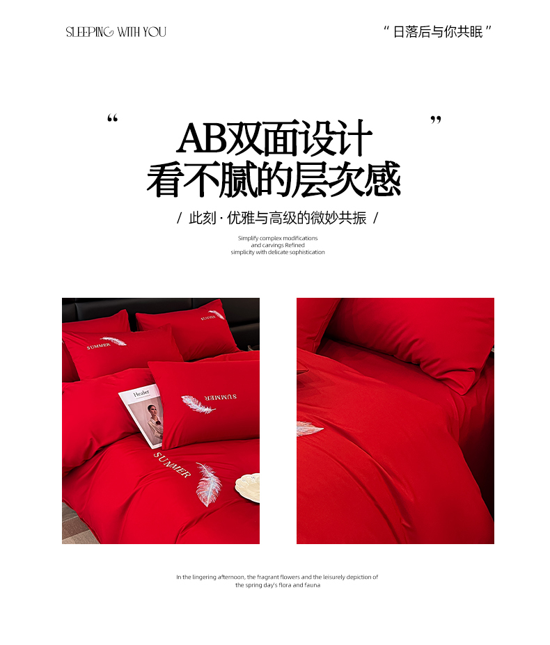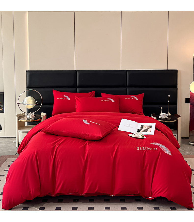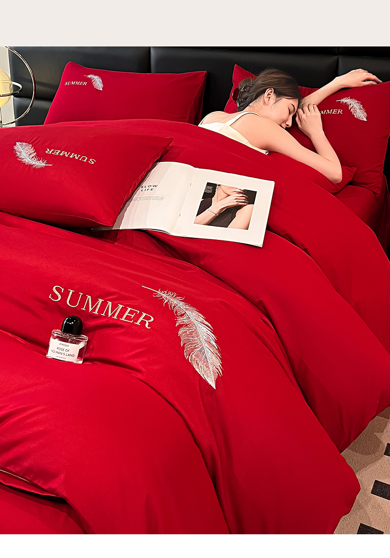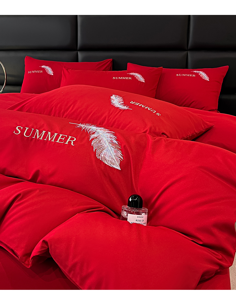 当前位置: 91家纺网 > 商品网购 > 床品套件 > 四件套 > 水洗棉四件套 > 火麒麟 2025新款亲肤水洗棉轻奢刺绣四件套-彩羽系列 彩羽-中国红