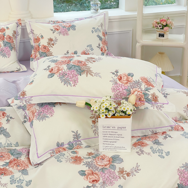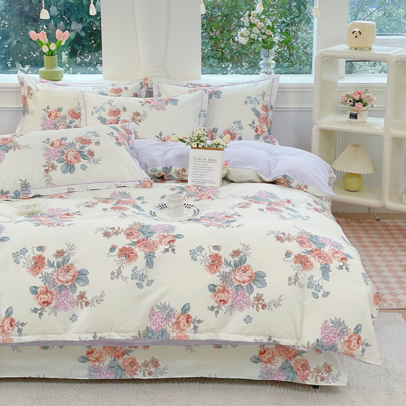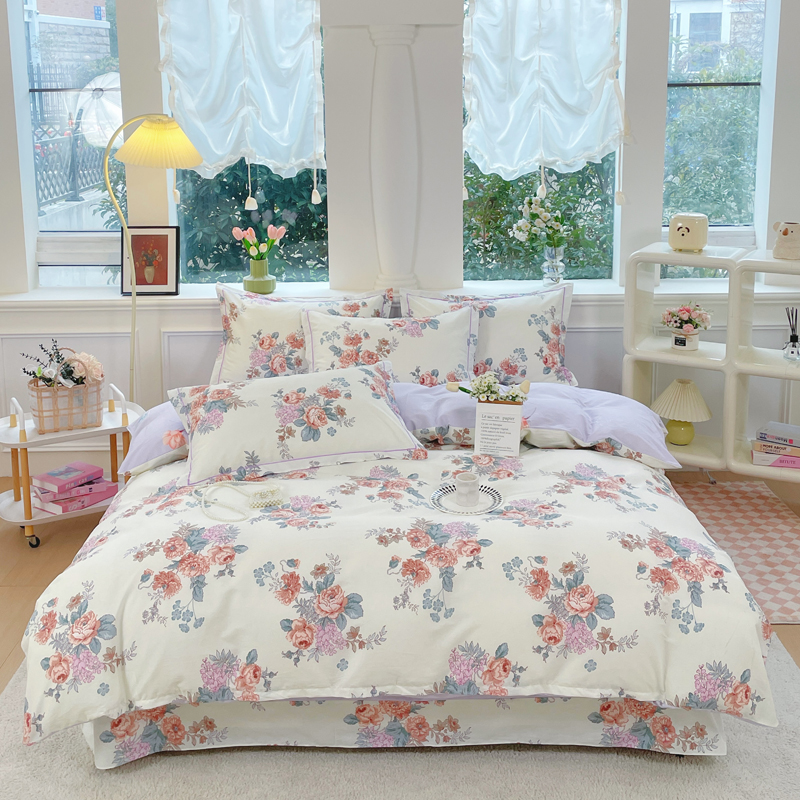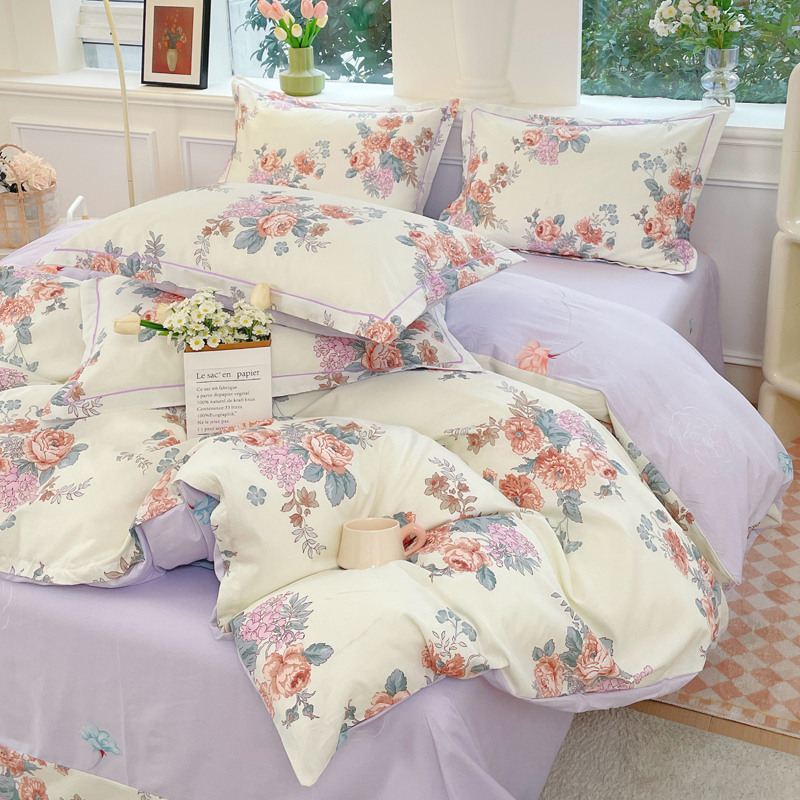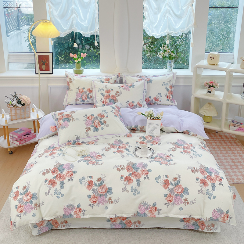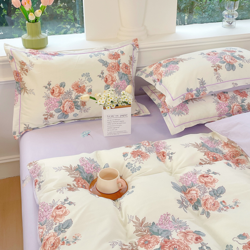 铭博家纺 新款直播爆款网红全棉四件套13070印花吊边一字绣纯棉被套工艺款 花语呢喃,花语呢喃