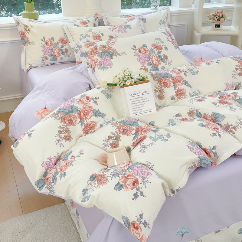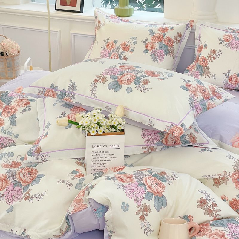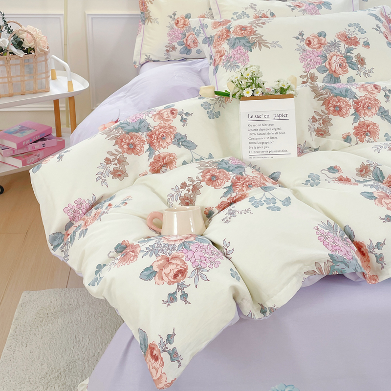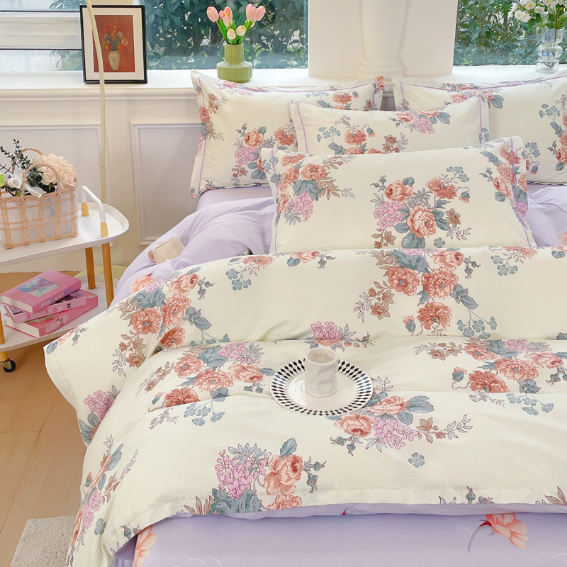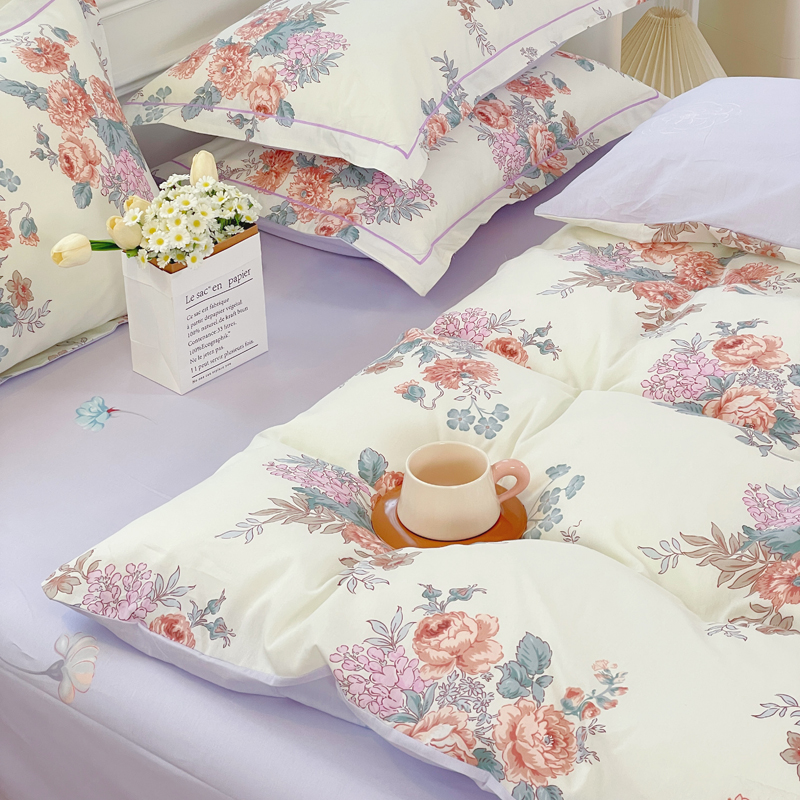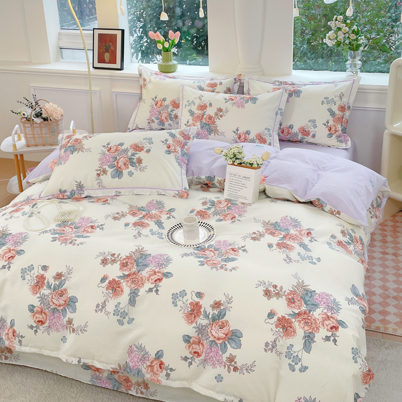 铭博家纺 新款直播爆款网红全棉四件套13070印花吊边一字绣纯棉被套工艺款 花语呢喃,花语呢喃