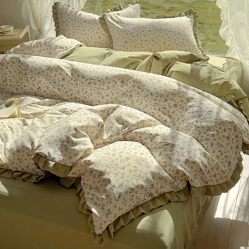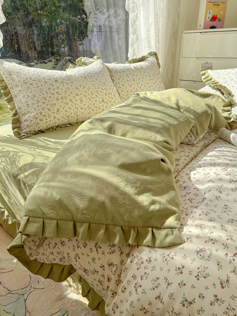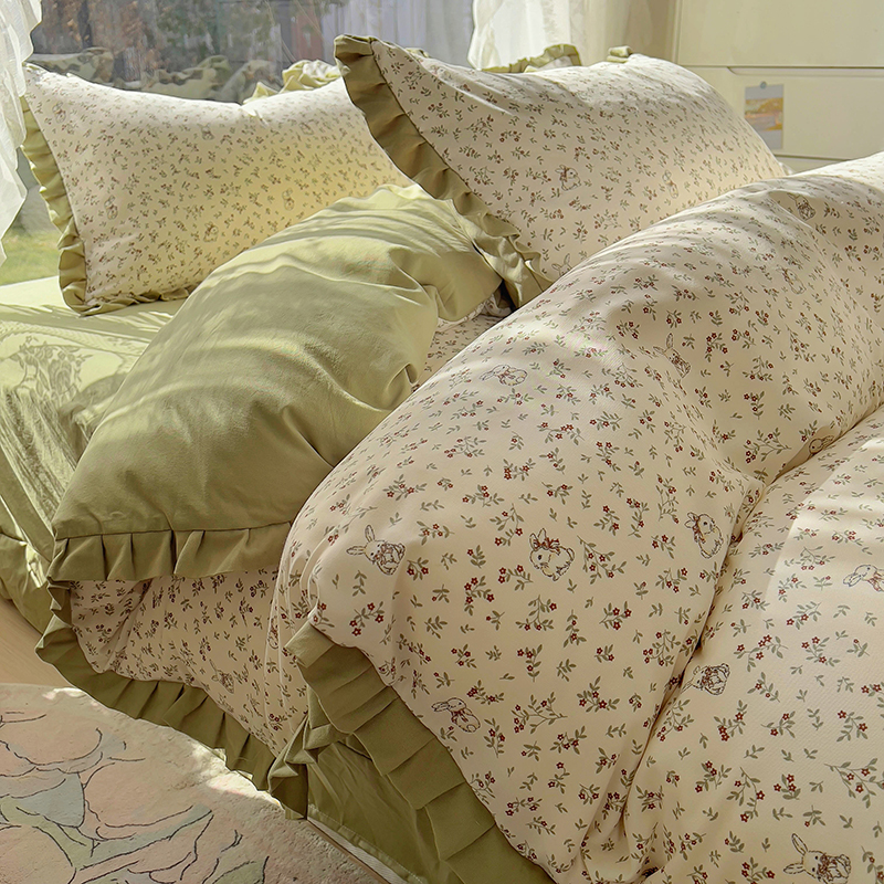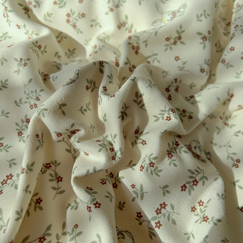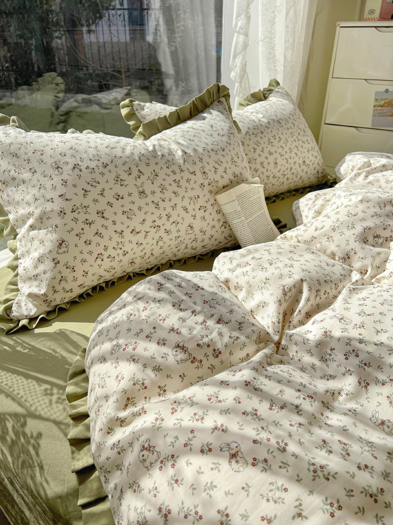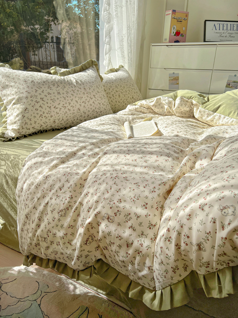 欧尚 2025新款针织棉双层纱四件套 树叶小兔