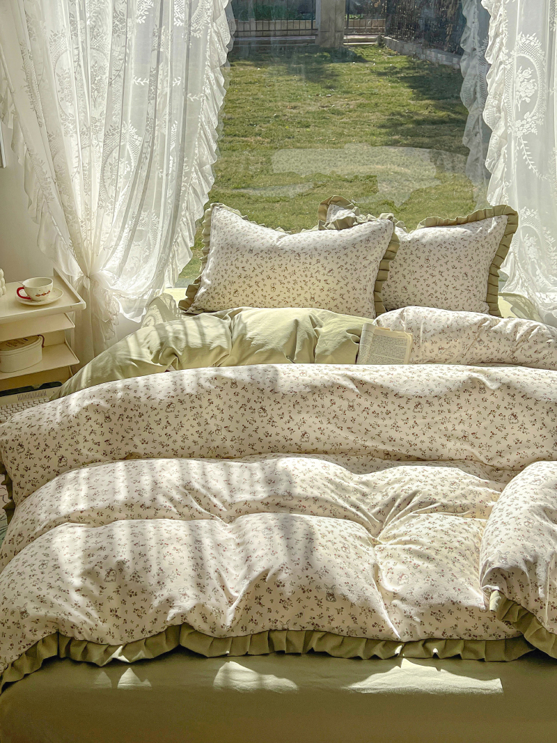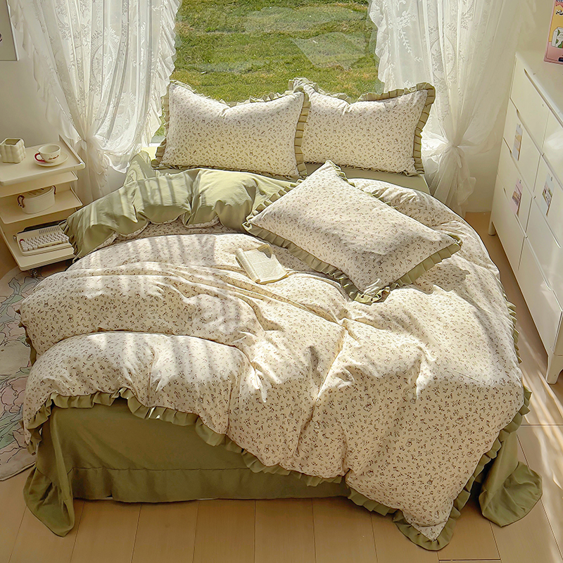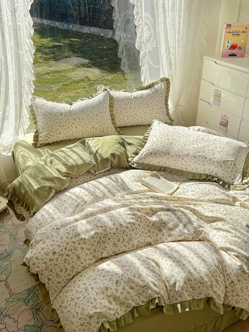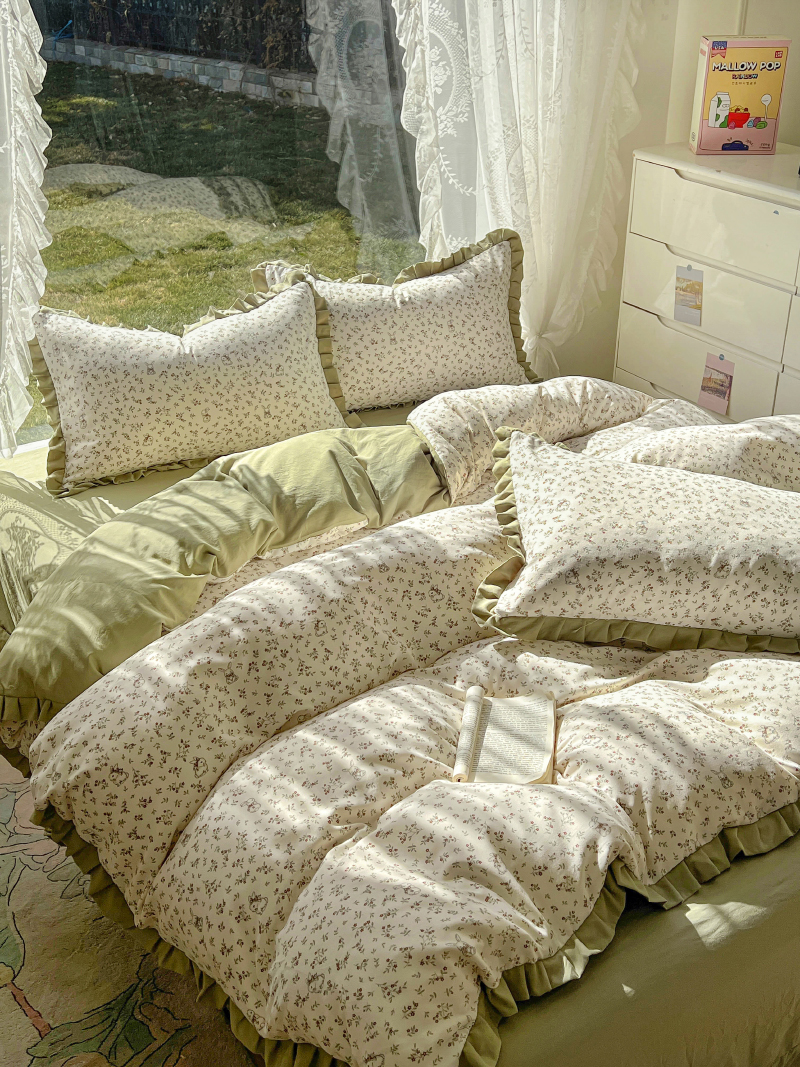 (总)欧尚 2025新款牛奶绒花边床盖四件套,粉点点,花小玉,咖色小心心,蓝点点,慕然,仙女粉,仙女紫