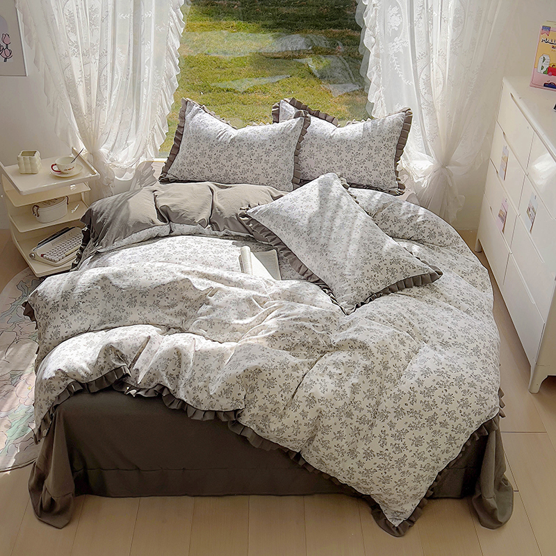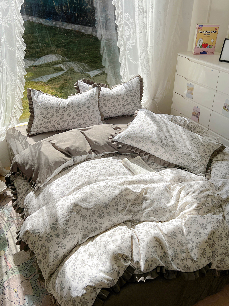 (总)欧尚 2025新款牛奶绒花边床盖四件套,粉点点,花小玉,咖色小心心,蓝点点,慕然,仙女粉,仙女紫