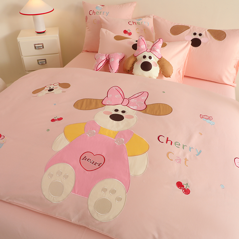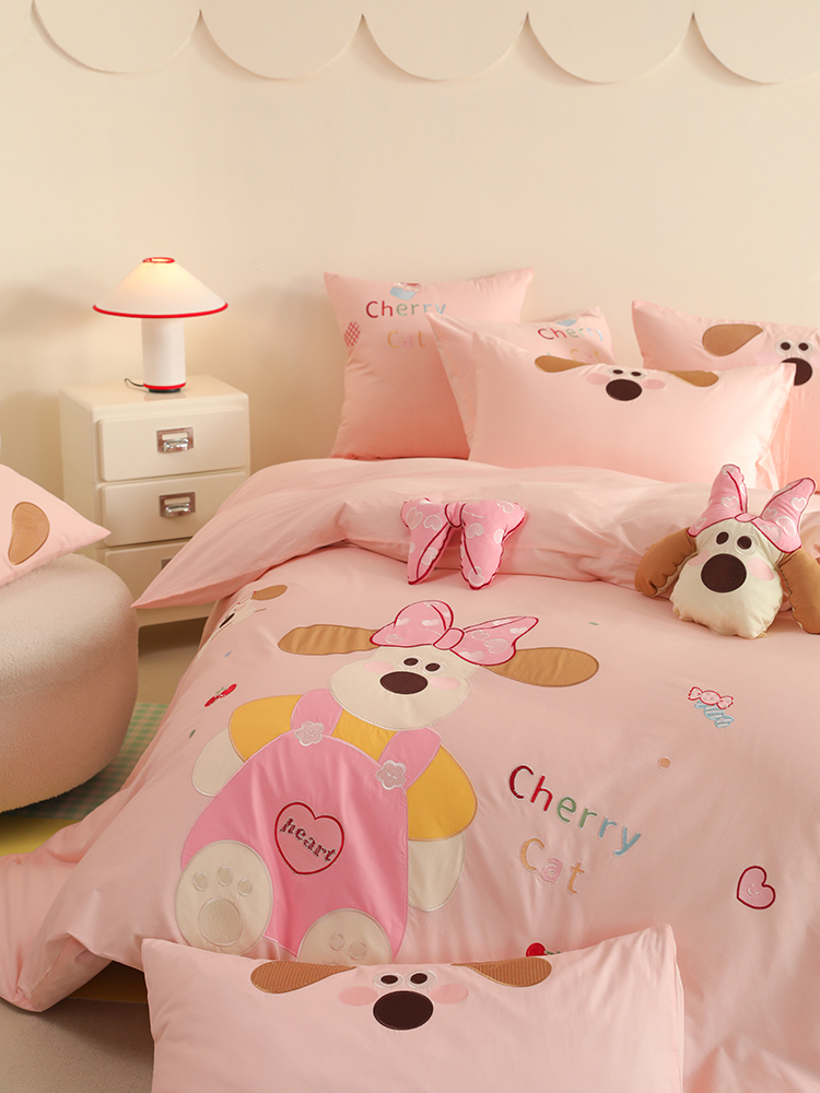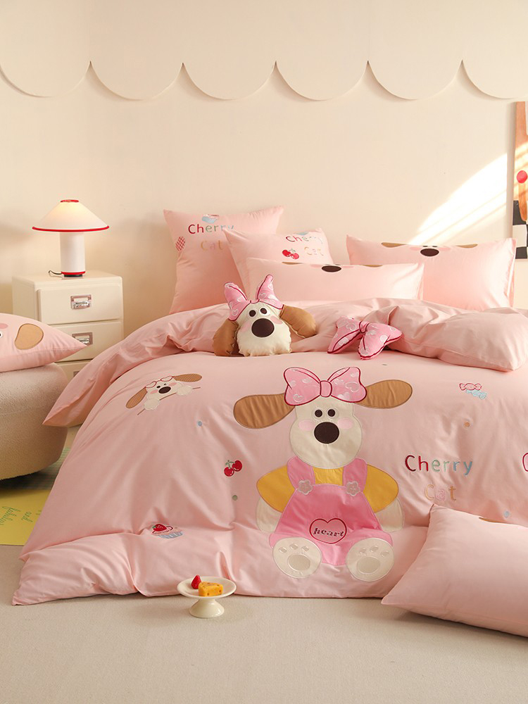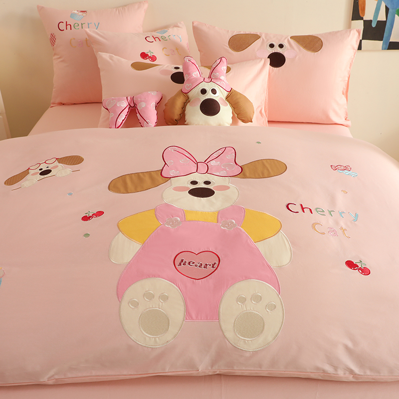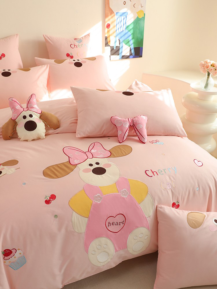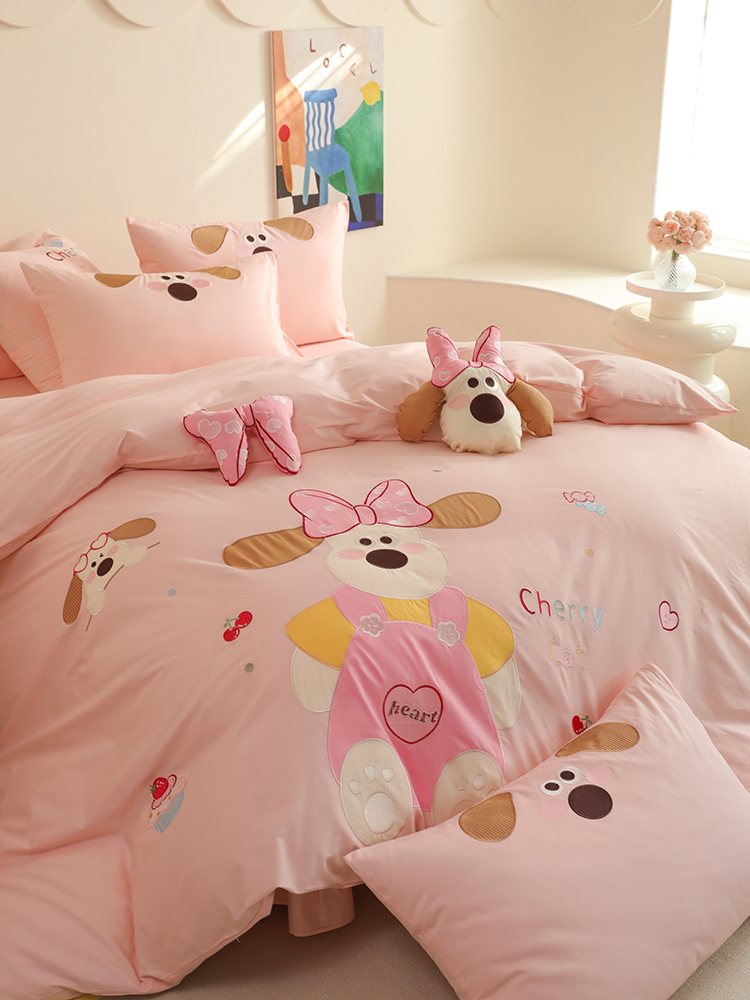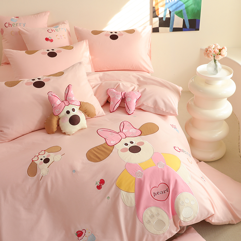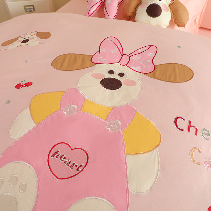 绒棉世家 2025绒棉世家新款全棉水洗棉贴布绣专版四件套 甜心小狗