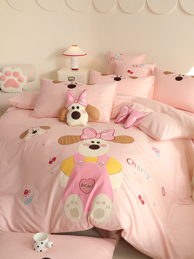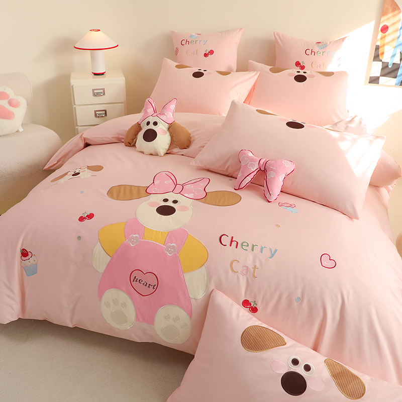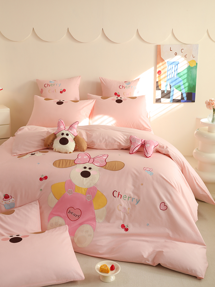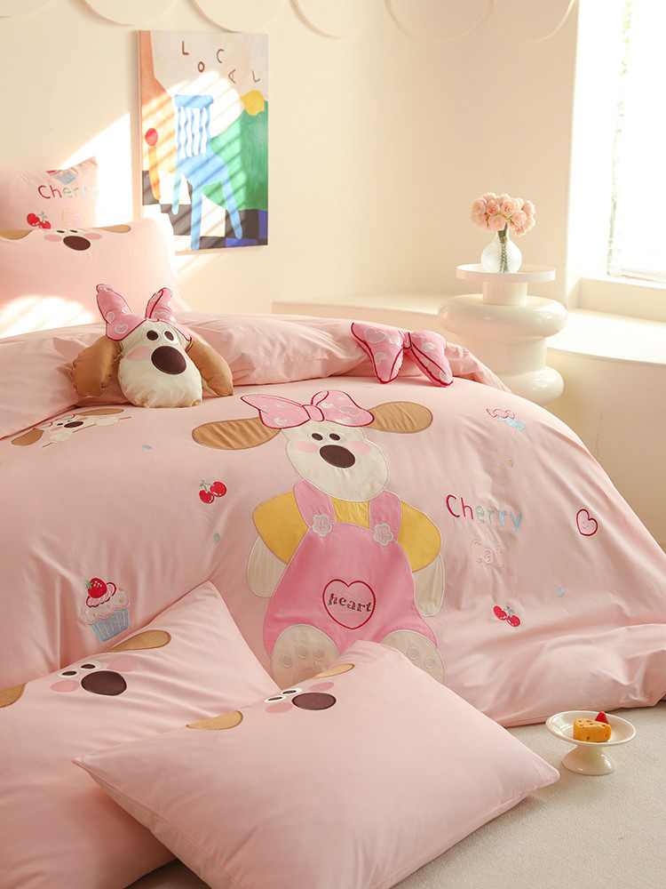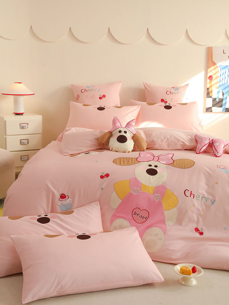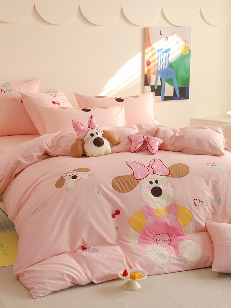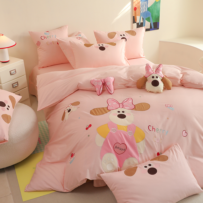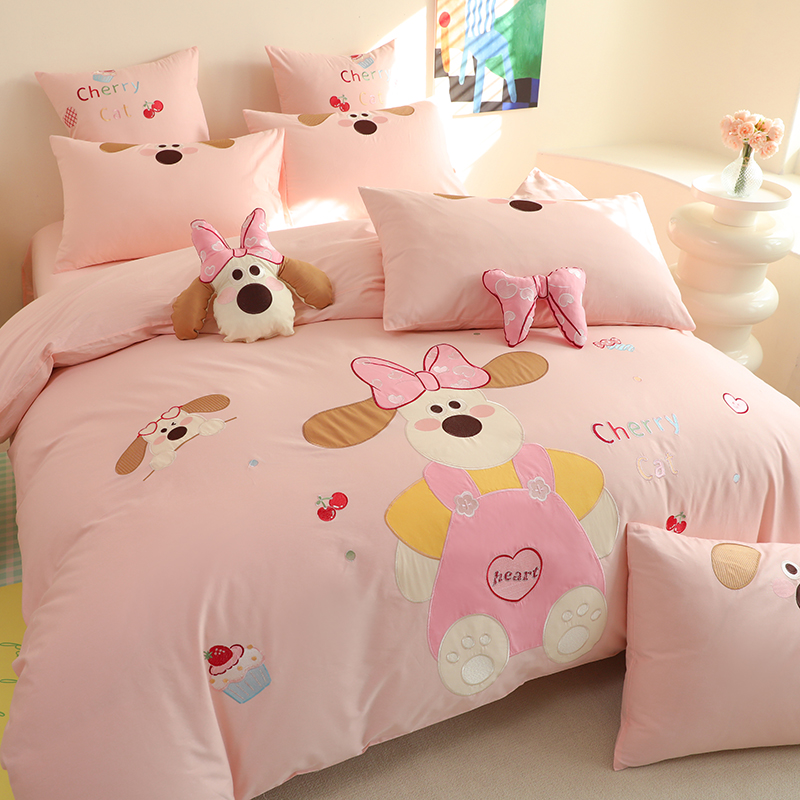 绒棉世家 2025绒棉世家新款全棉水洗棉贴布绣专版四件套 甜心小狗