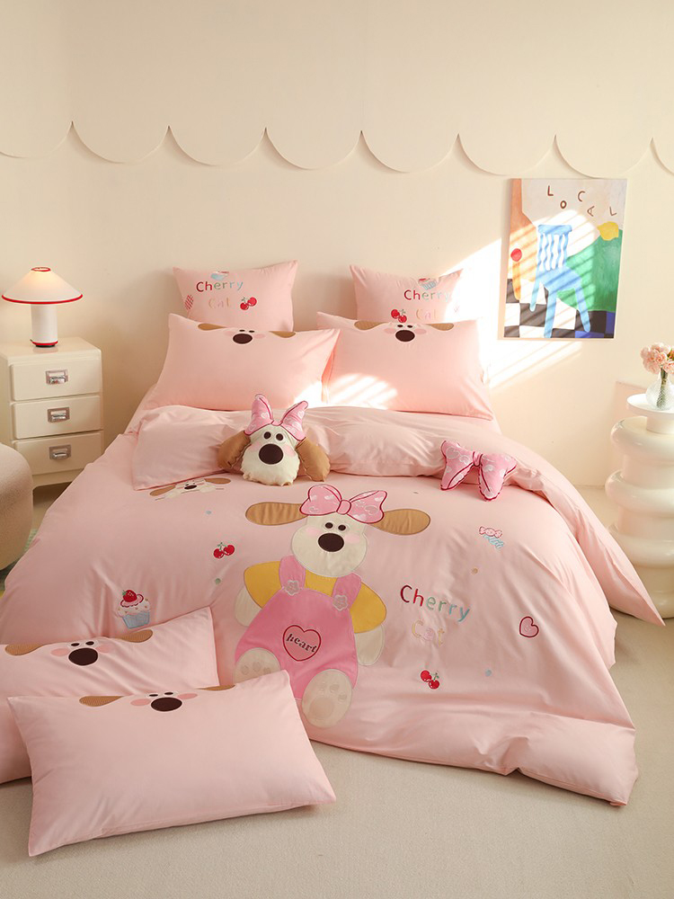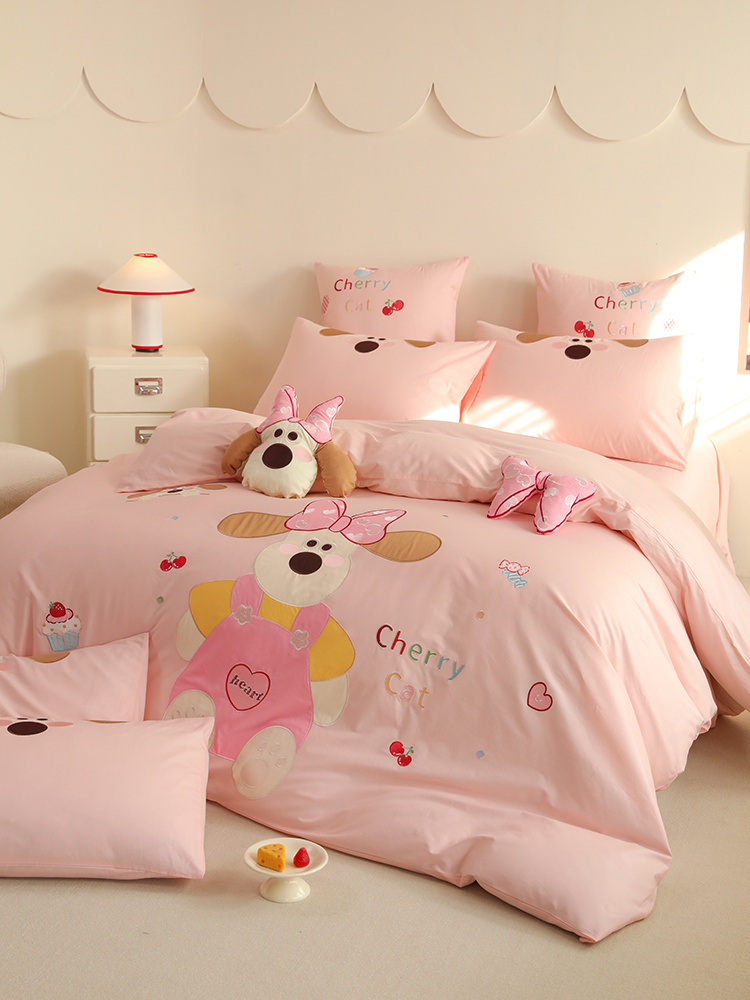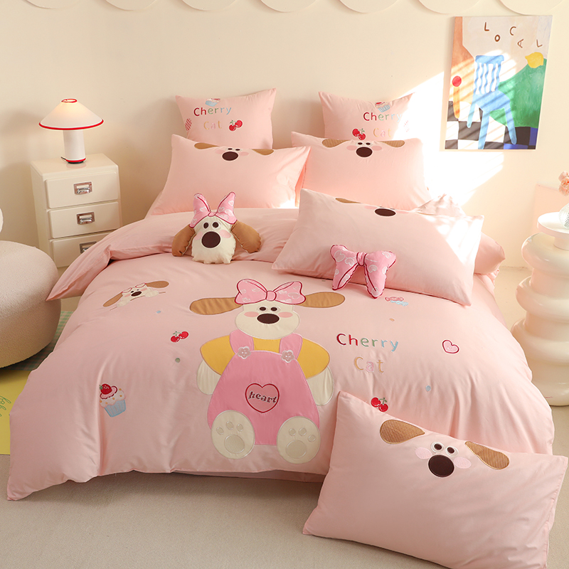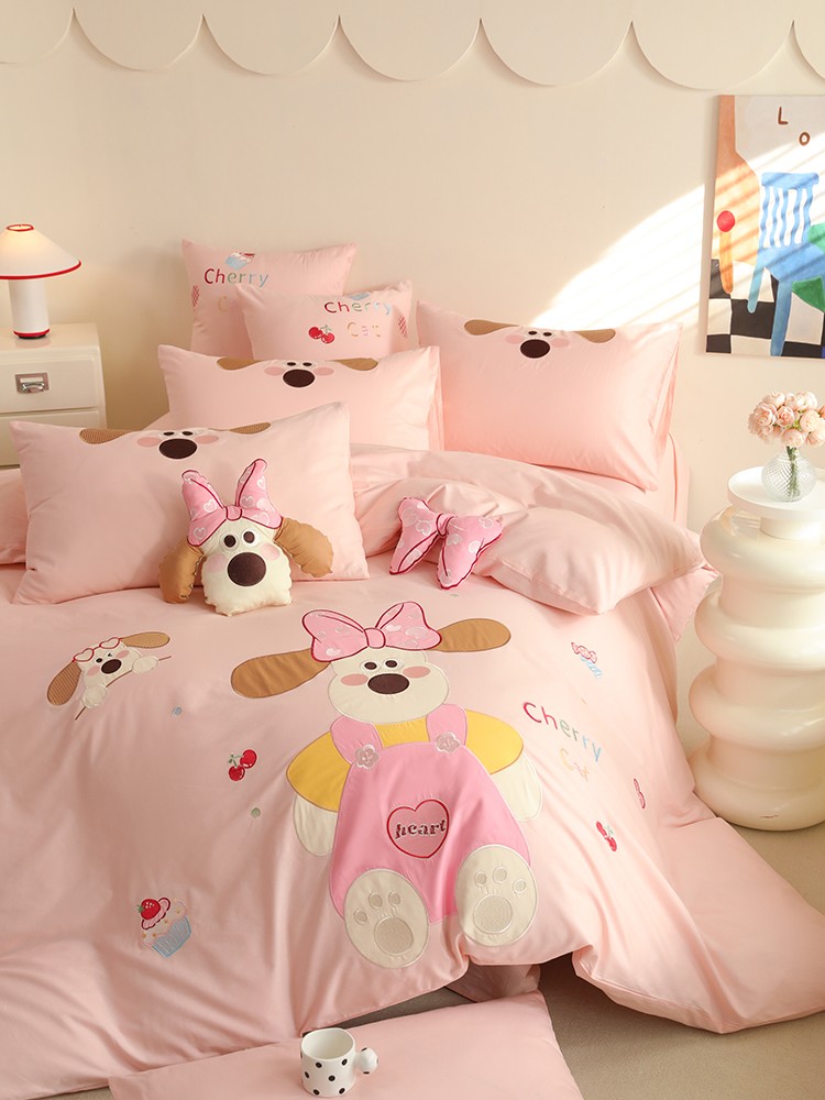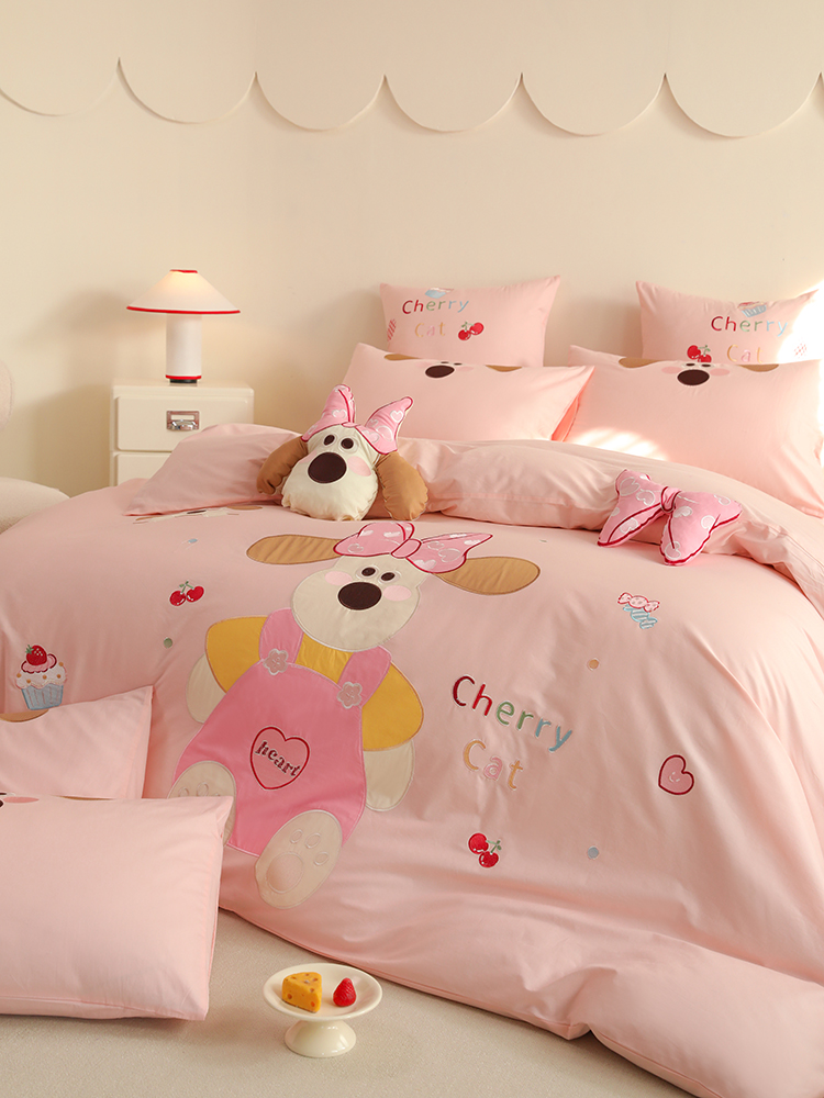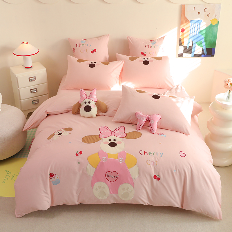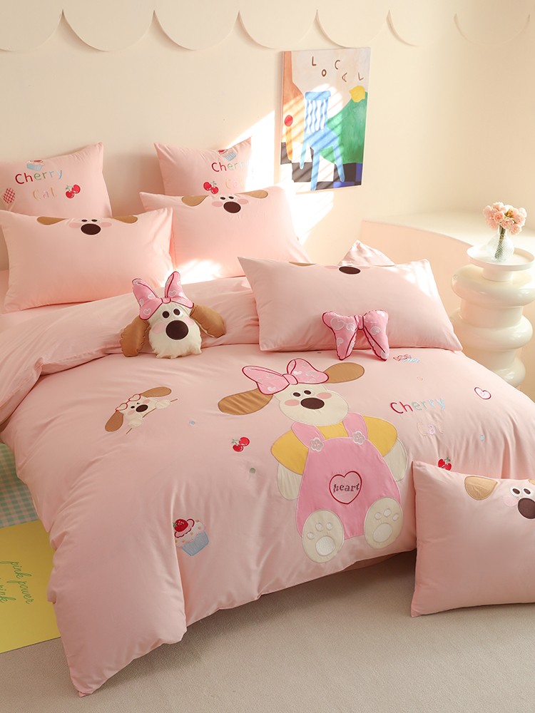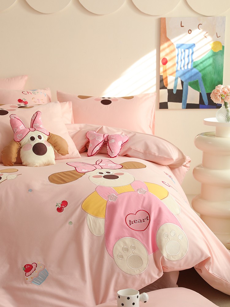 绒棉世家 2025绒棉世家新款全棉水洗棉贴布绣专版四件套 甜心小狗