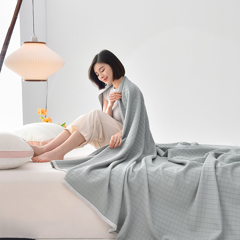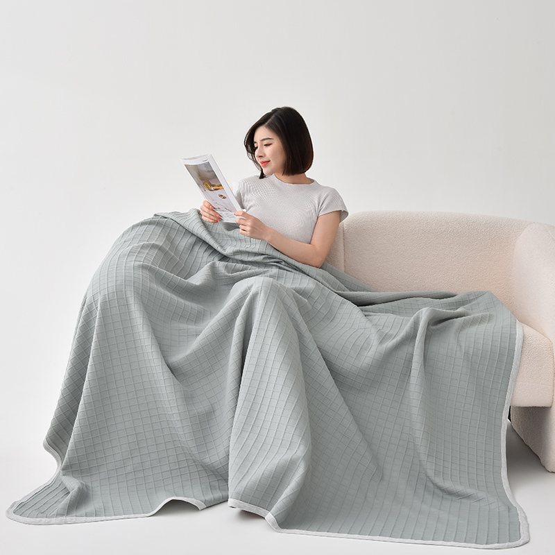 米奈家居 2025全棉针织棉提花多功能盖毯 玛雅灰