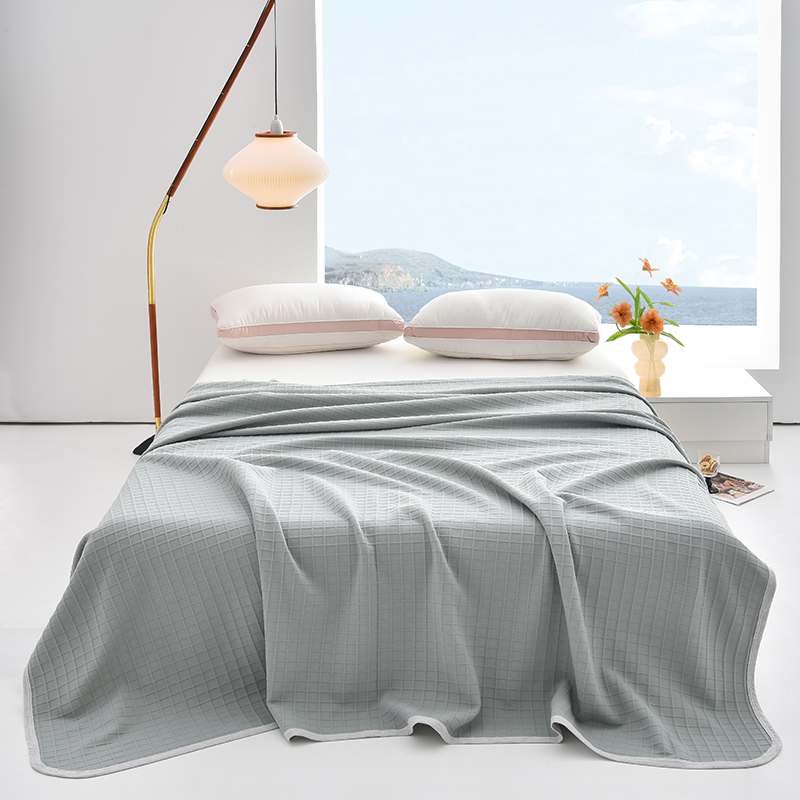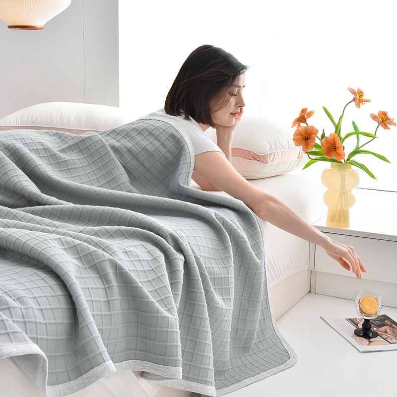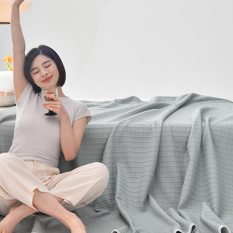 (总)米奈家居 2025全棉针织棉提花多功能盖毯,豆沙粉EN,豆沙粉H,公主粉,莱茵绿,玛雅灰,柠檬黄,绅士灰,天空蓝,香槟金EN,香槟金H,星空灰