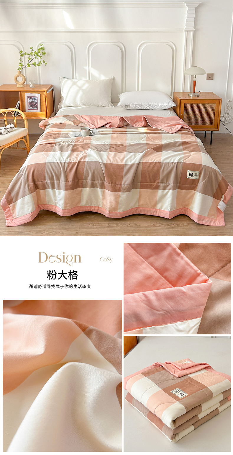 (总)佰丝居 2025新款A类水洗棉夏被100%新疆棉花被空调被夏凉被,粉大格,粉小格,蓝大格,蓝小格,莫妮卡,雅致灰,雅致绿