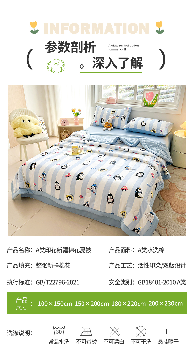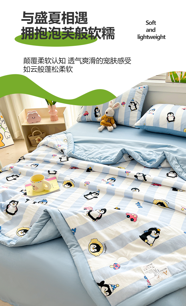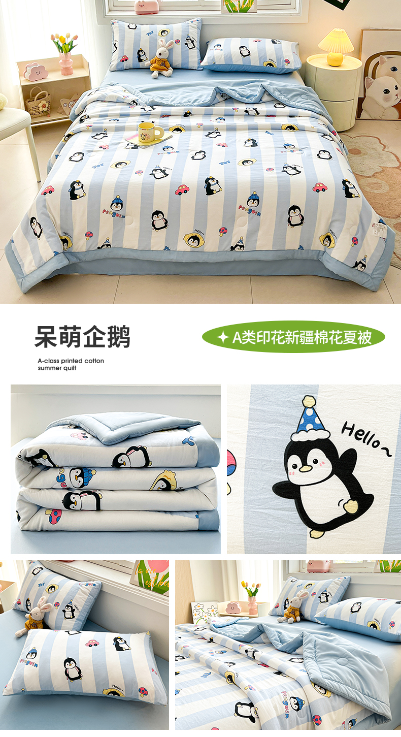 商品名称:晓时候 2025新款水洗棉夏被新疆棉花被夏凉被空调被被子被芯 呆萌企鹅