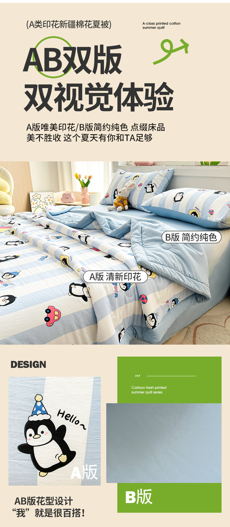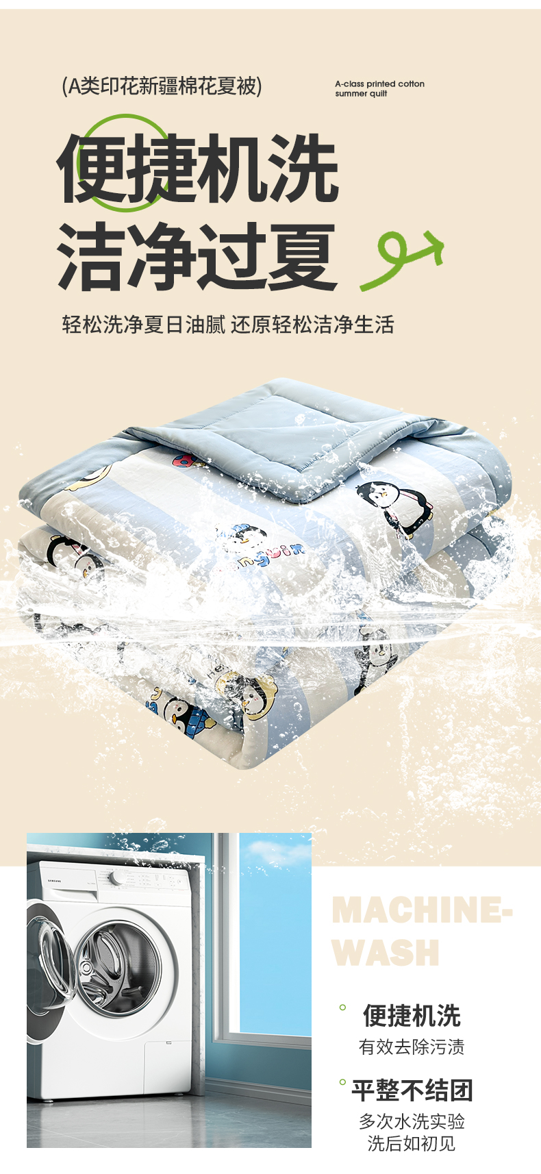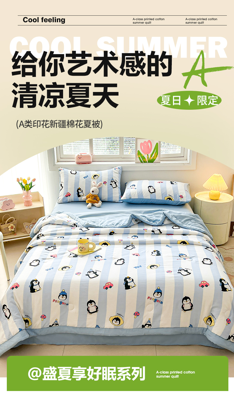 商品名称:晓时候 2025新款水洗棉夏被新疆棉花被夏凉被空调被被子被芯 呆萌企鹅